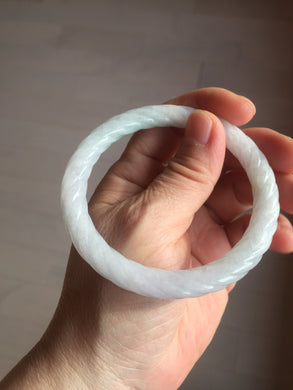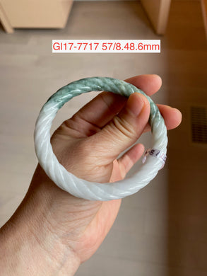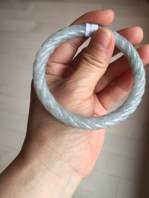 58mm Certified 100% Natural type A green/white/gray vintage twist style Jadeite Jade bangle PB137-7992