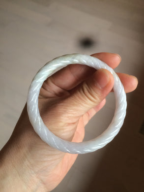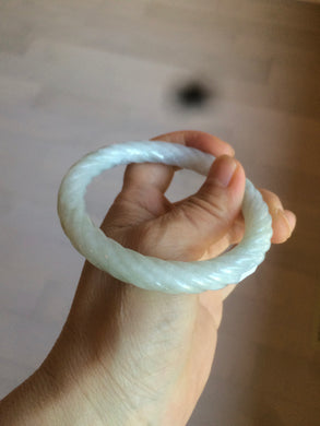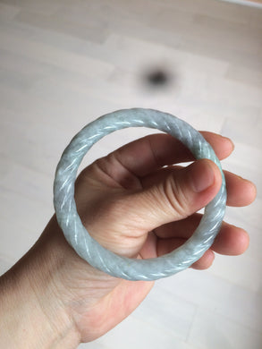 57.2mm Certified 100% Natural type A icy watery vintage twist style Jadeite Jade bangle AF56-0861