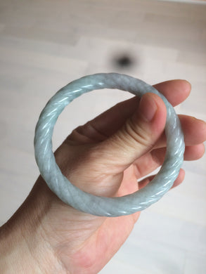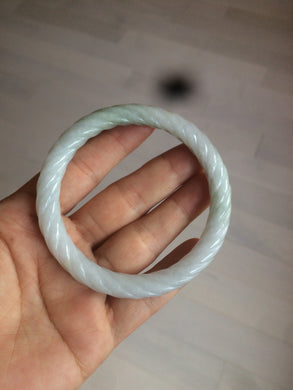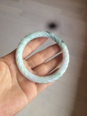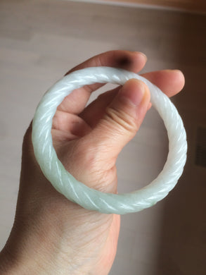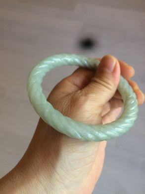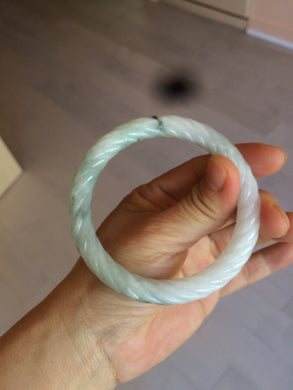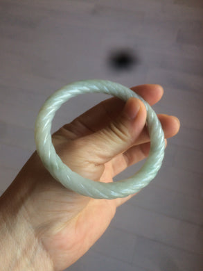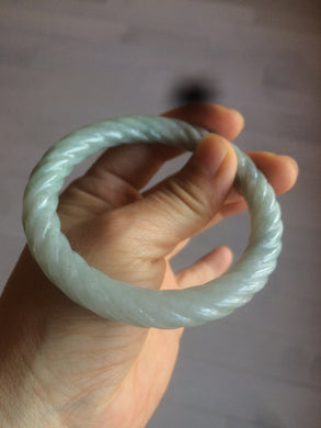 56.2mm Certified 100% Natural type A fresh light green/white vintage twist style Jadeite Jade bangle AS70-0839