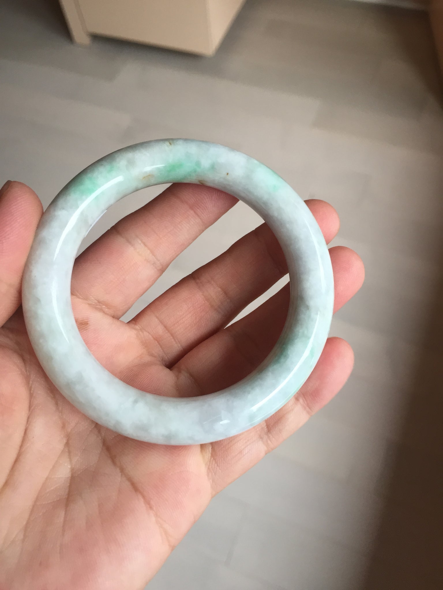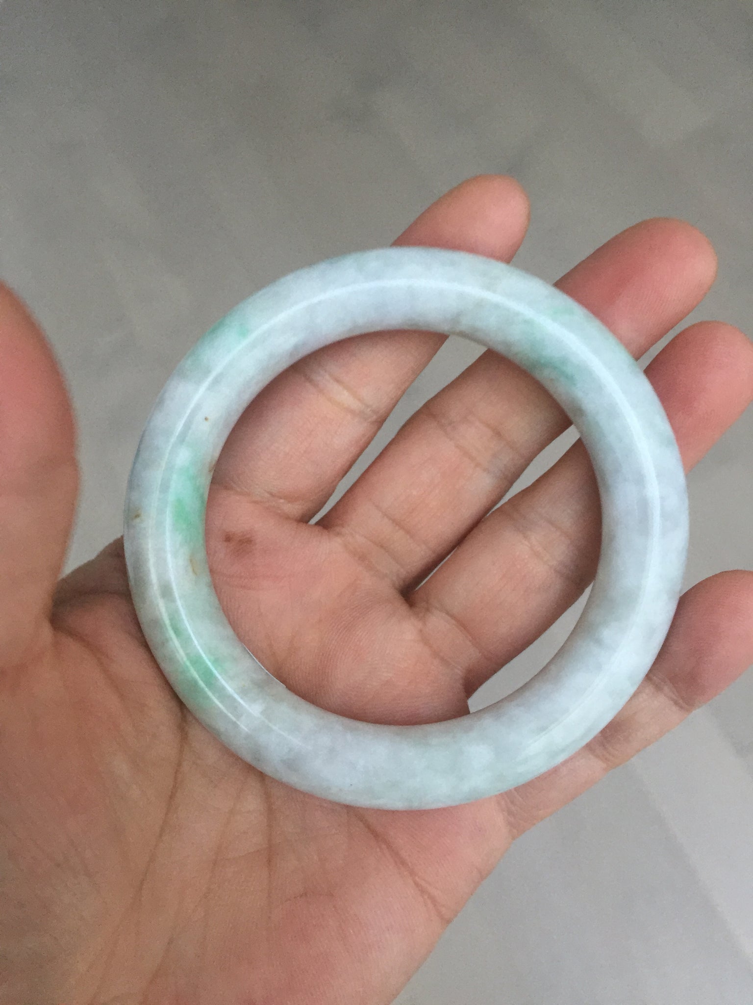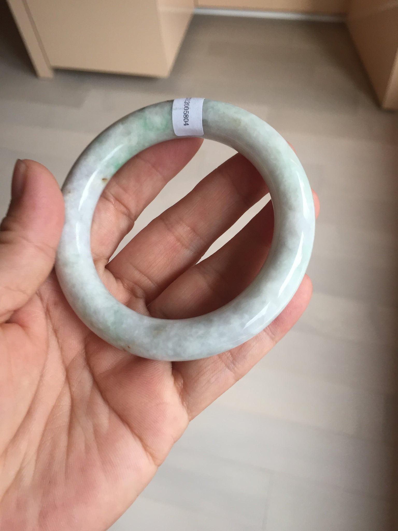 53.6mm Certified 100% natural Type A sunny green/purple/brown chubby round cut jadeite jade bangle BQ36-5804