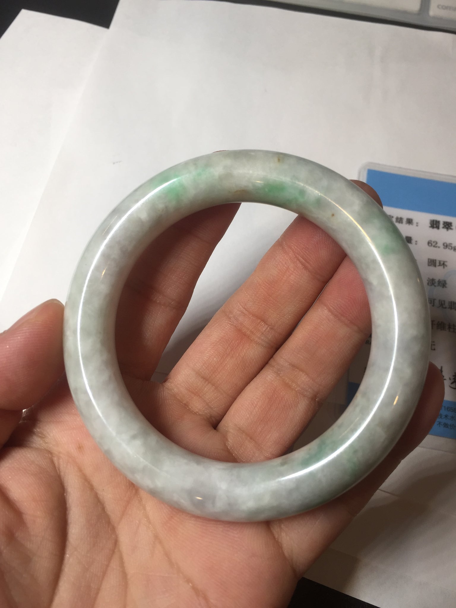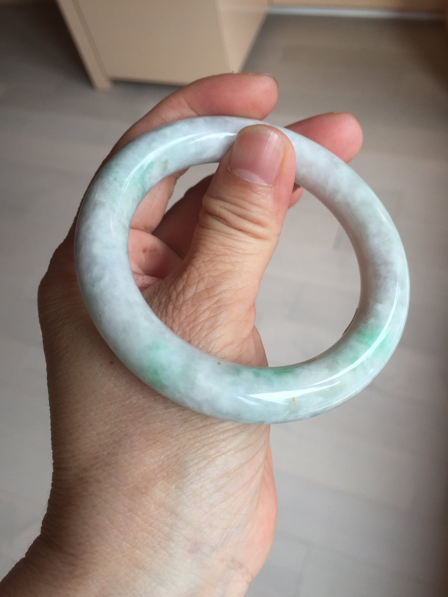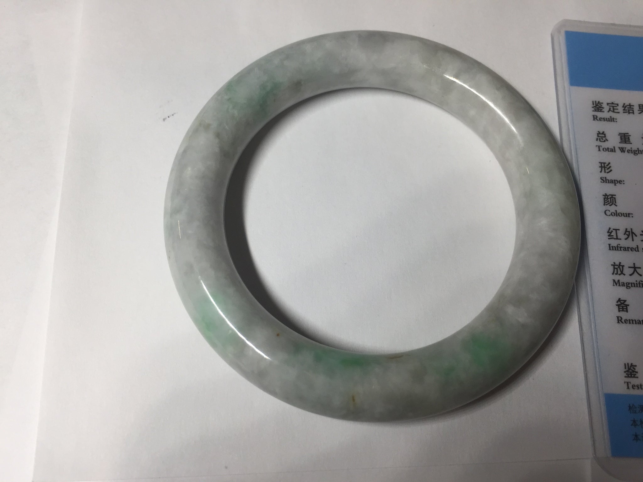 53.6mm Certified 100% natural Type A sunny green/purple/brown chubby round cut jadeite jade bangle BQ36-5804
