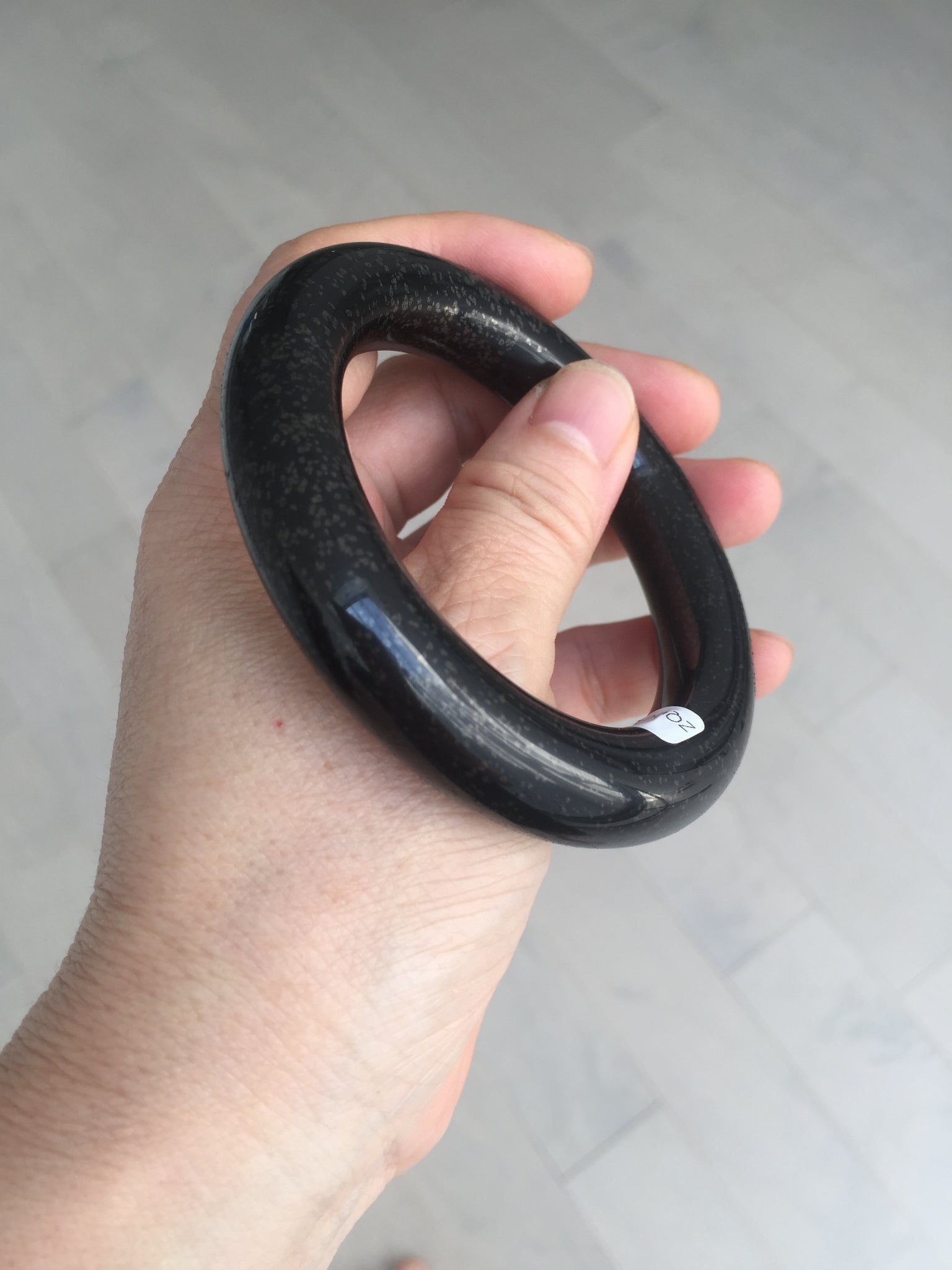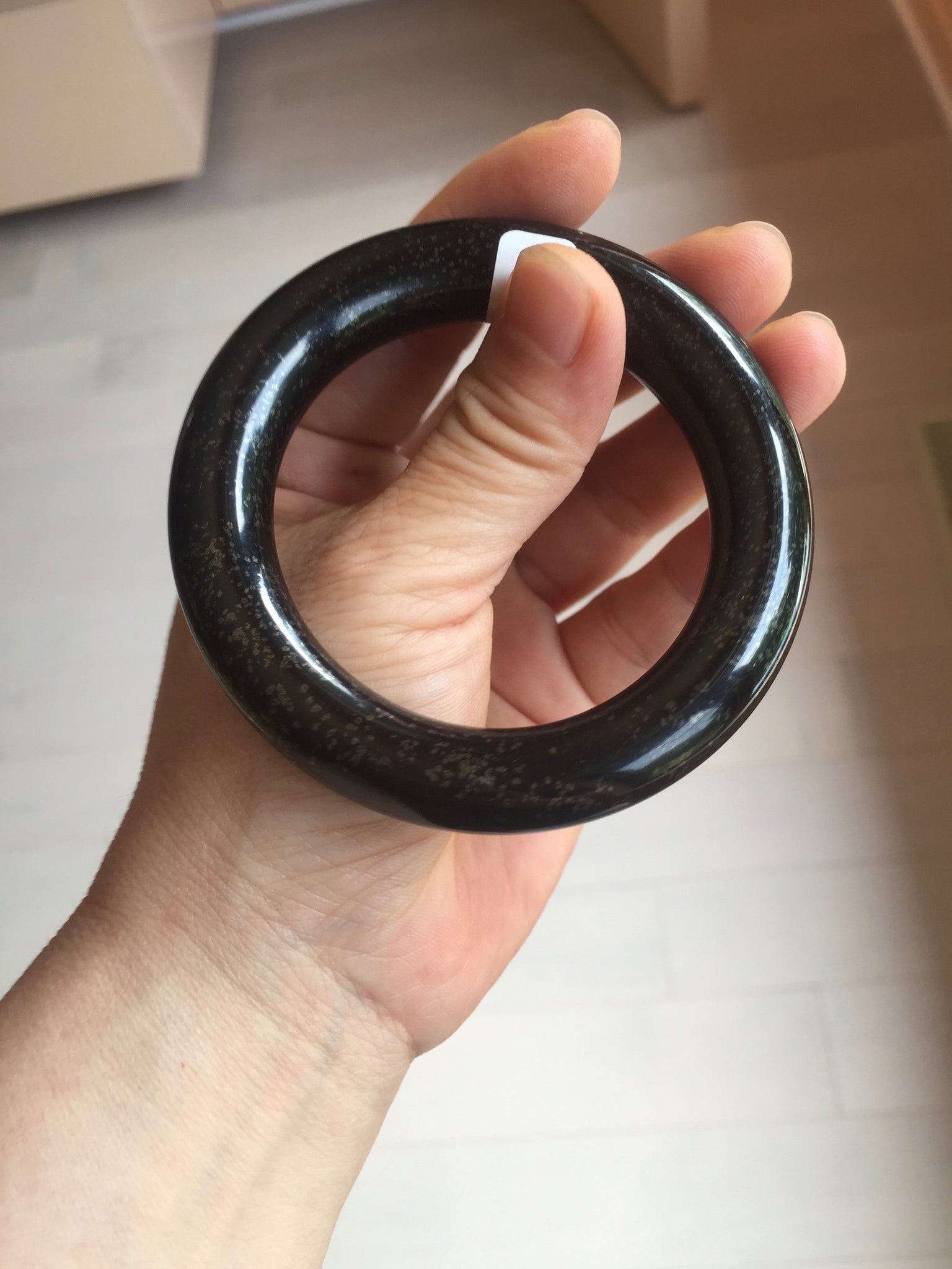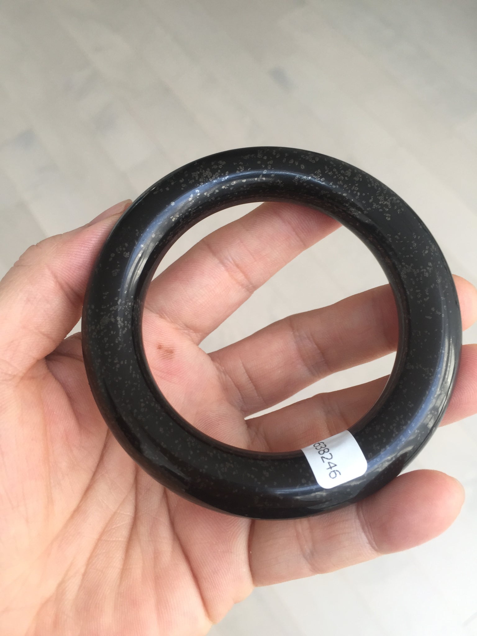 54.3mm certified 10% Natural black(MO YU 墨玉) meteorite Stellar Night sky chubby round cut nephrite bangle HN1-8246