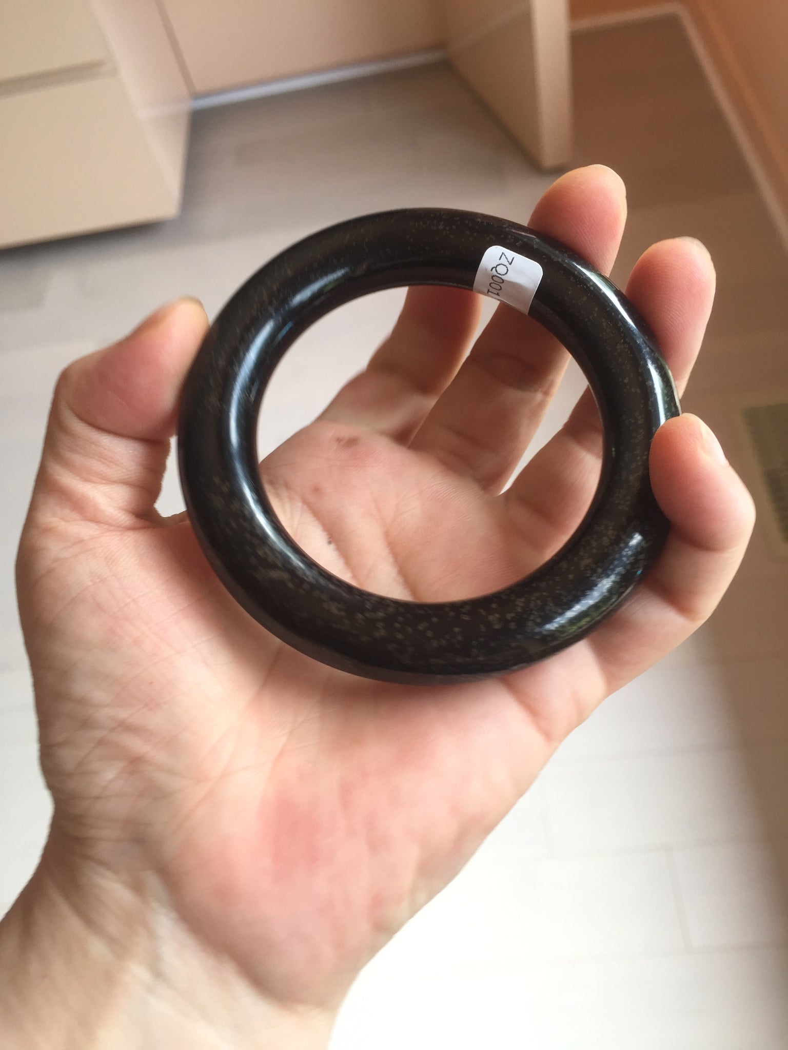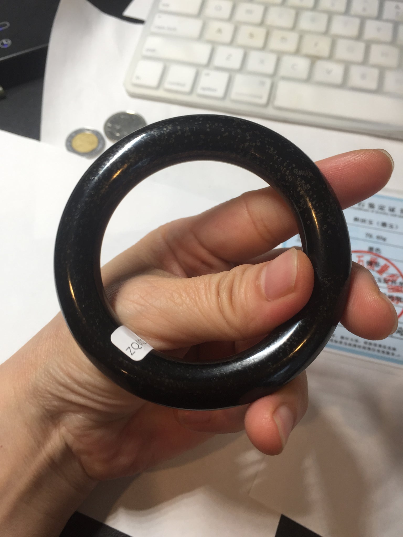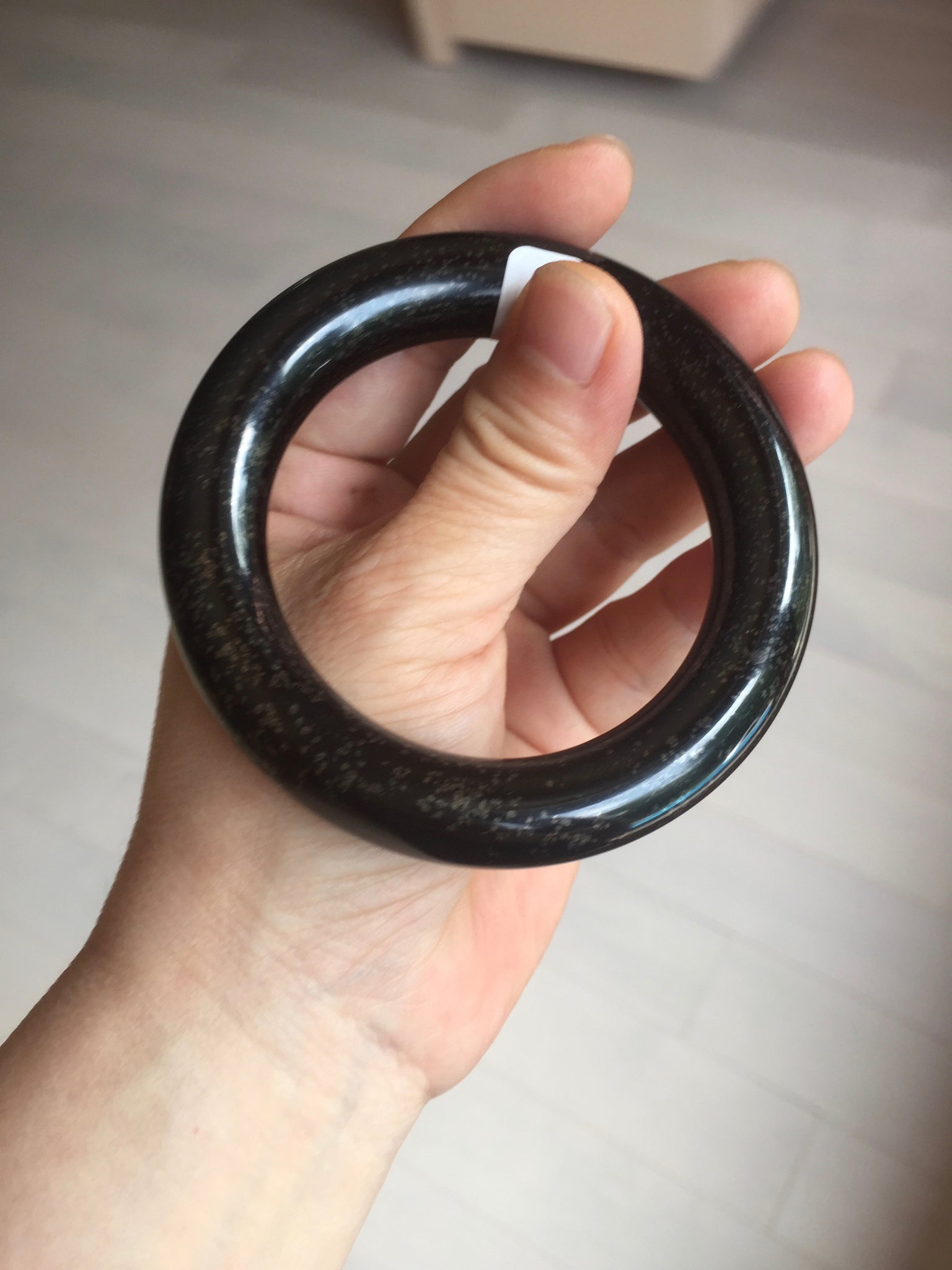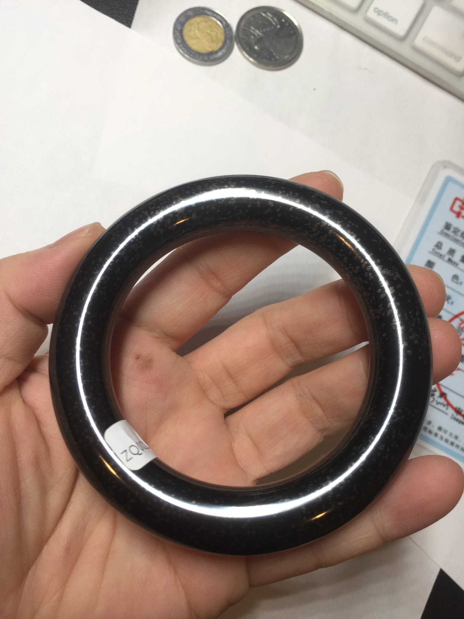 54.3mm certified 10% Natural black(MO YU 墨玉) meteorite Stellar Night sky chubby round cut nephrite bangle HN1-8246