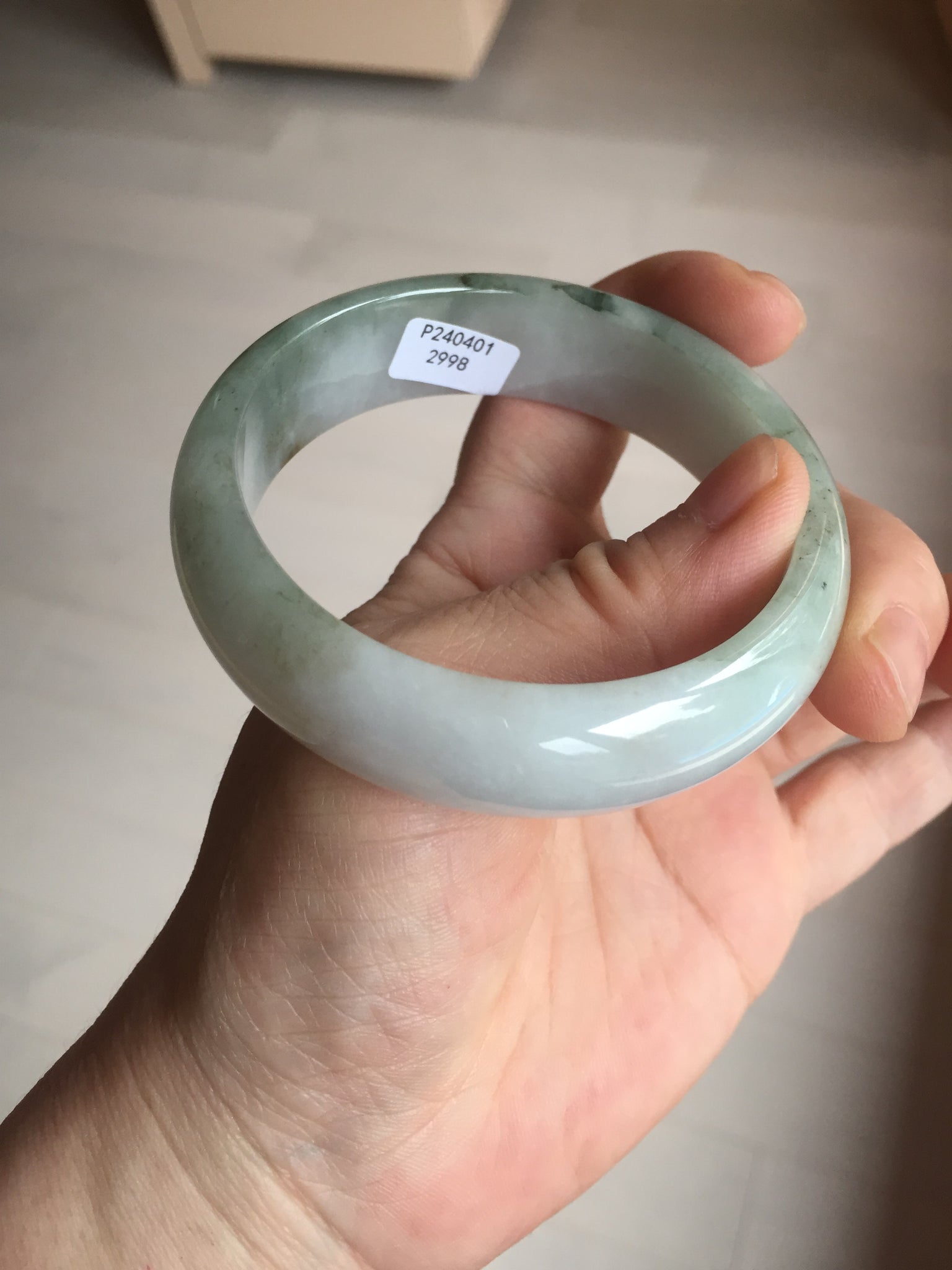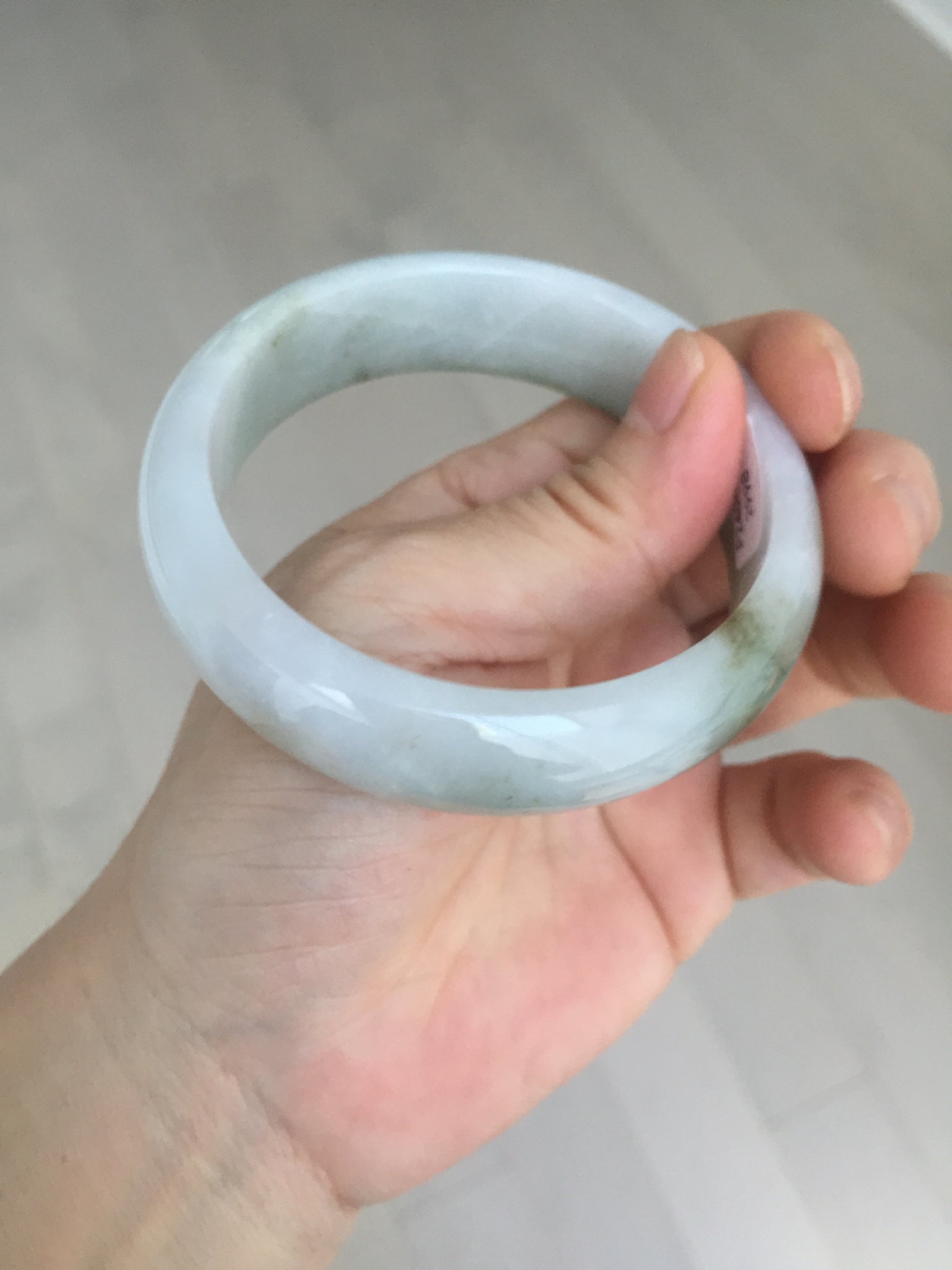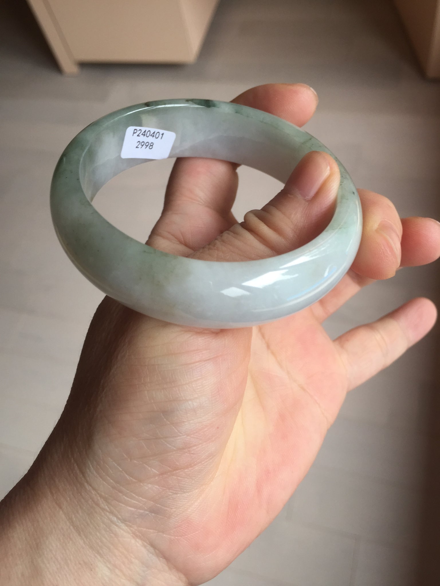 57.5mm Certified 100% natural Type A dark green white gray chubby jadeite jade bangle AD118-2998