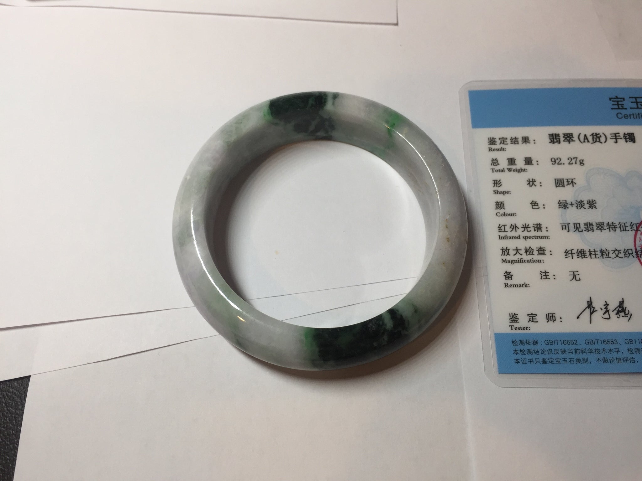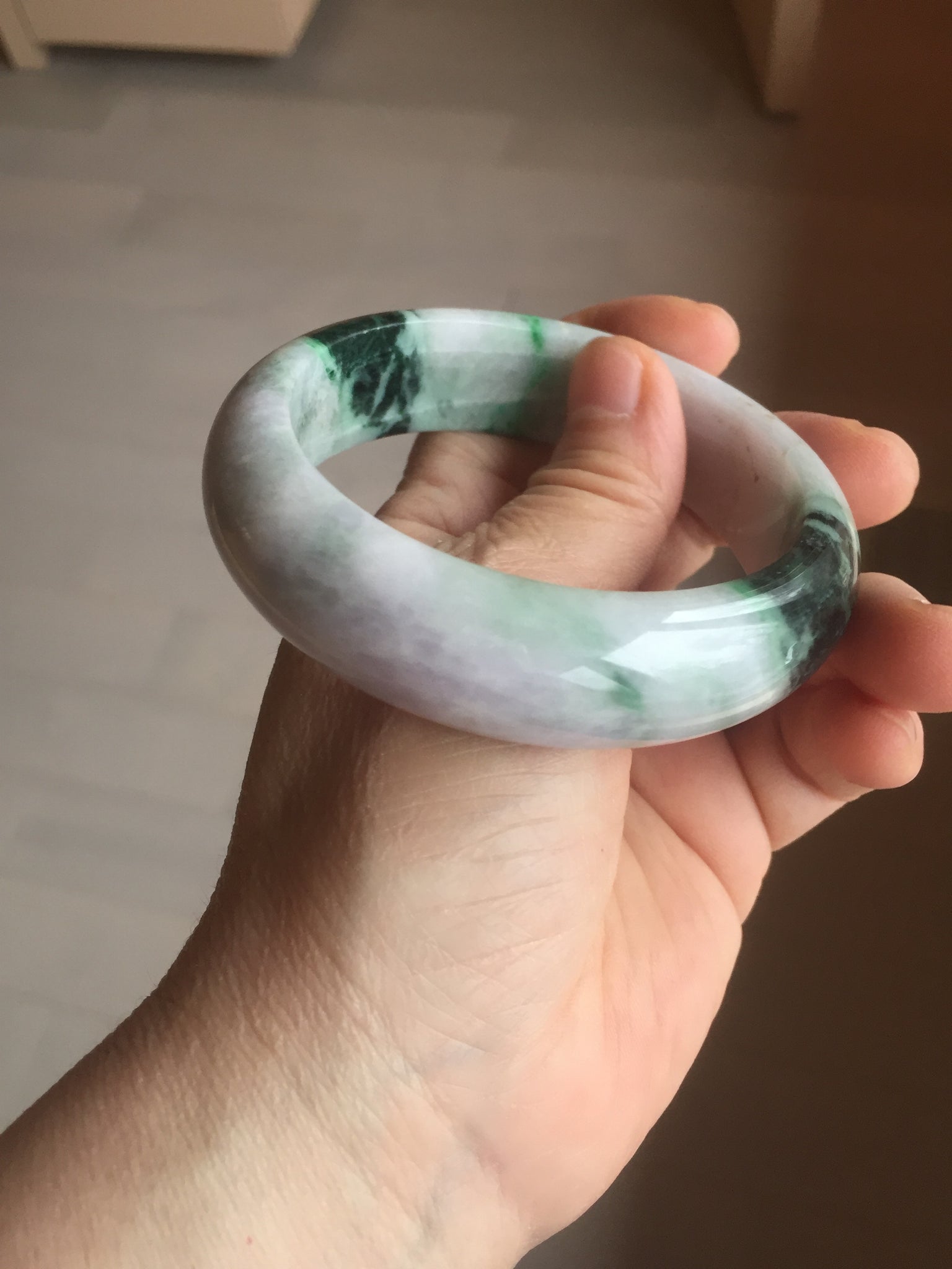 Some rough surfaces, notches with wax, surface fissures, and mine pits. Photos may not show all of them. Some hairlines. Some of hairlines are long. Some cotton spots and cotton lines. The bangle is solid(Guaranteed!).
