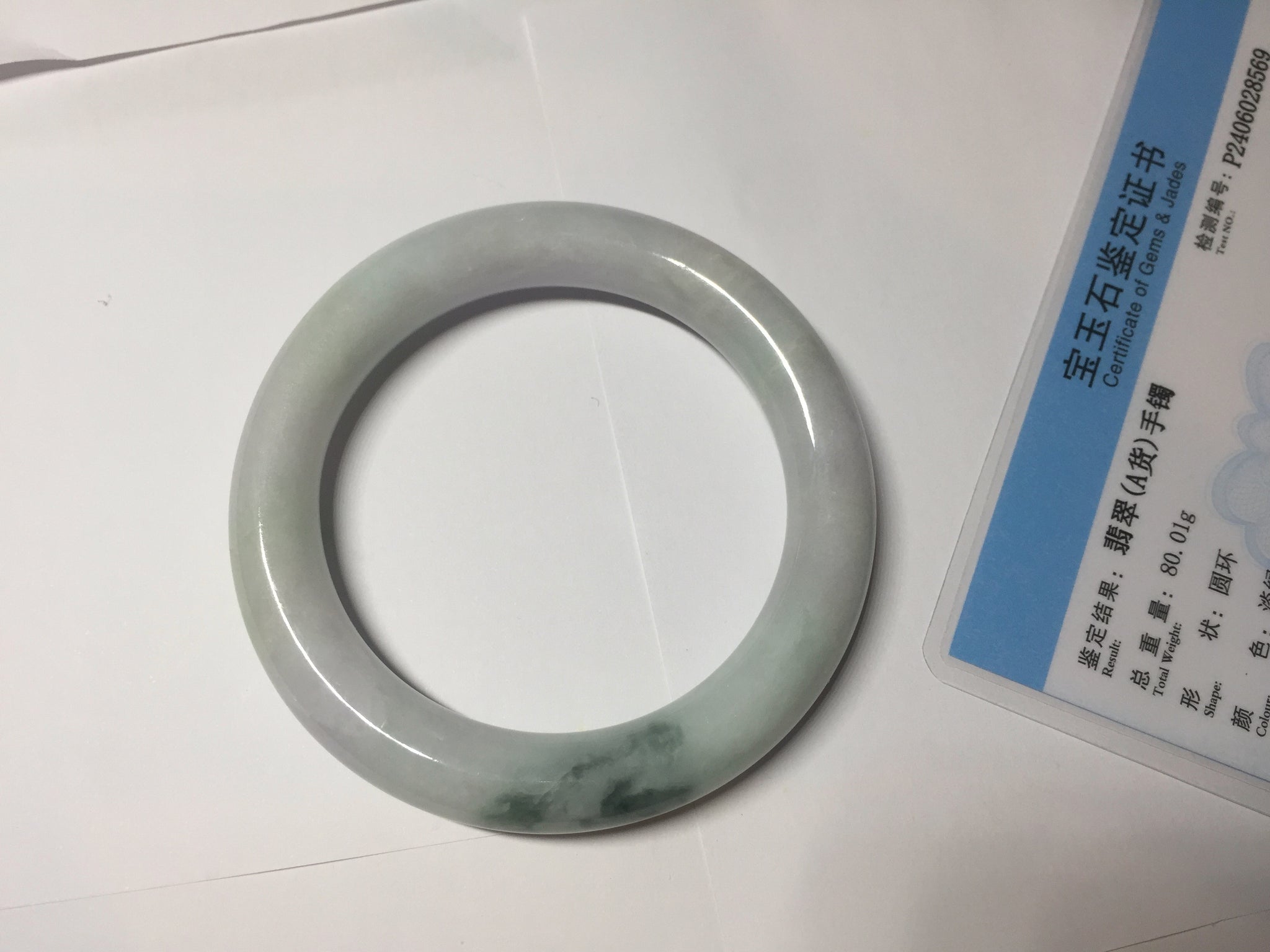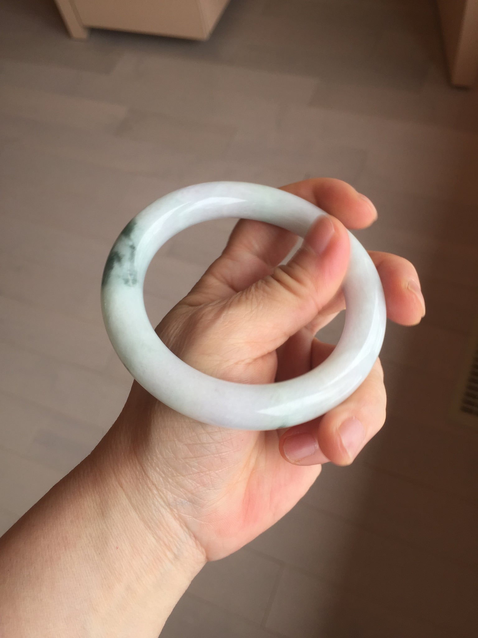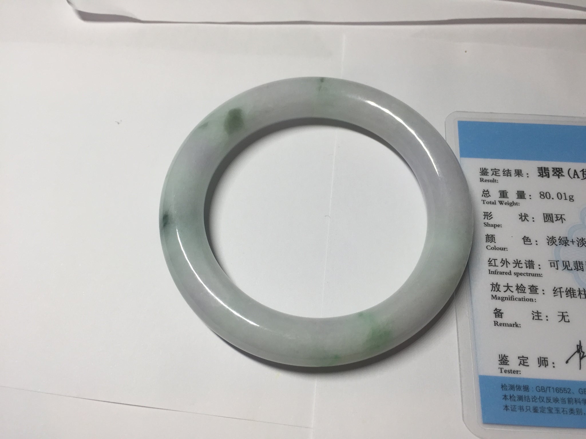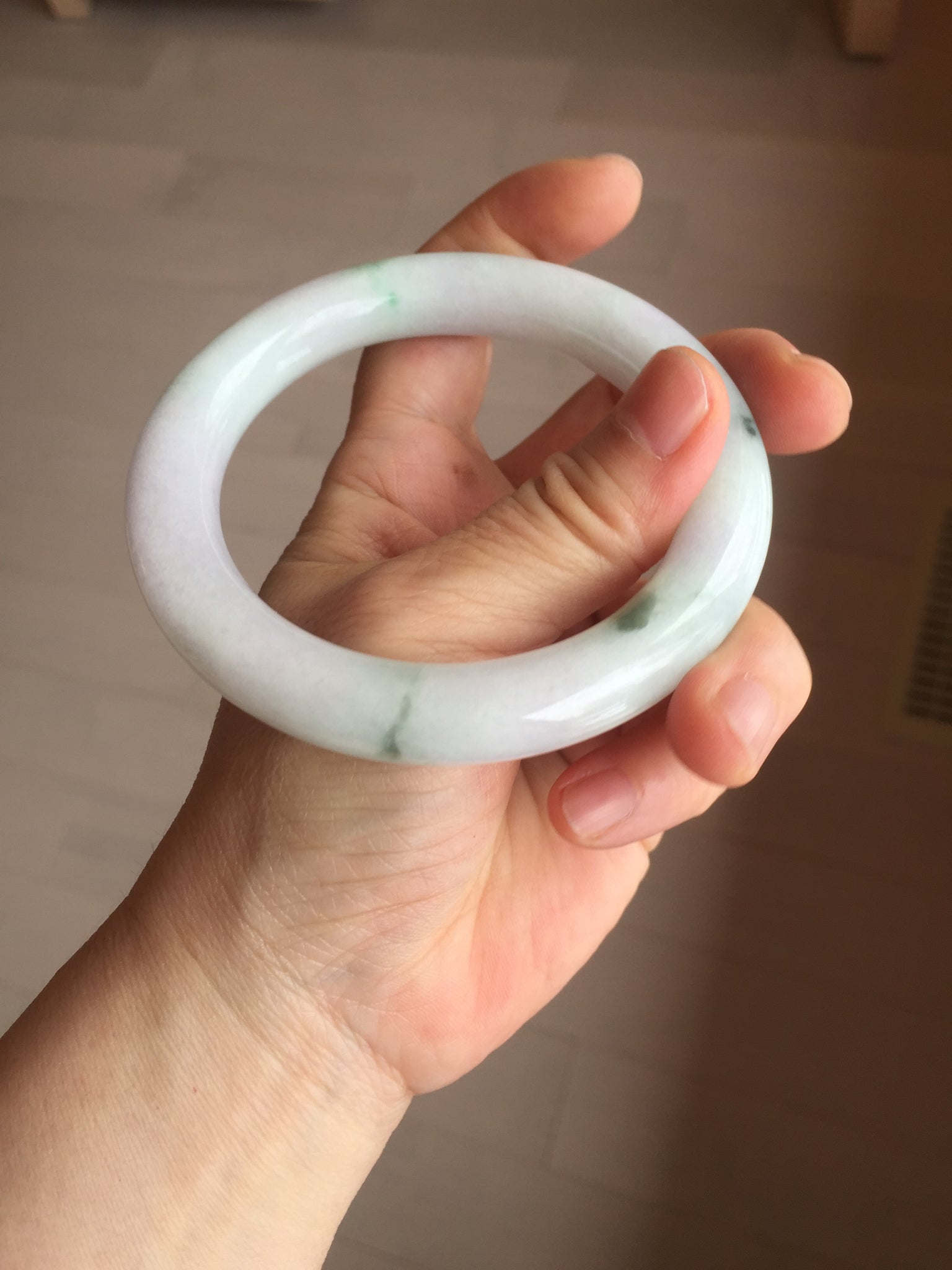 Some surface cracks and fissures. One of them is almost around the bangle. The inner side still connected. The bangle is solid(refund guaranteed!). One small rough surface. Some hairlines. Some cotton spots, cotton lines, and cotton areas. Not transparent. One part is thinner than other parts. The purple is lighter than in the photos due to the purple color always more camera friendly.