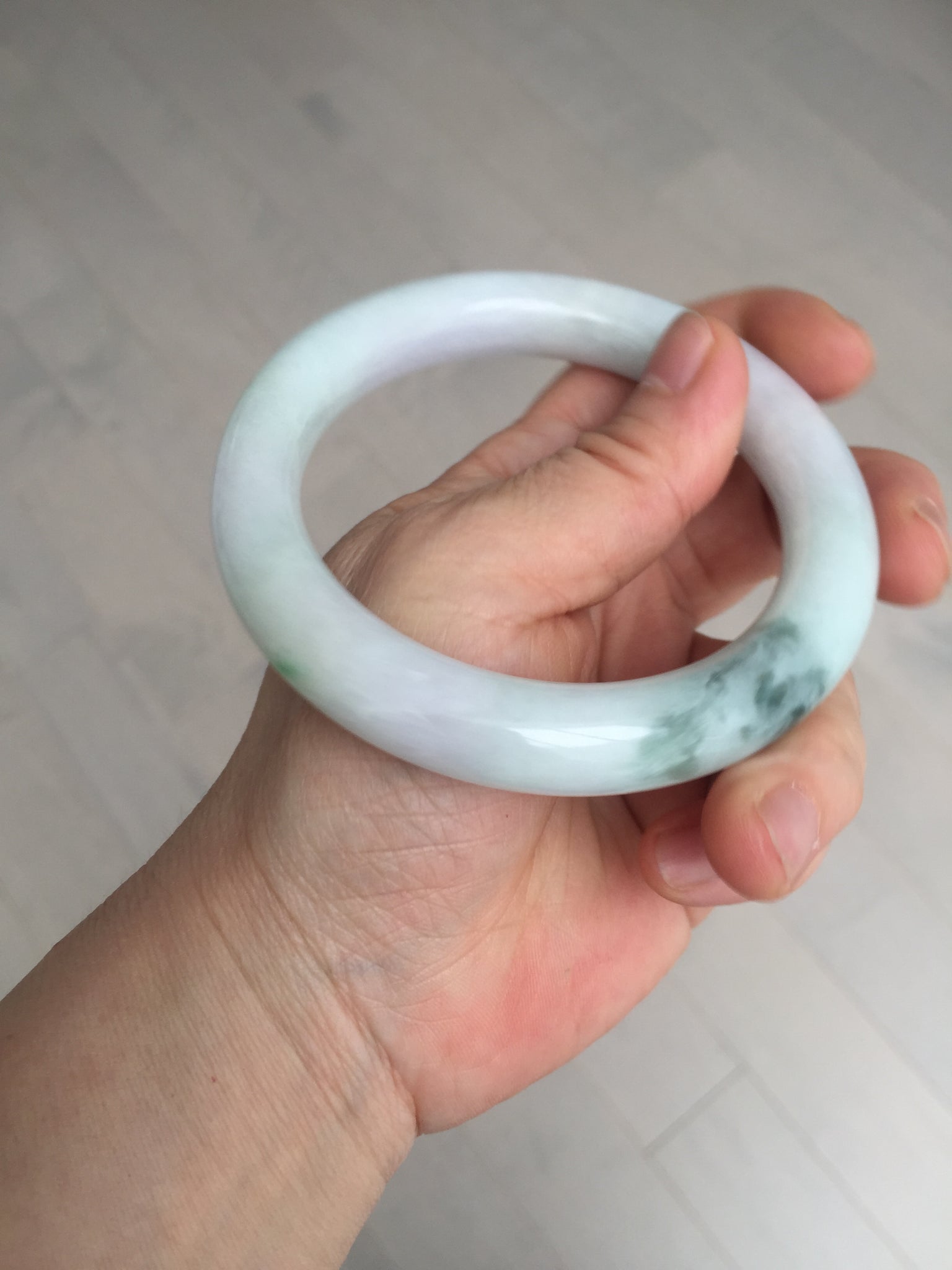60mm certified 100% natural light green/white/purple chubby round cut jadeite jade bangle BS40-8569