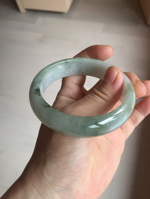 58.3mm Certified 100% natural Type A light green/white chubby jadeite jade bangle BF78-4501
