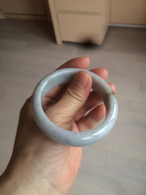 59mm Certified Type A 100% Natural light purple white chubby broad style Jadeite Jade bangle BM98-4481
