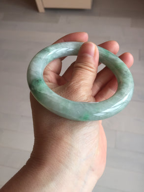 58.4mm Certified Type A 100% Natural light green chubby round cut Jadeite Jade bangle BM36-0023