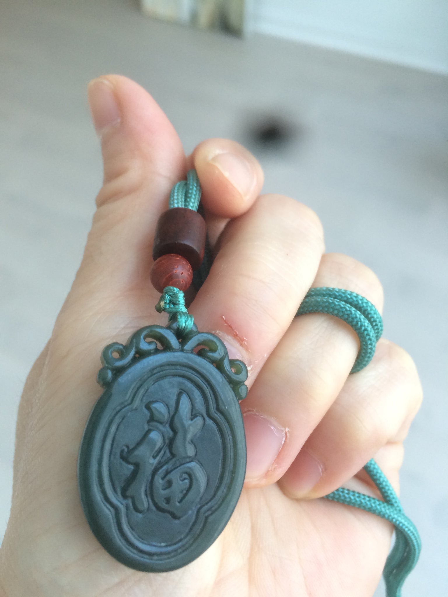 Size: 3.3/22.5/4.5mm With a carved Chinese character "福"(blessed)