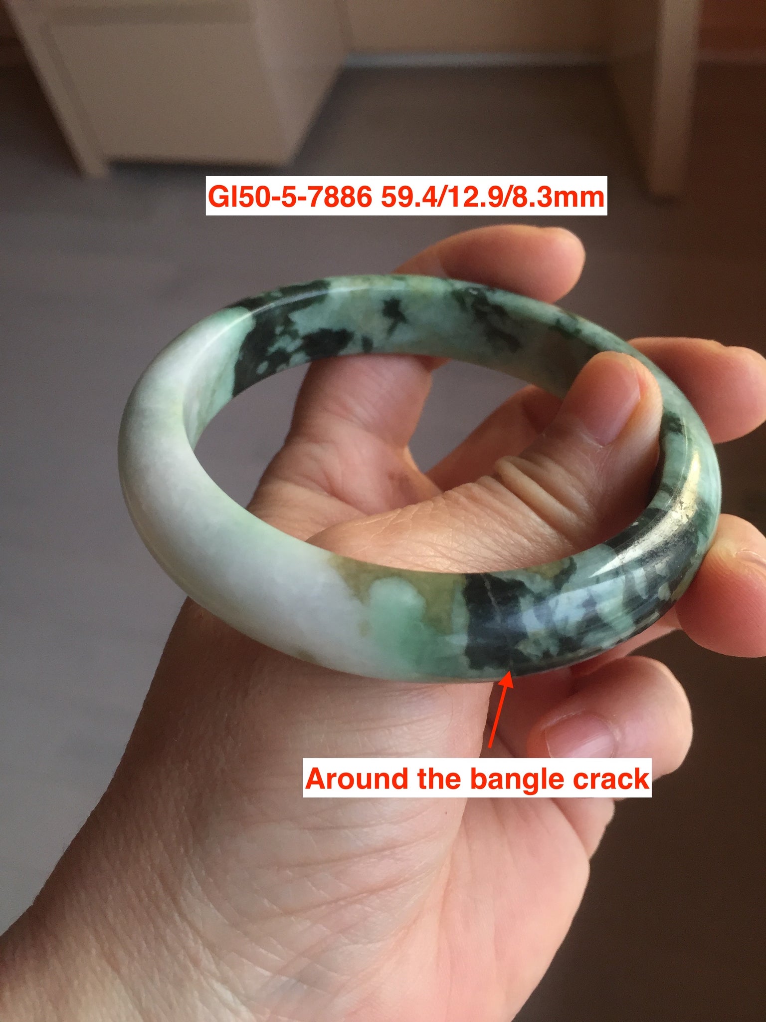 52-63mm certified Type A 100% Natural dark green/white/black Jadeite Jade bangle group with defects GL1