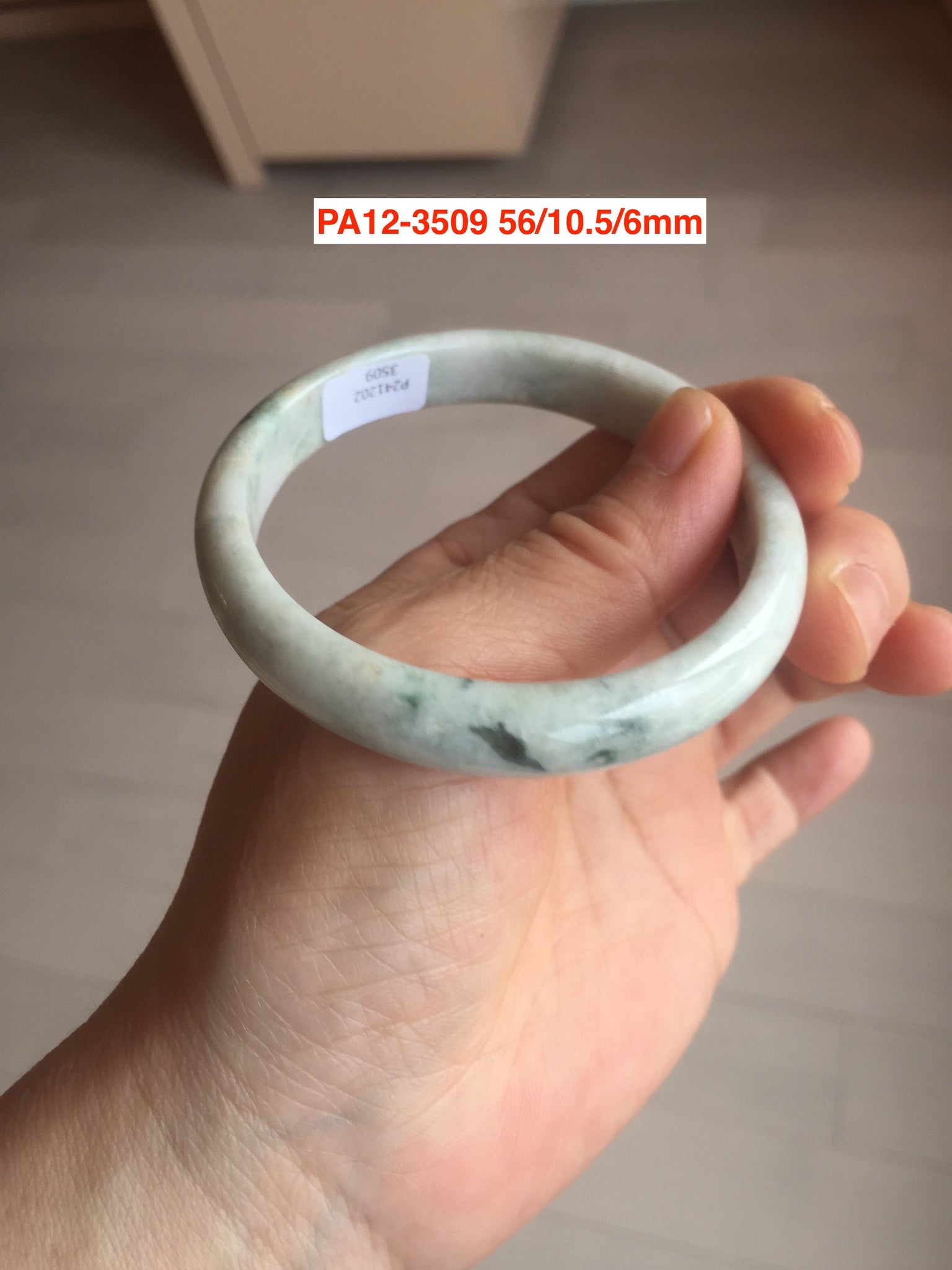 Jadeite Jade Bangle variety of size. With this low price, they all have defects (Big cracks, hairlines, color roots, dark spots, no fine texture, color root, rough surfaces, mine pits, notches, black areas, gray color, not transparent, Not watery.)