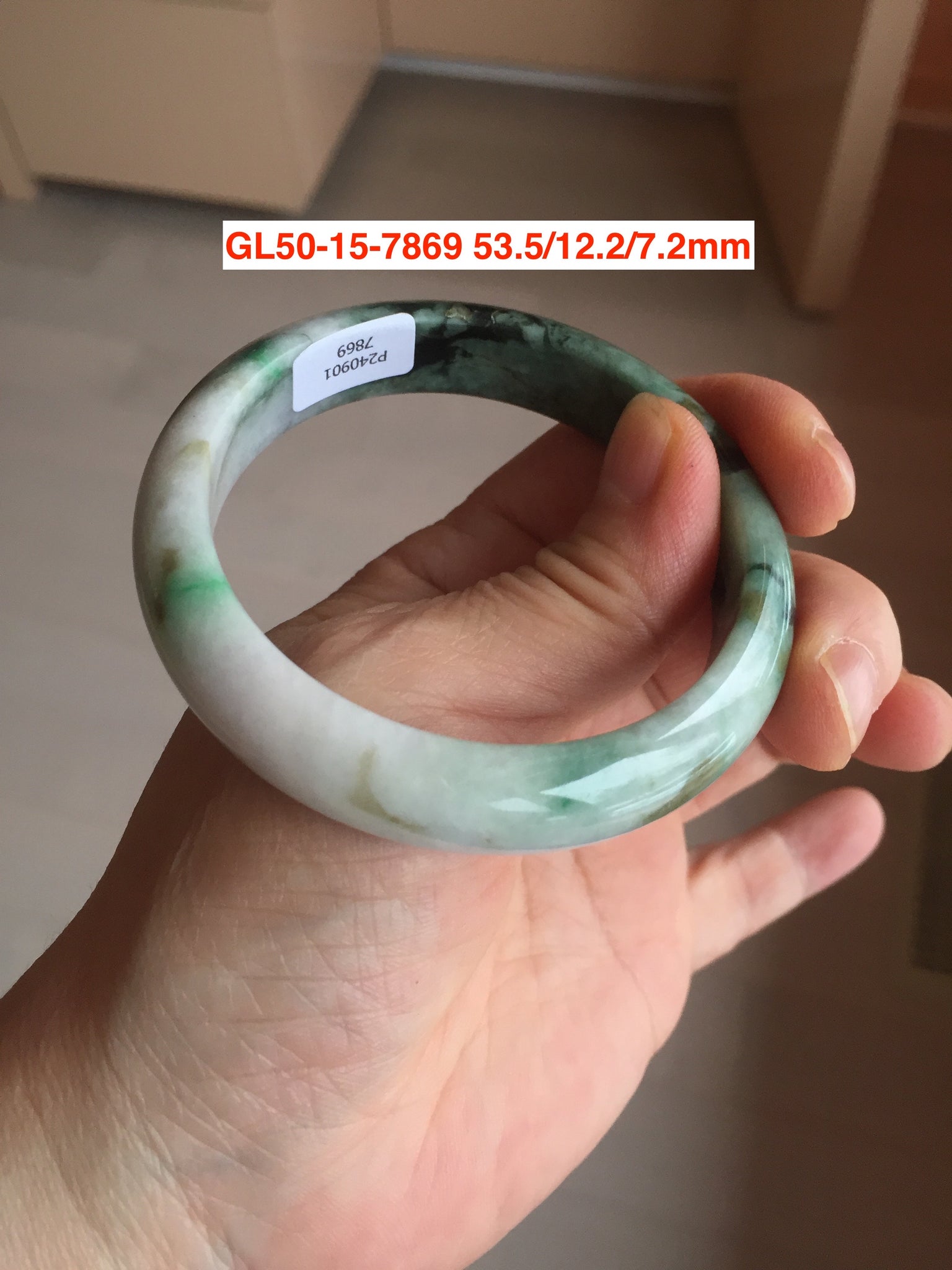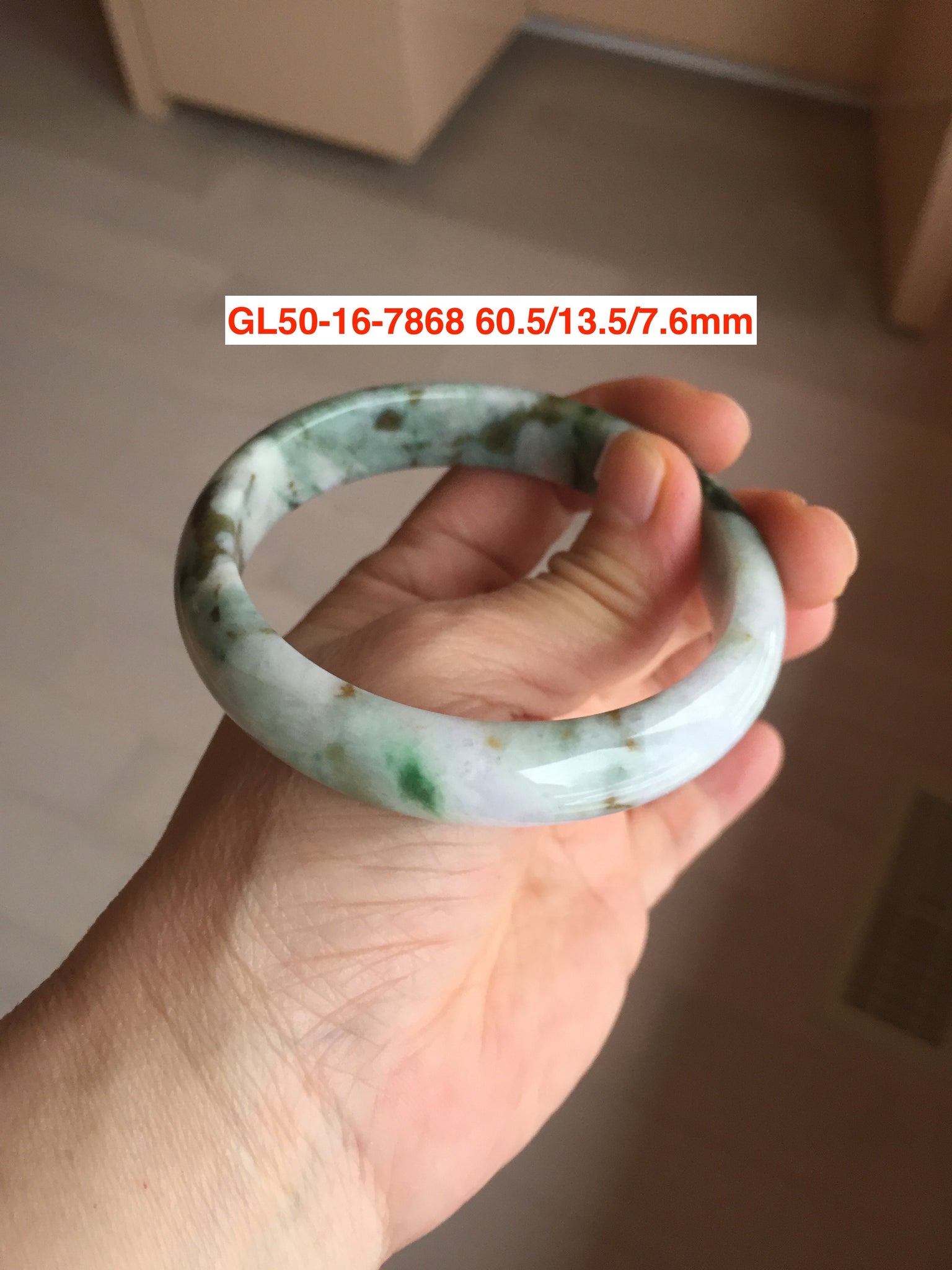 Jadeite Jade Bangle variety of size. With this low price, they all have defects (could be cracks, hairlines, color roots, dark spots, rough surfaces, no fine texture, not transparent, Not watery.)