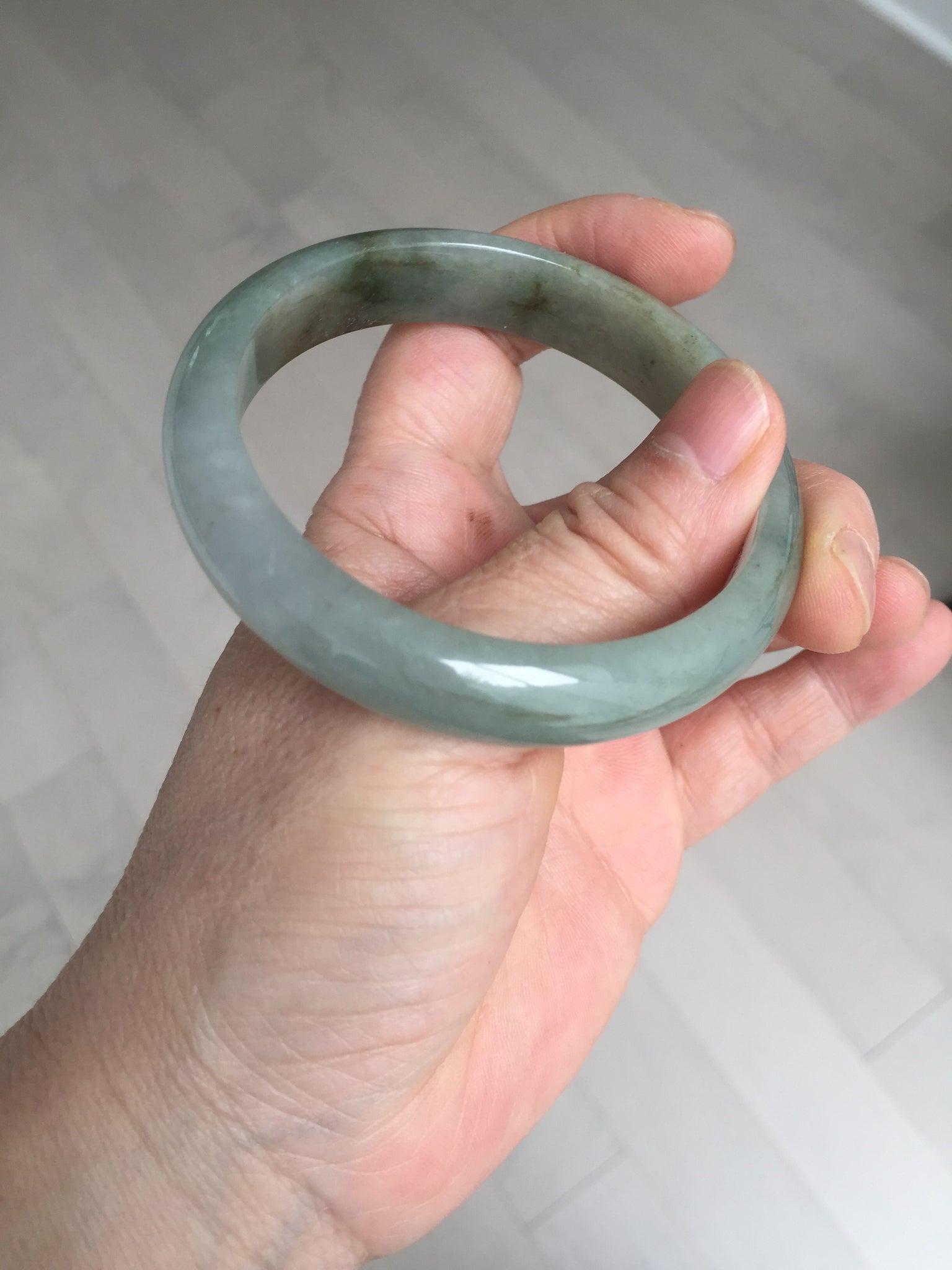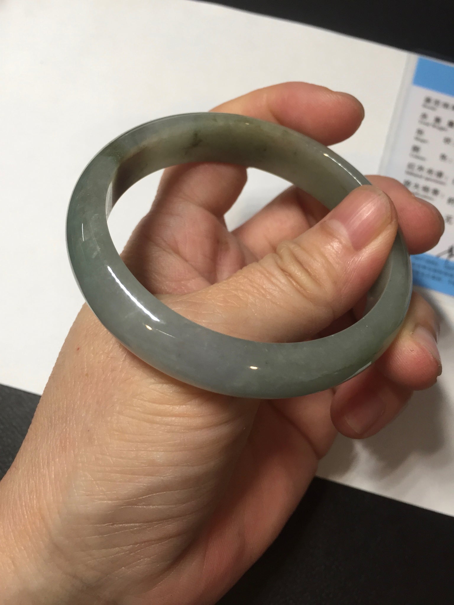 55.8mm Certified 100% natural Type A oily dark green/gray/black jadeite jade bangle BN32-8086