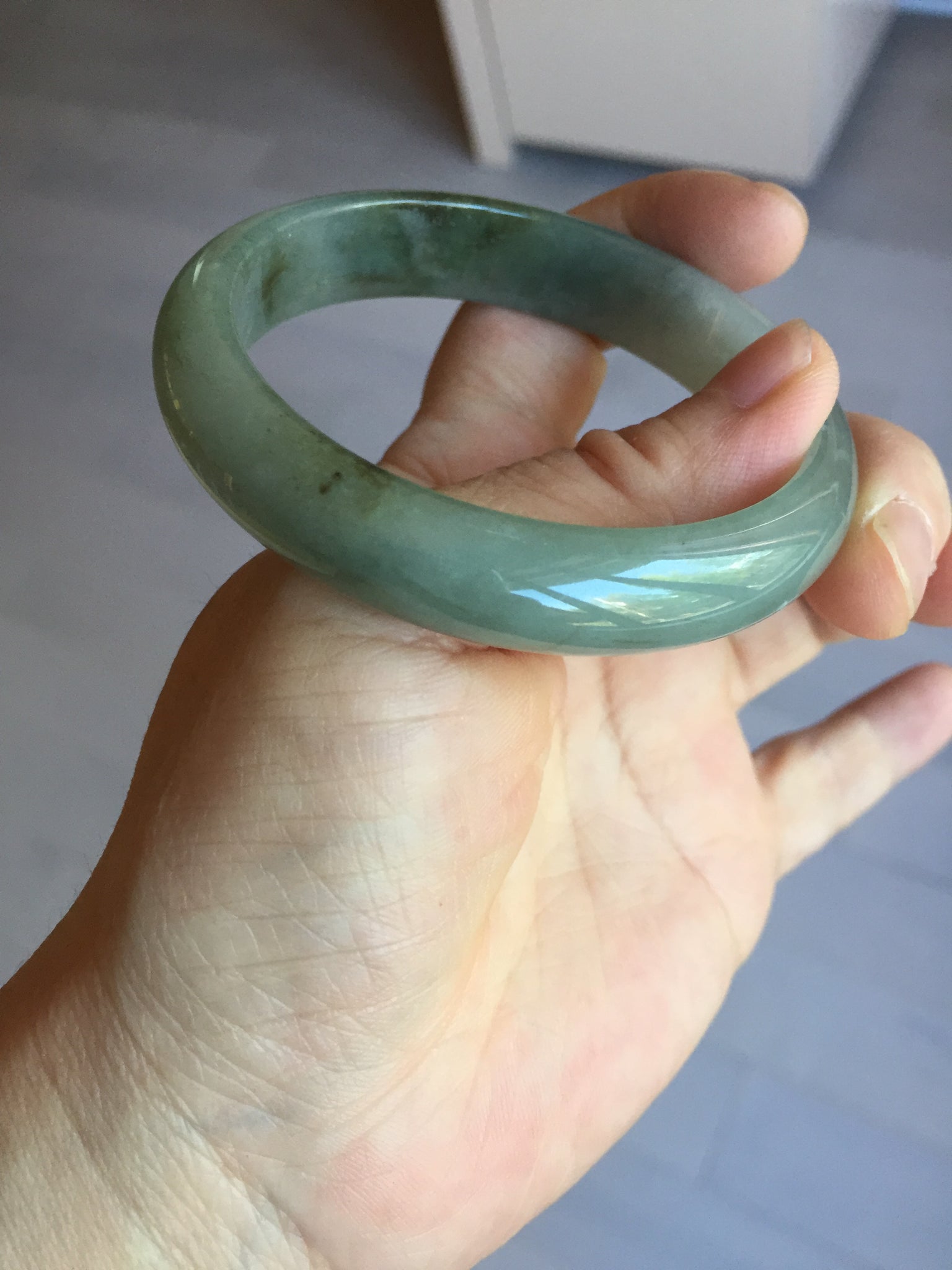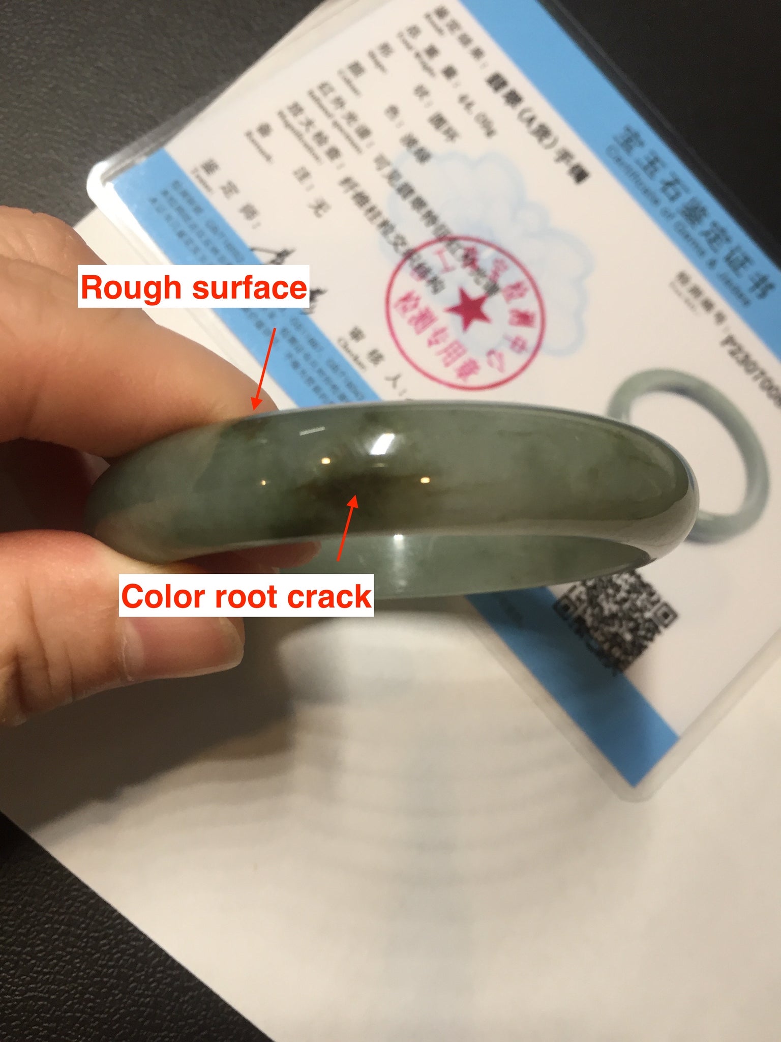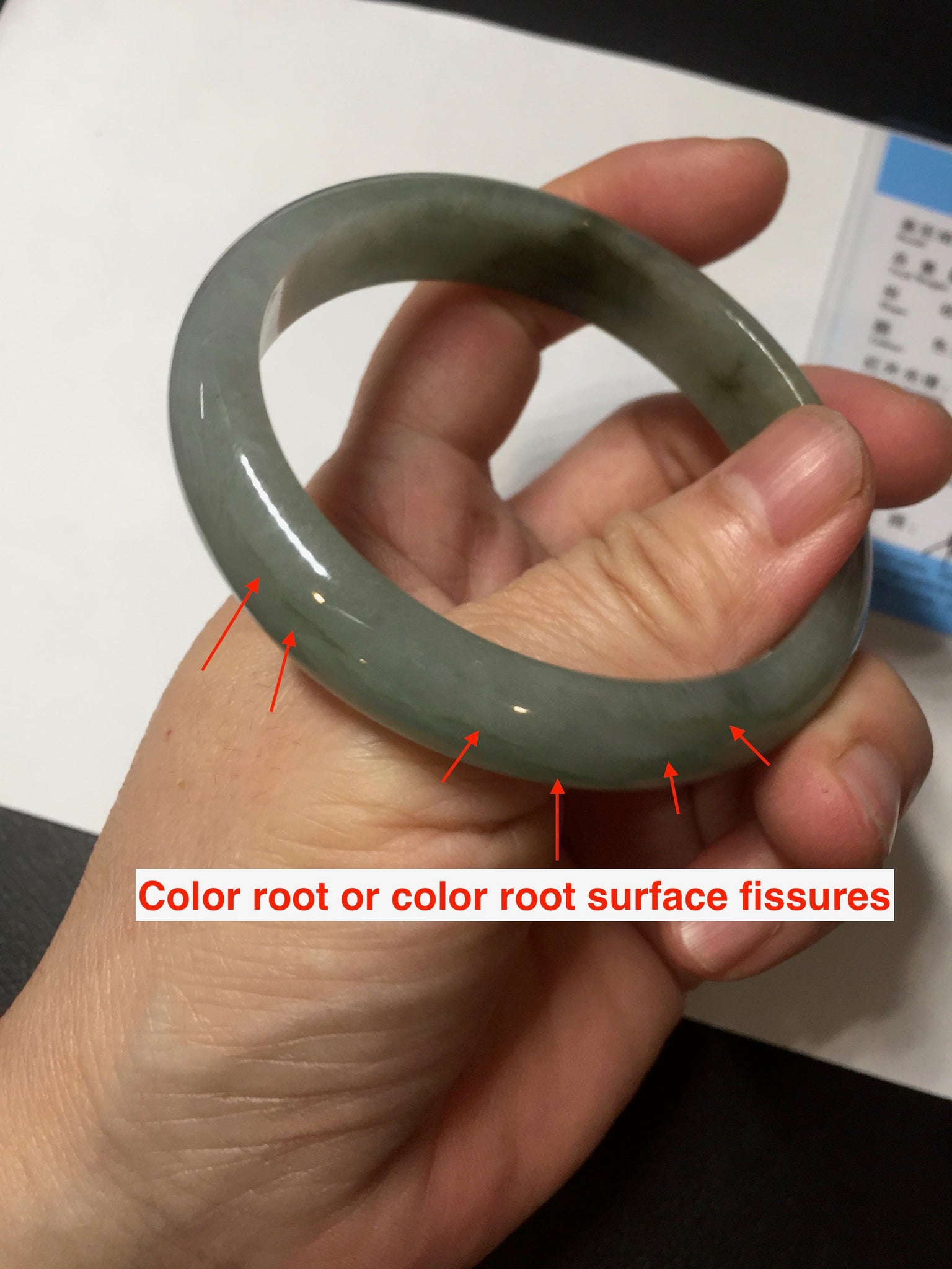 Some color roots or color root surface cracks/ fissures. The bangle is firm (guaranteed).  Not transparent. Some cotton lines, spots, and brown/black areas.