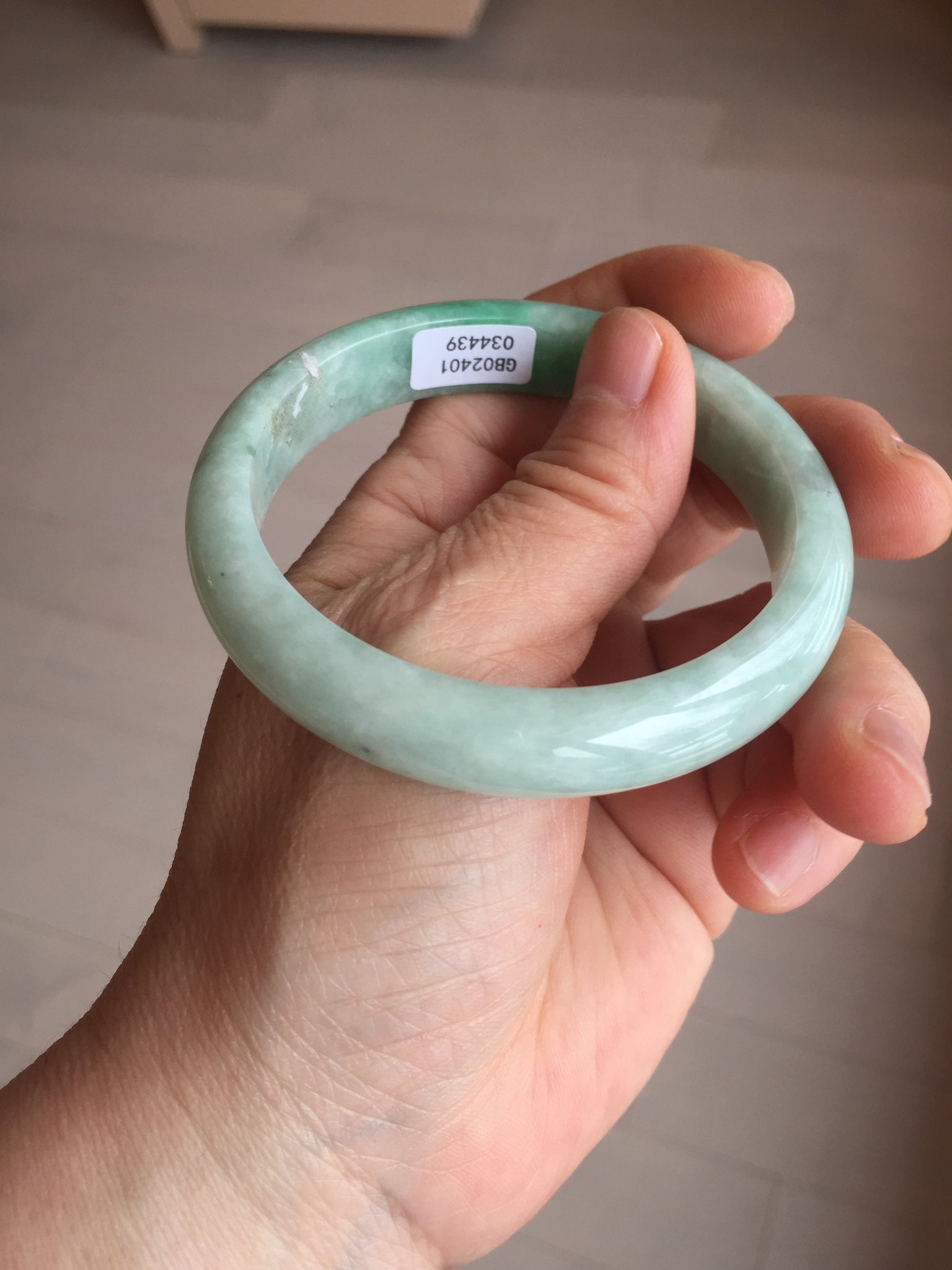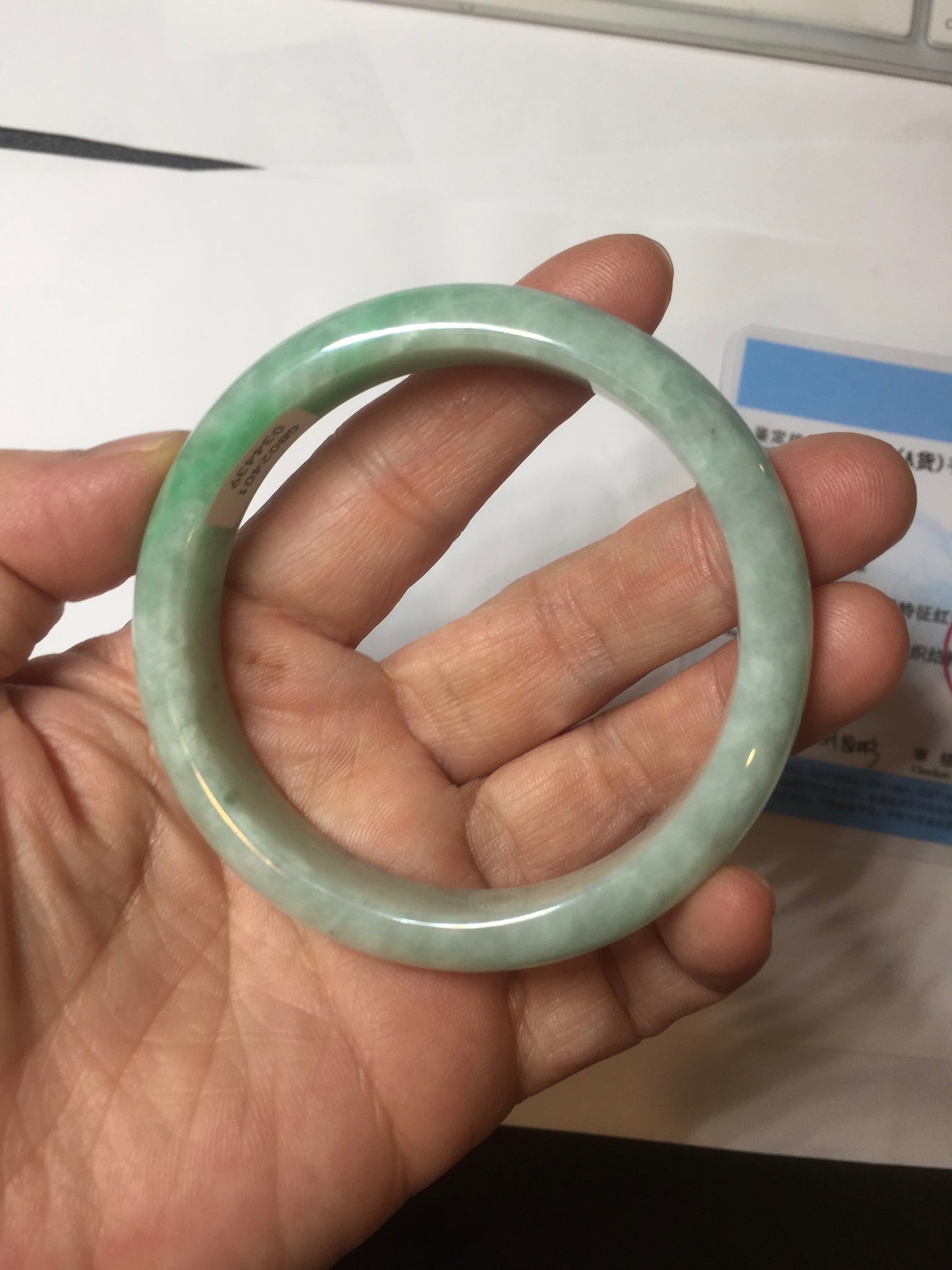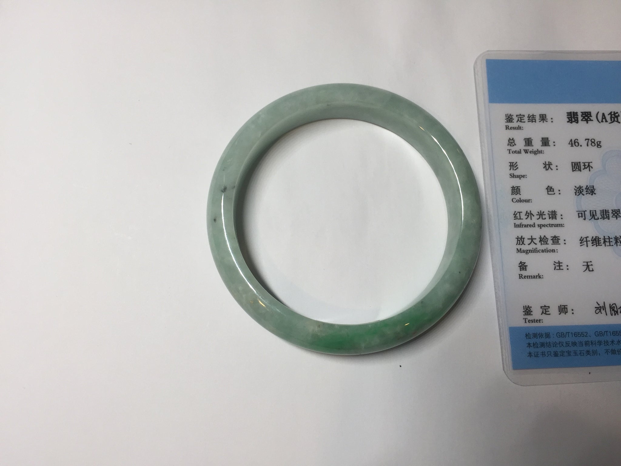56.2mm certified Type A 100% Natural sunny green/ white Jadeite Jade bangle BS32-4439