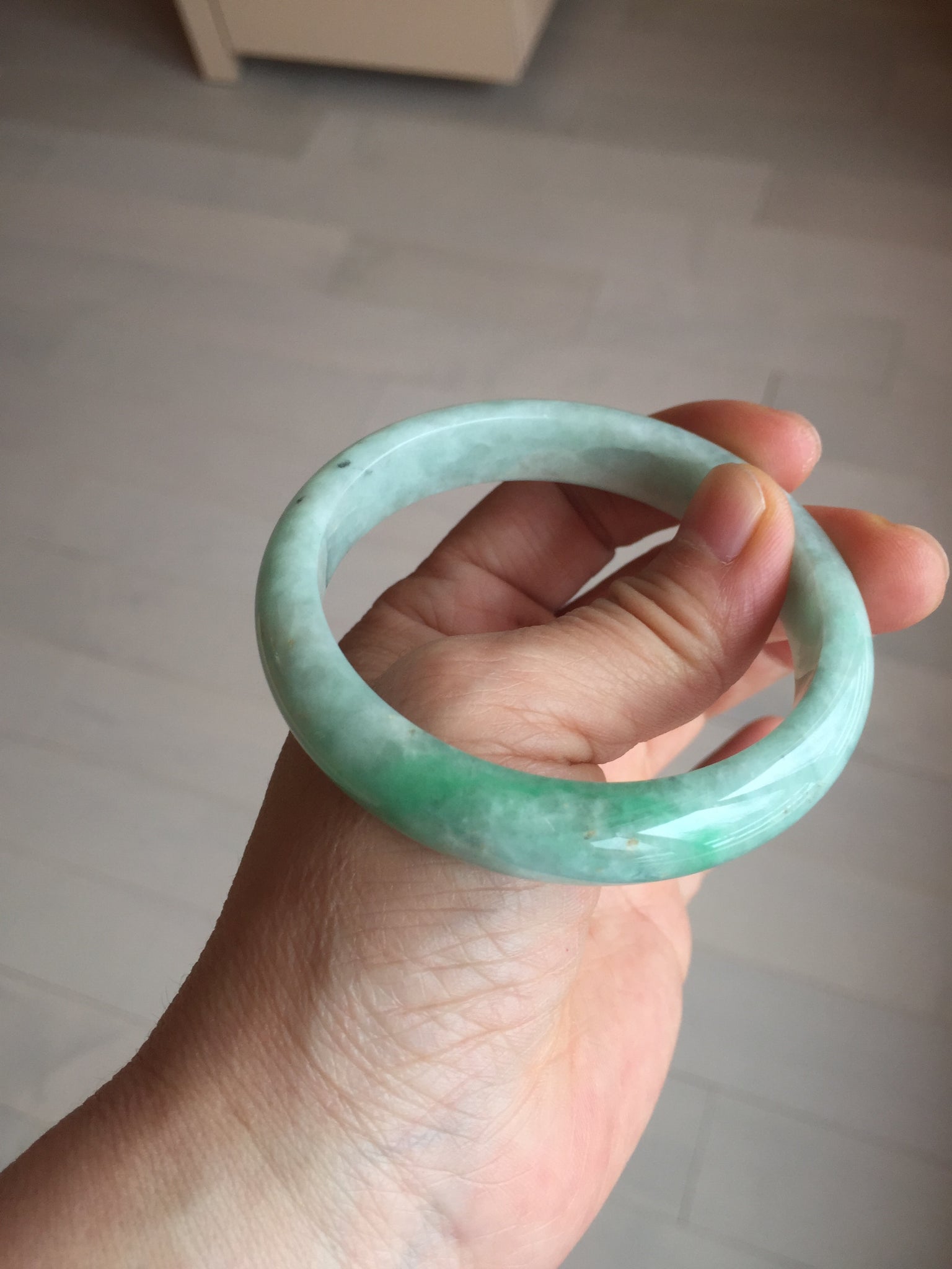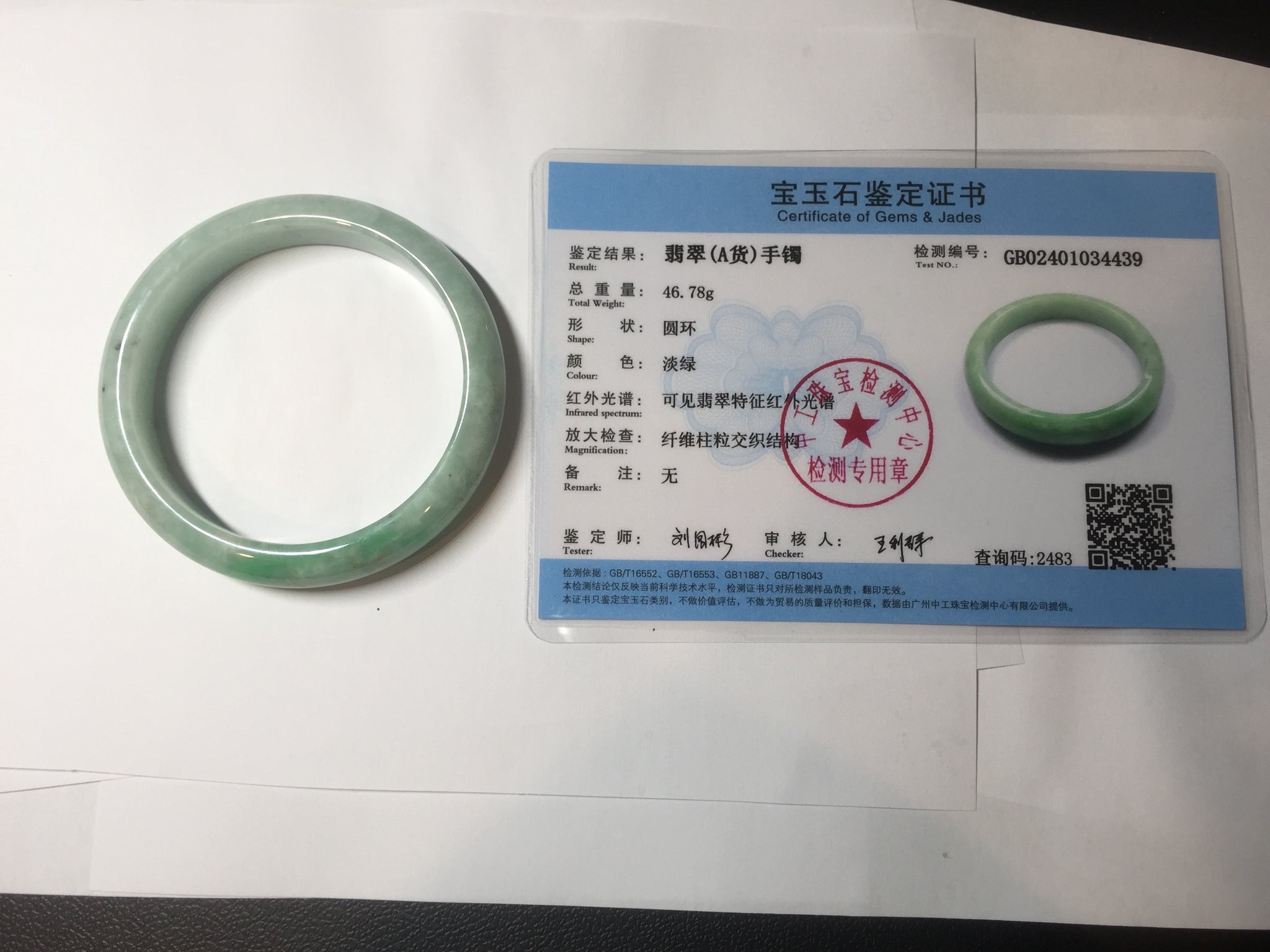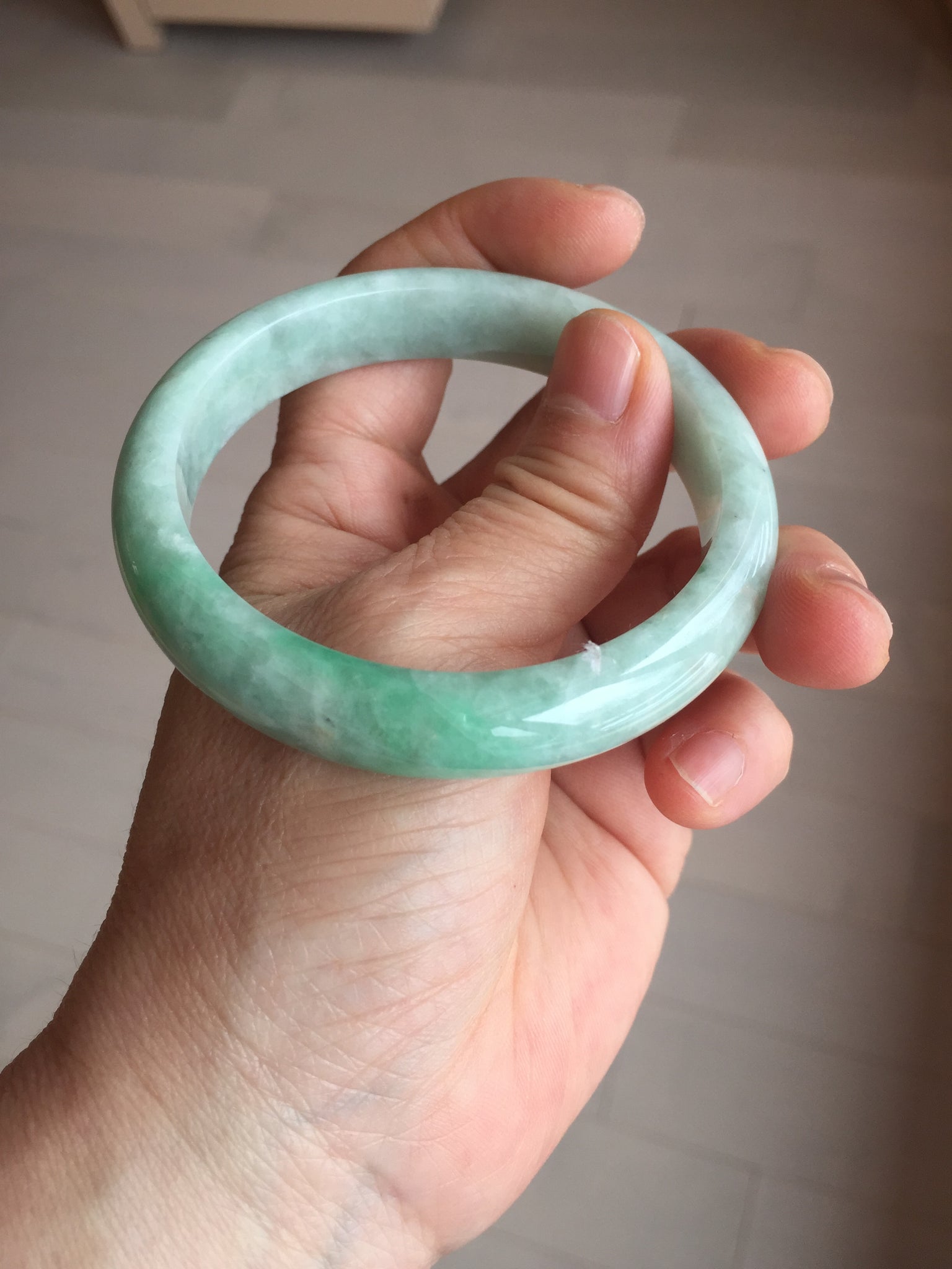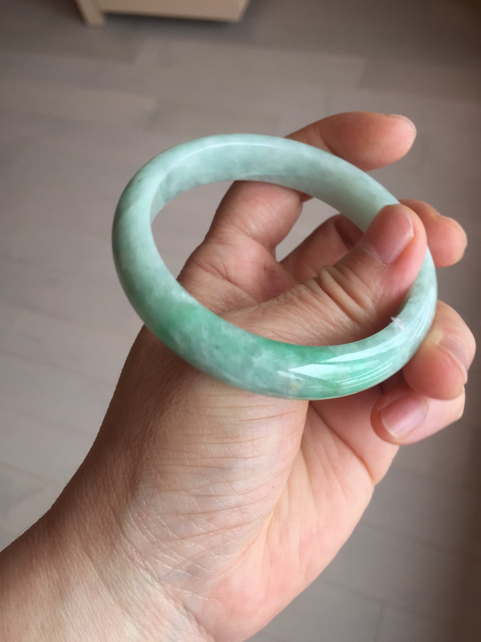 56.2mm certified Type A 100% Natural sunny green/ white Jadeite Jade bangle BS32-4439