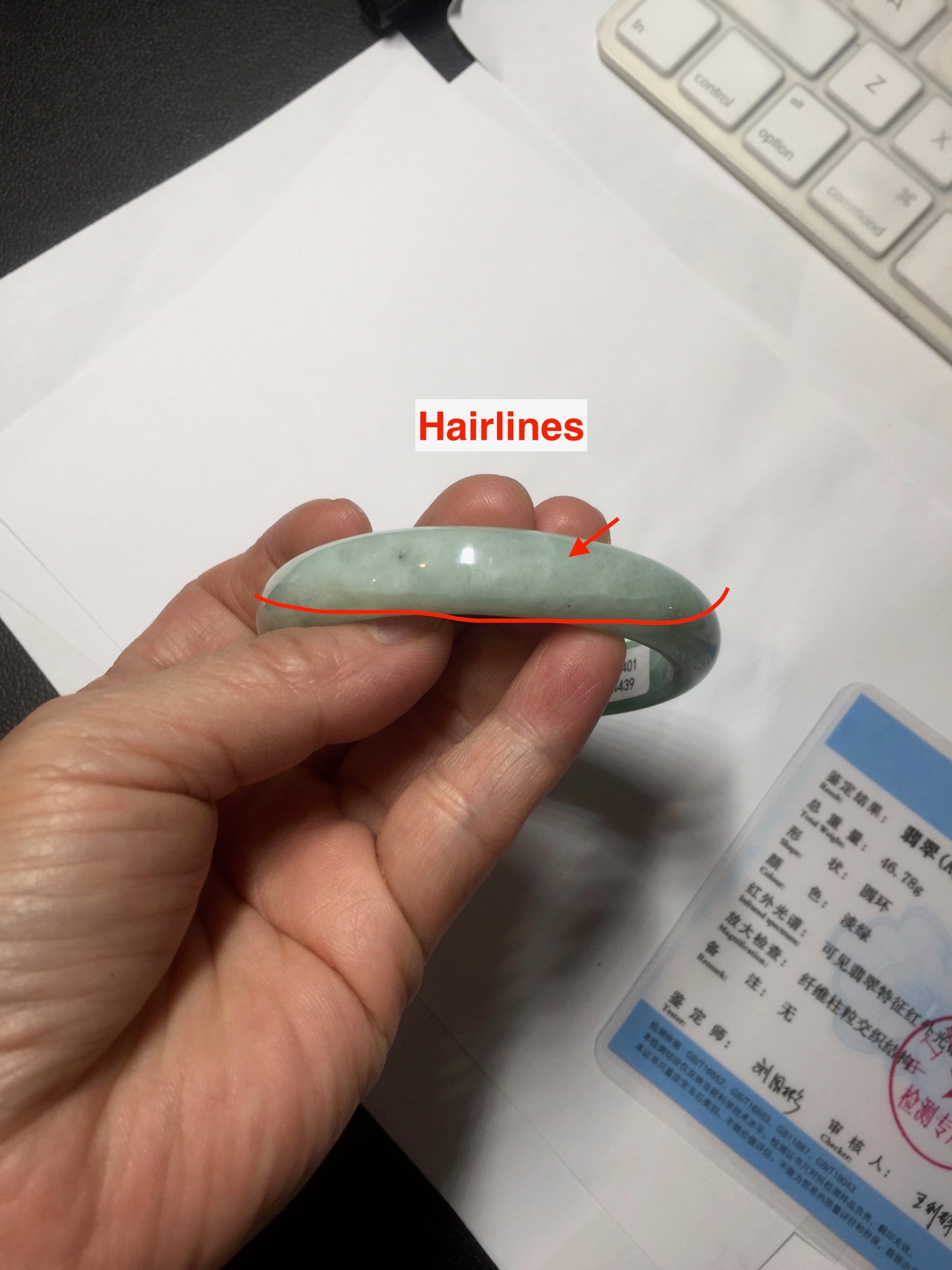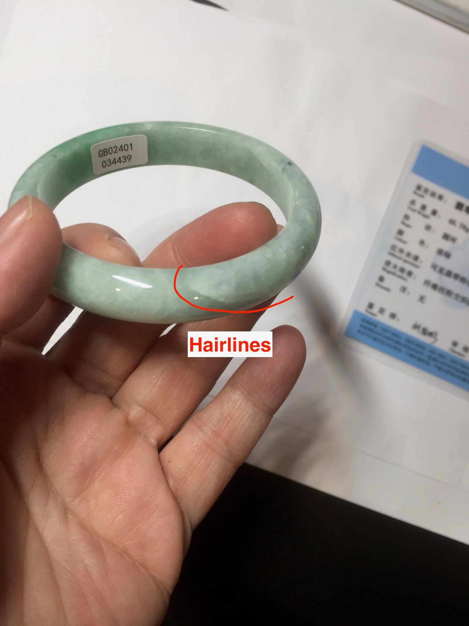Imperfections: Some cracks. Some hairlines. Some cotton spots, lines, and areas. Not transparent. Not watery.