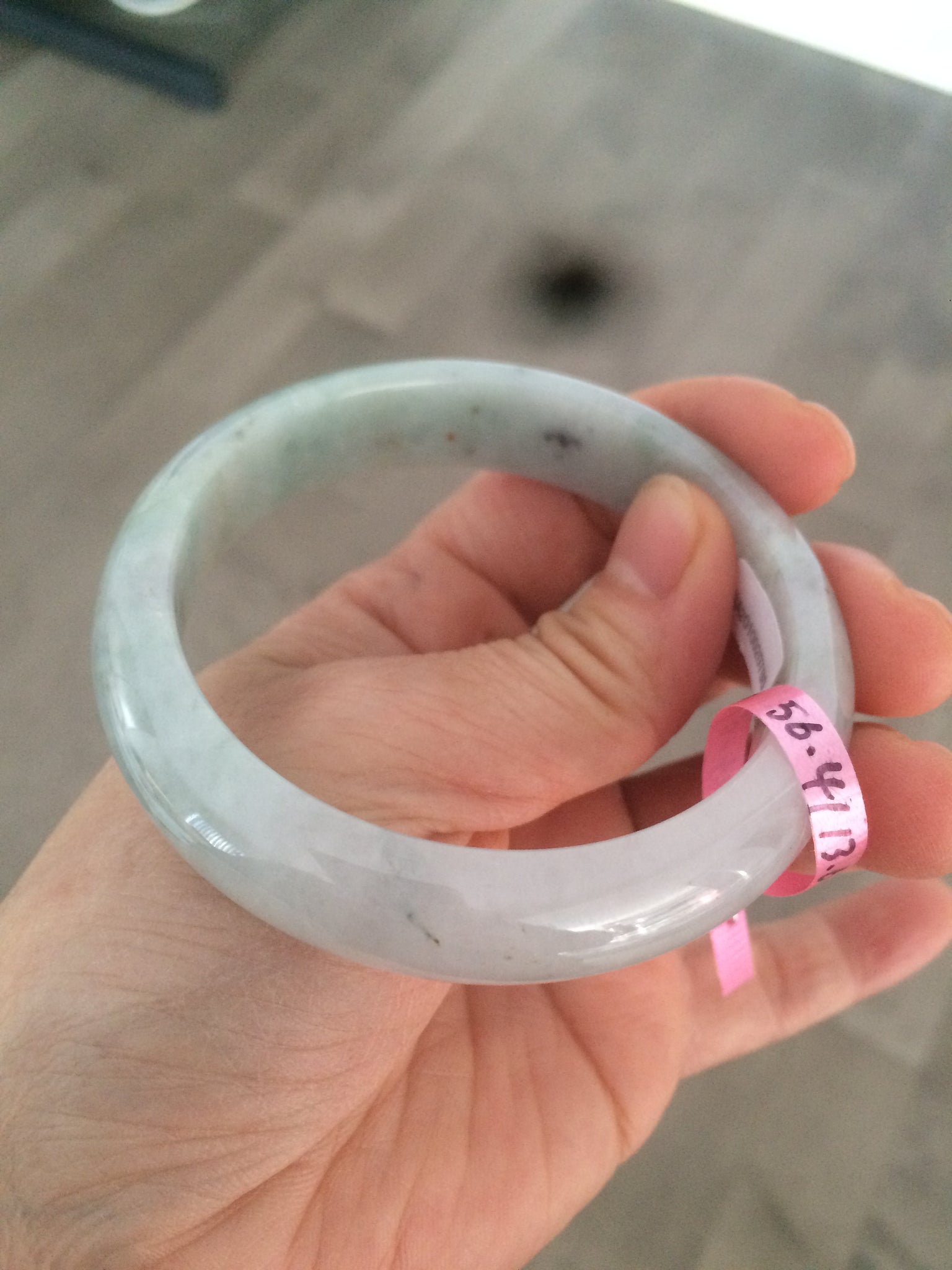 No crack. A black area with surrounding rough area, hairlines, and cotton lines. Some black spots.