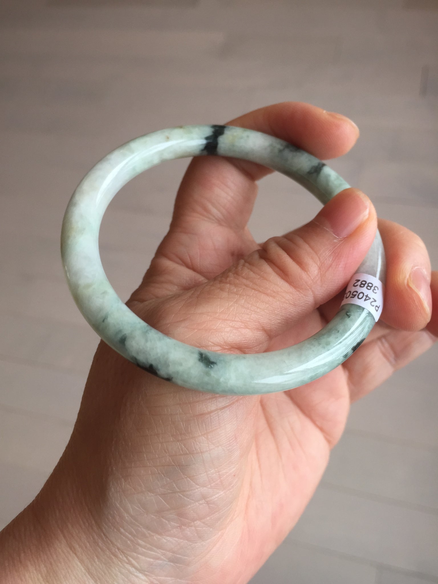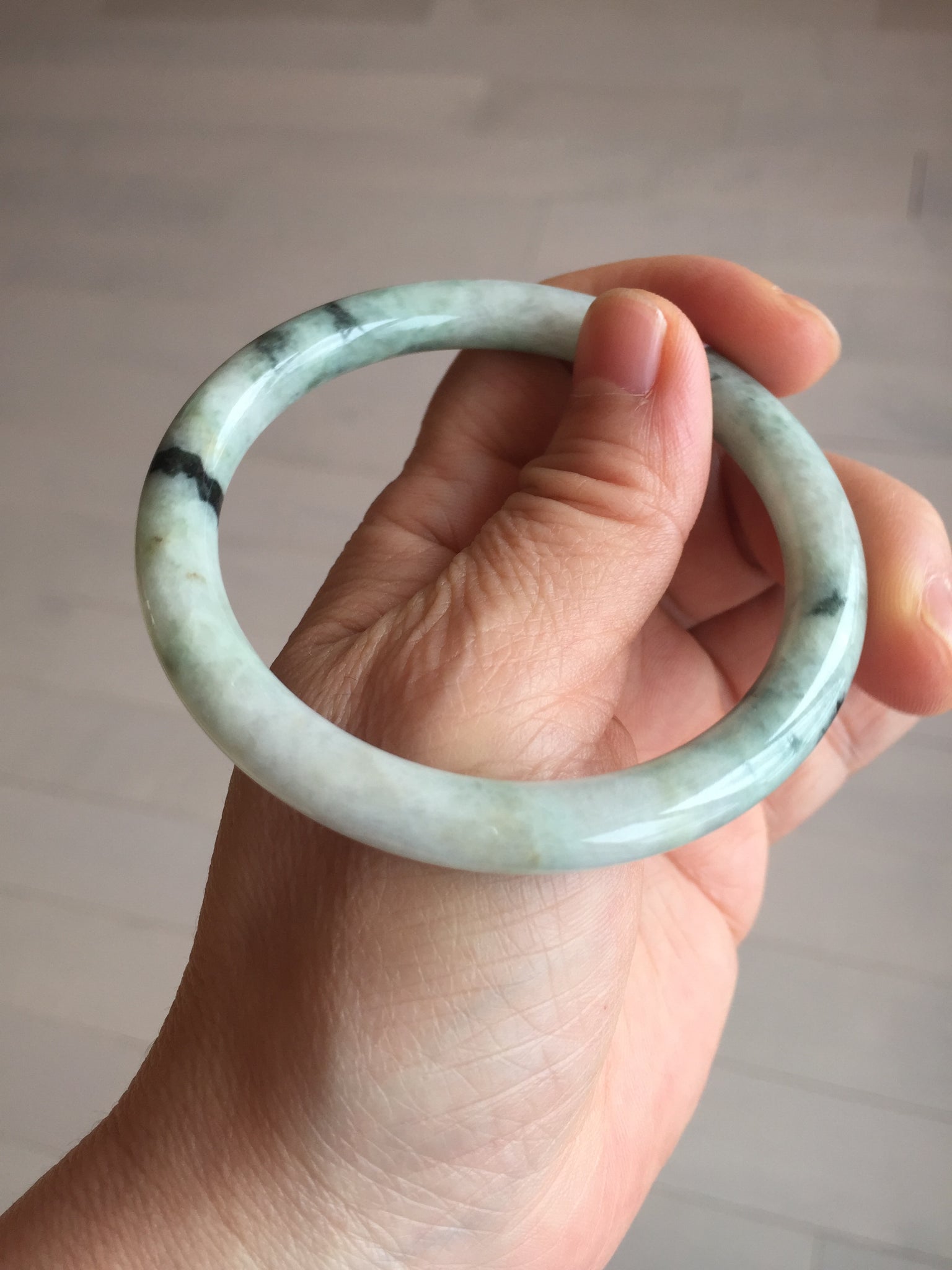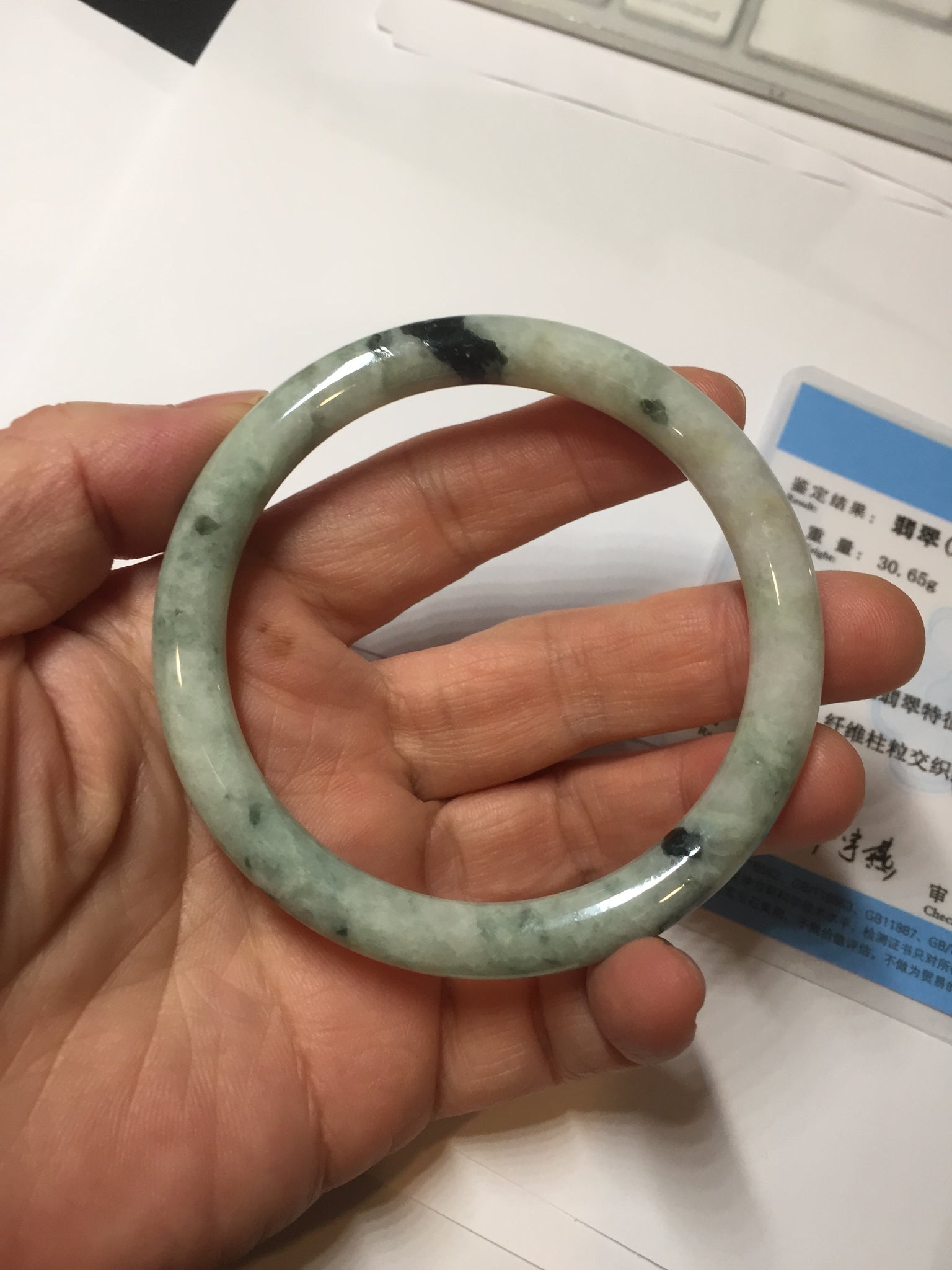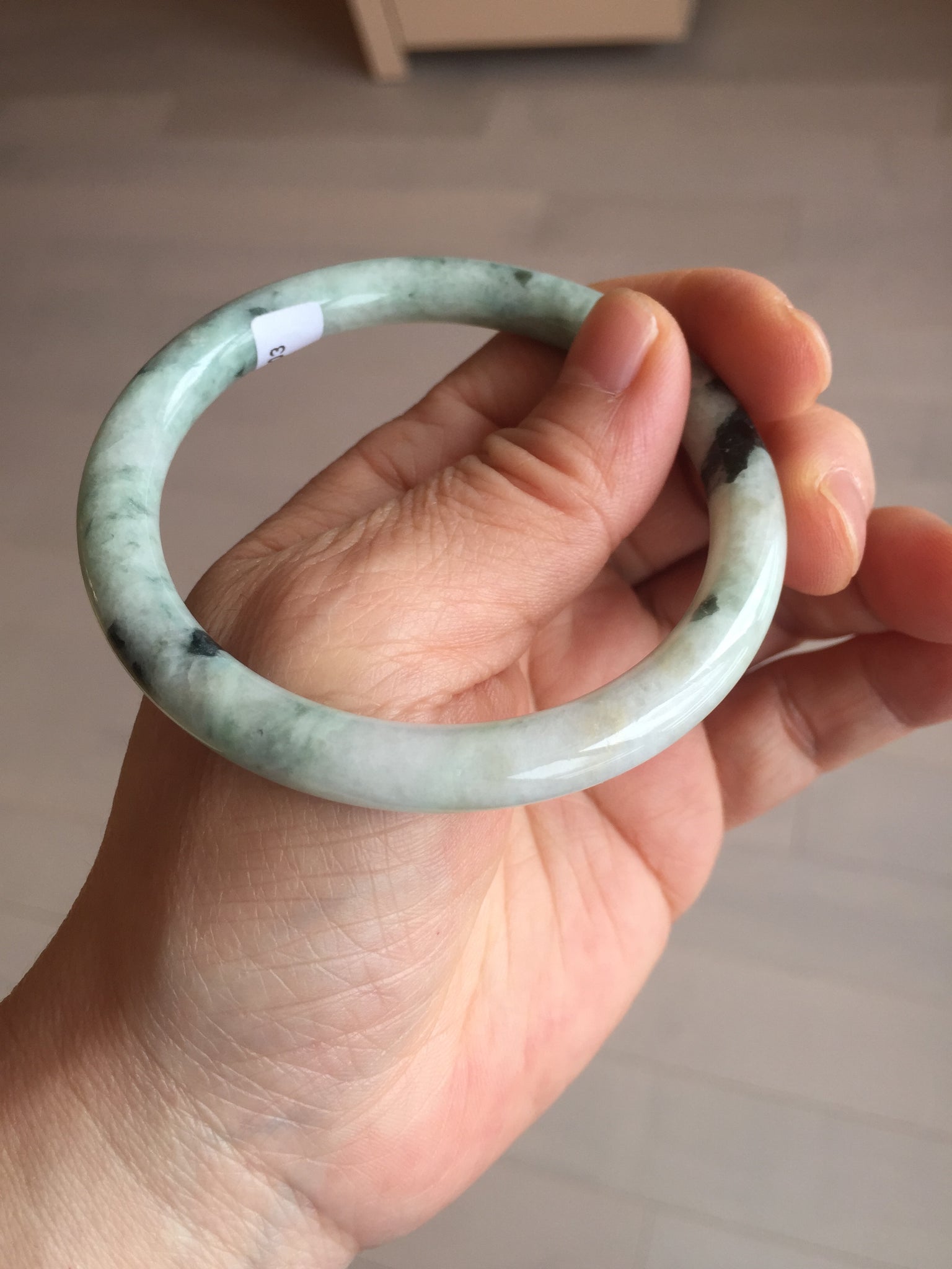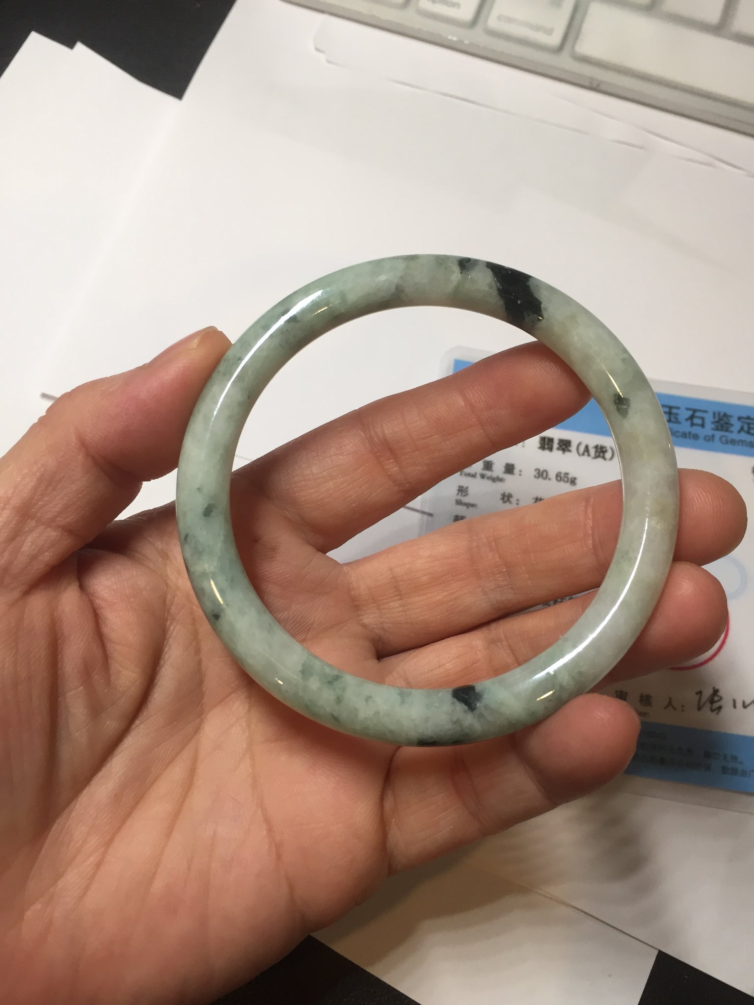 One U shape crack. Some dark green rough surfaces may with surface fissures or mine pits. Some cotton lines. Not transparent.