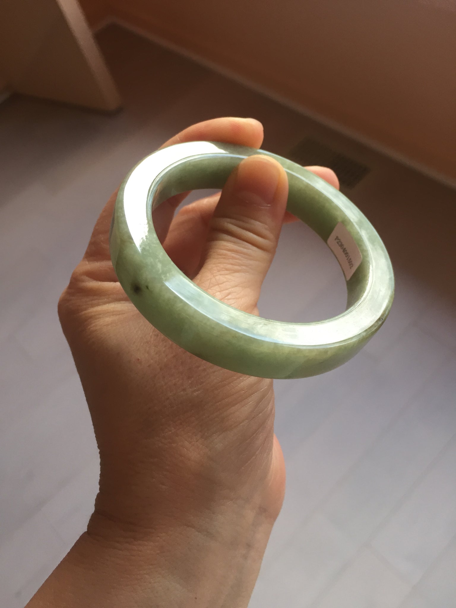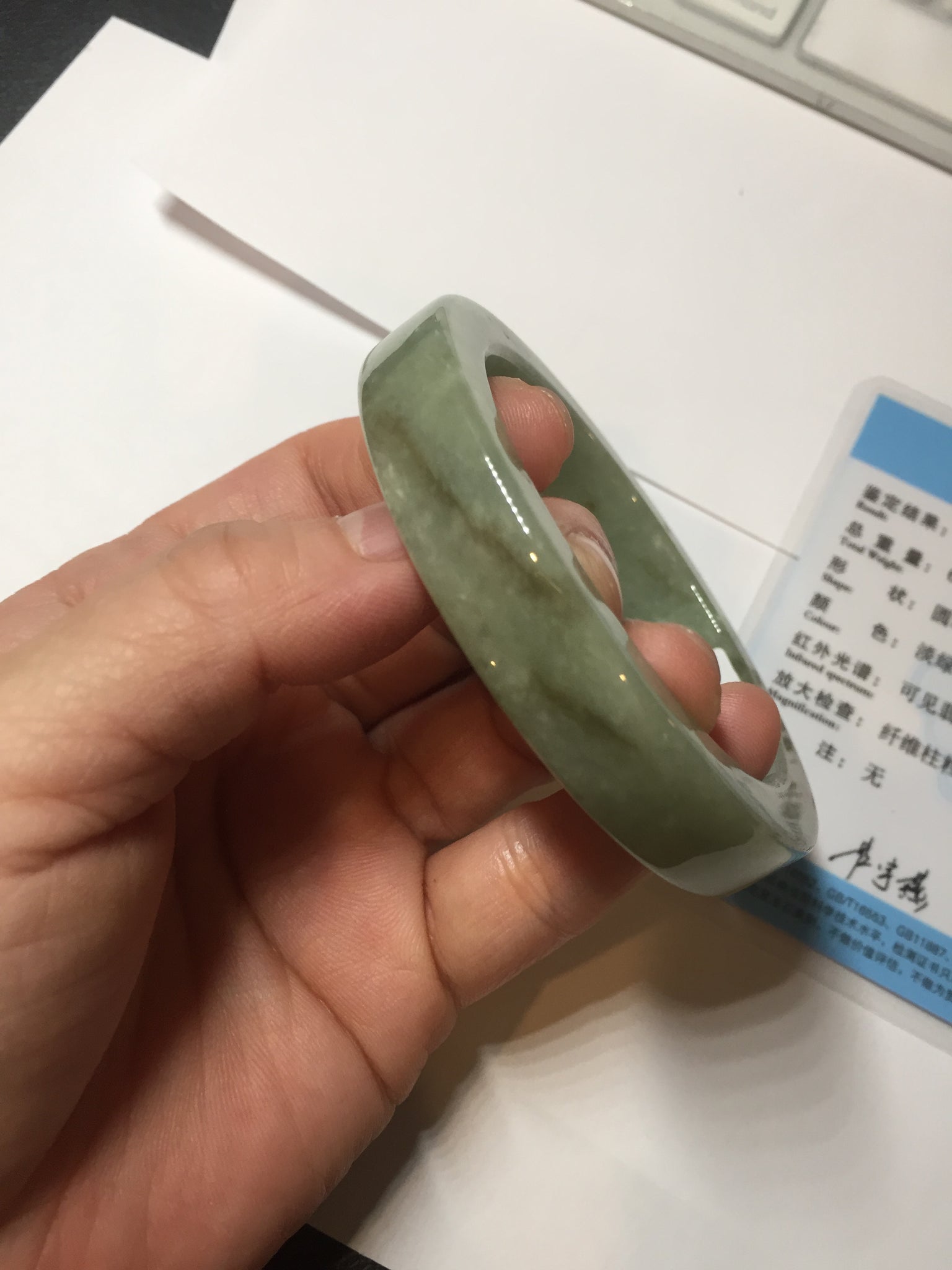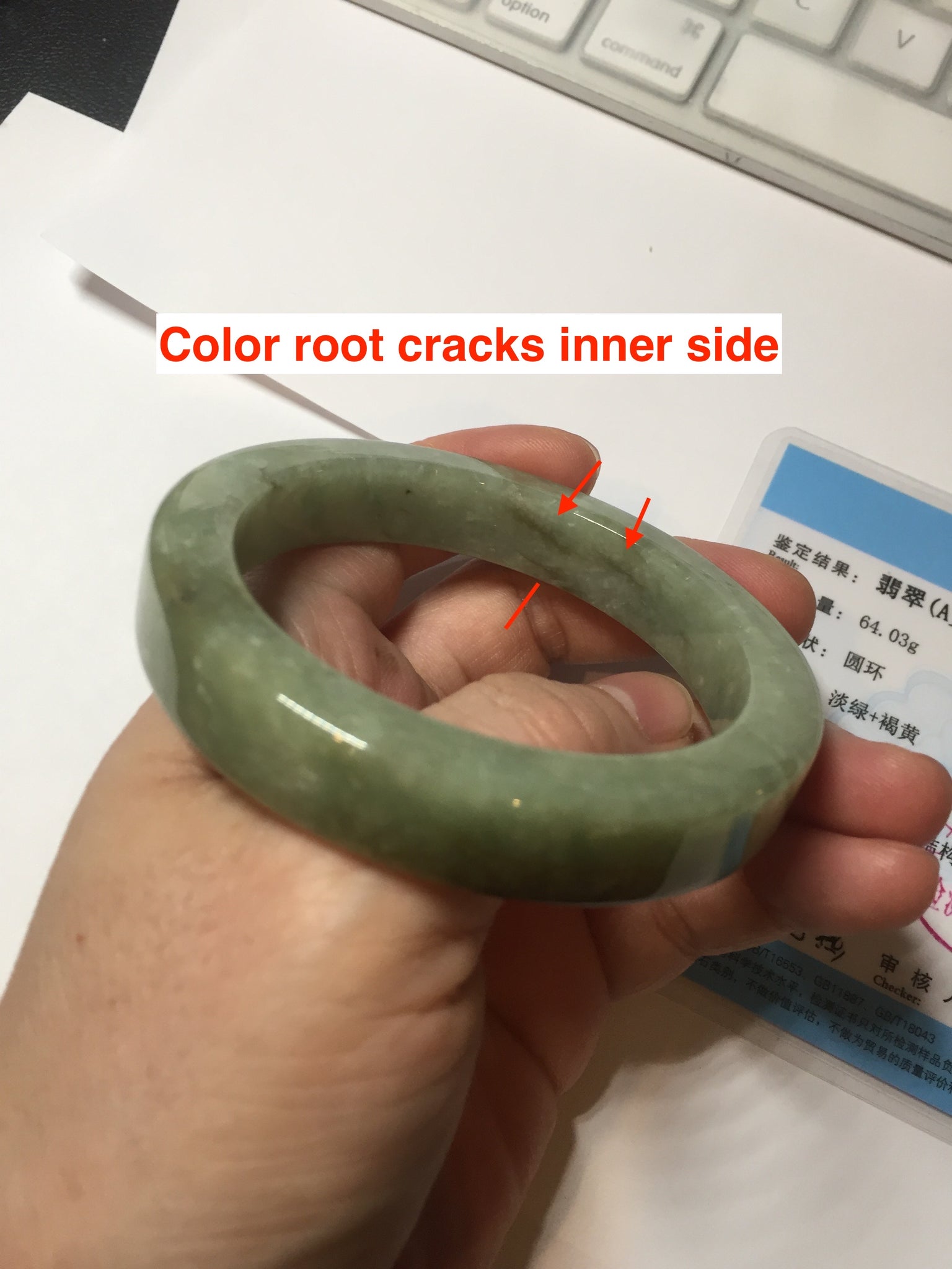 Some color root cracks. The bangle is solid(Guaranteed). Black spots. One brown area. Cotton lines and spots.