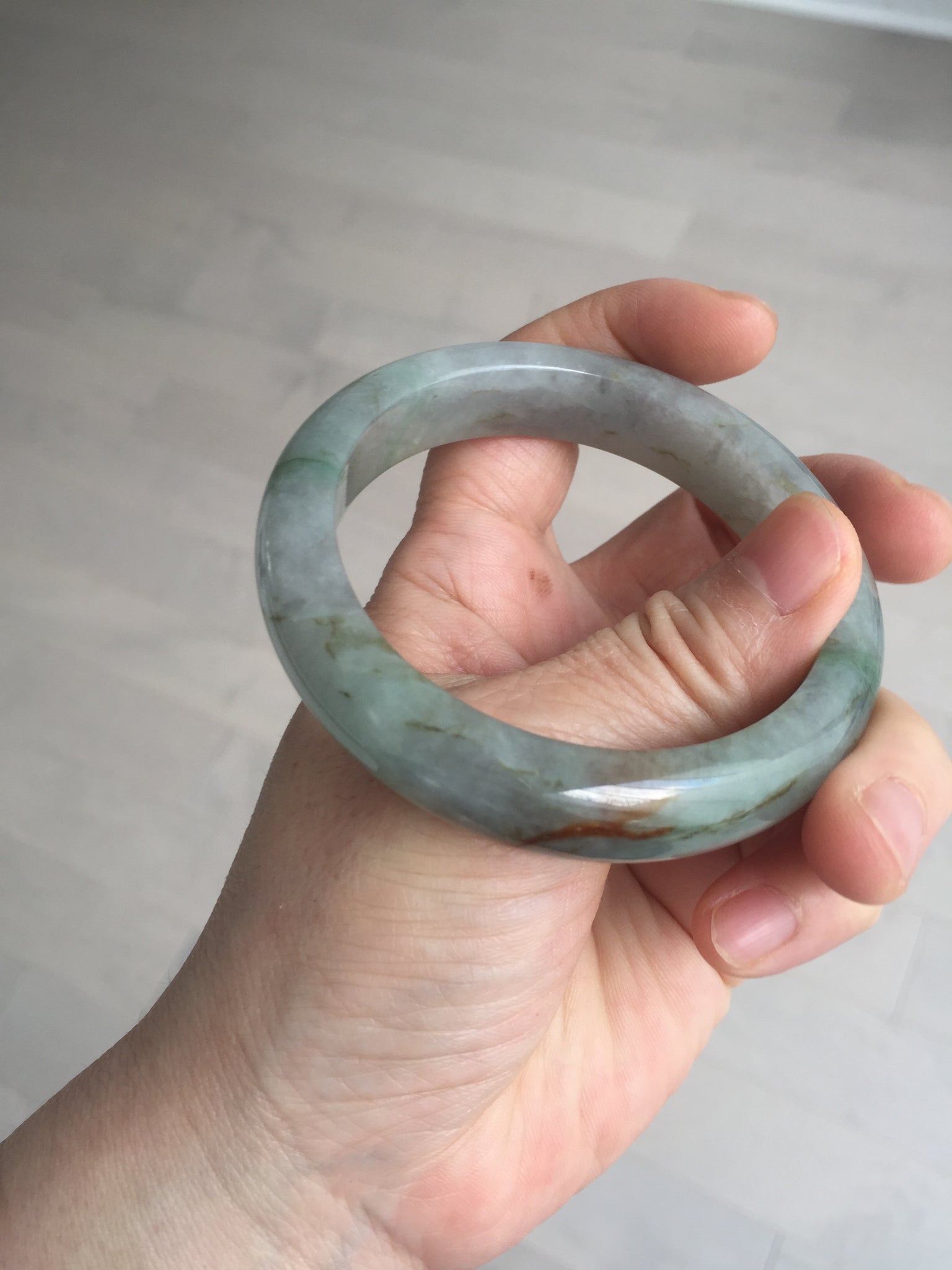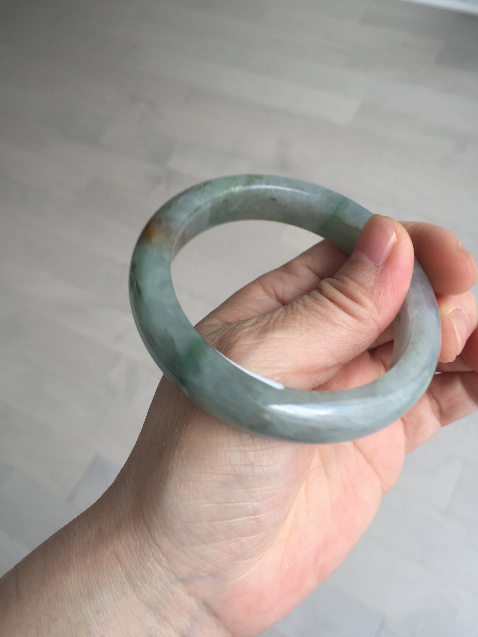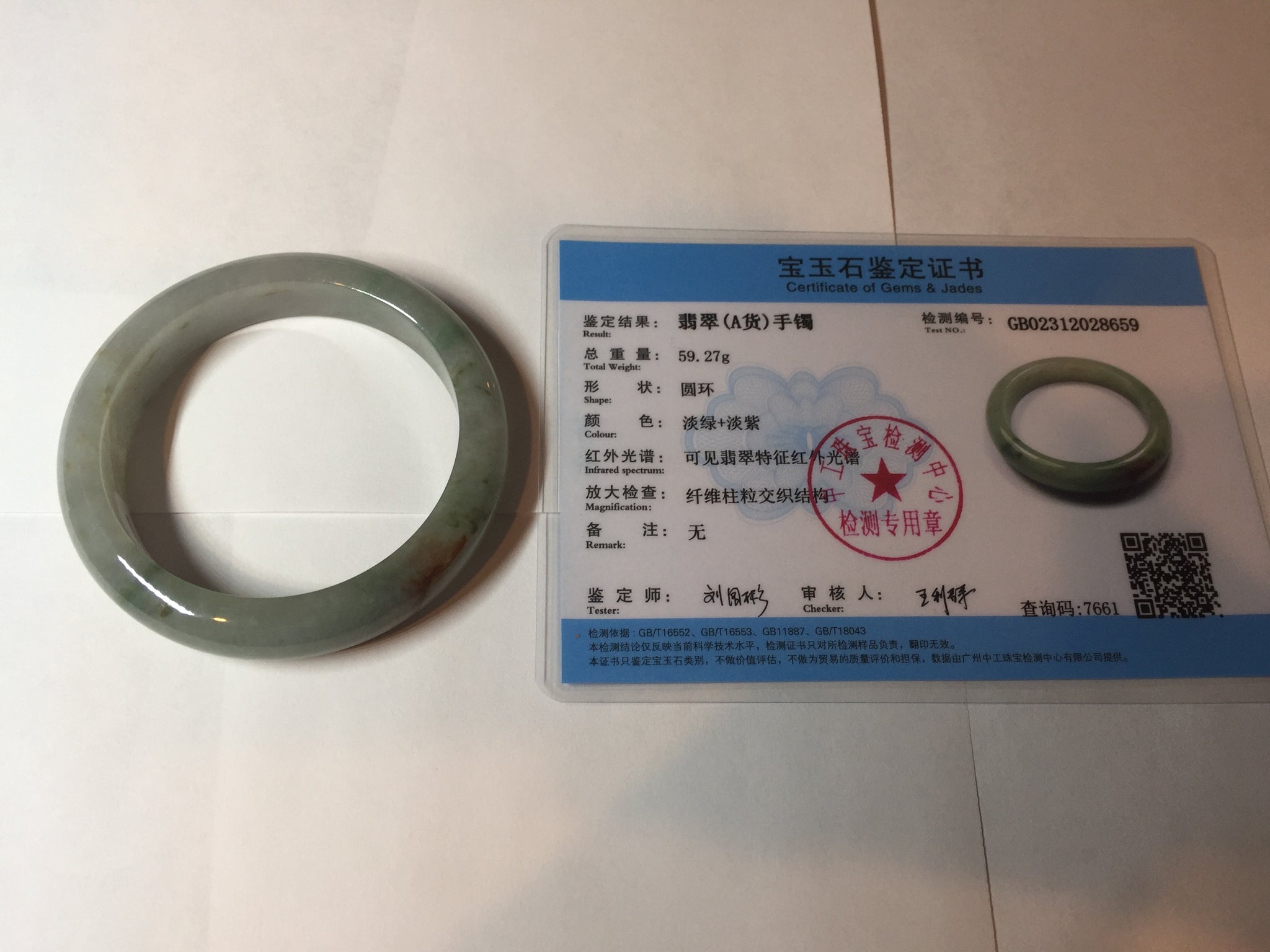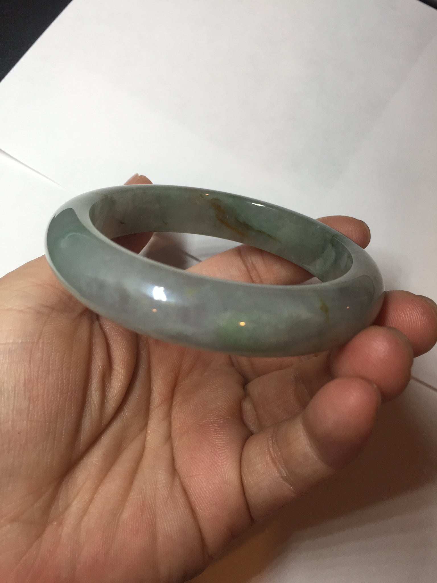 Imperfections: Some color root cracks or notches that may have not been shown in the photos. Some hairlines and color roots, cotton spots, lines, and areas. The surface texture of red jadeite is not entirely smooth. The purple is super light, lighter than in the photos. It has some gray color.