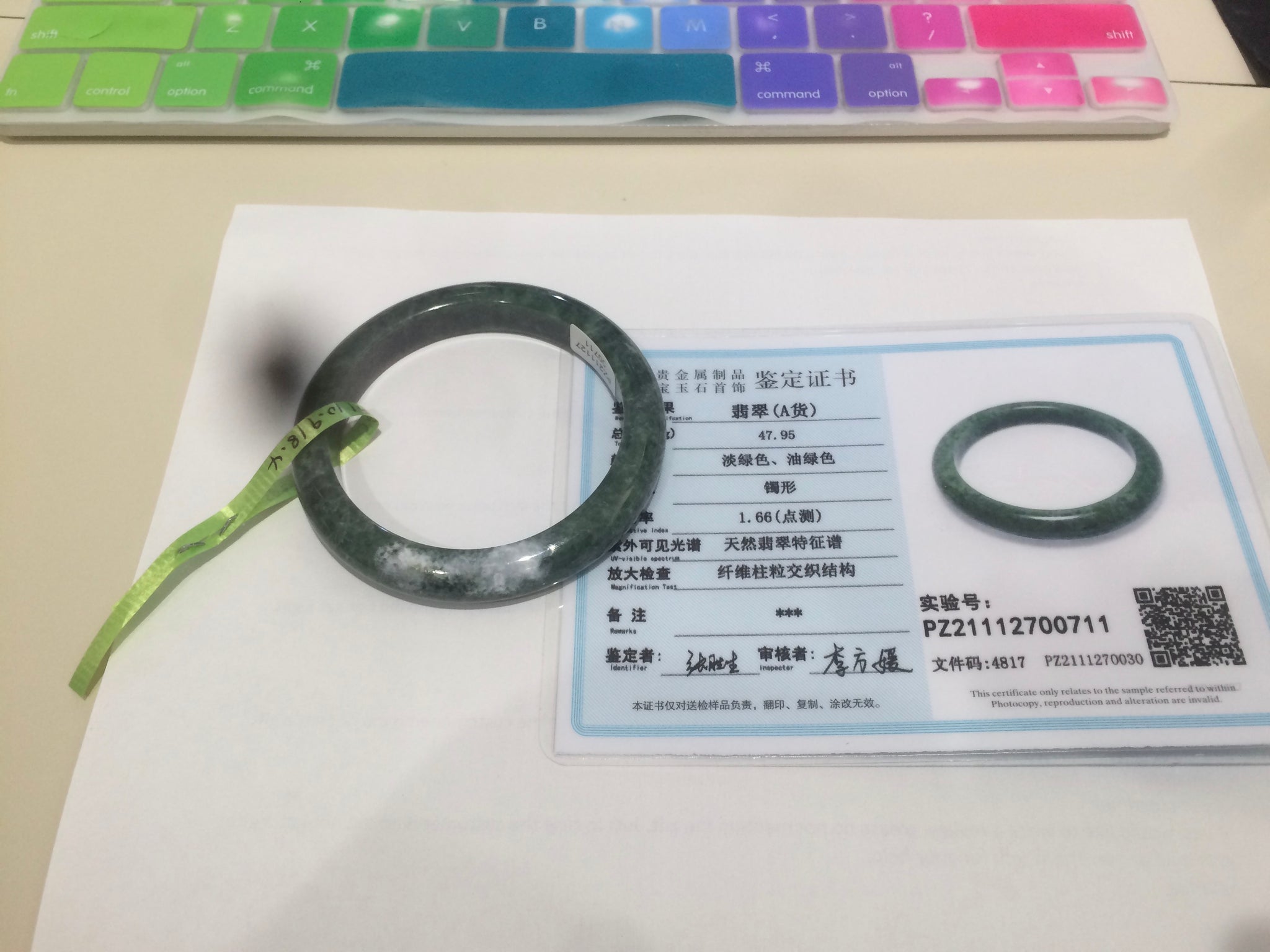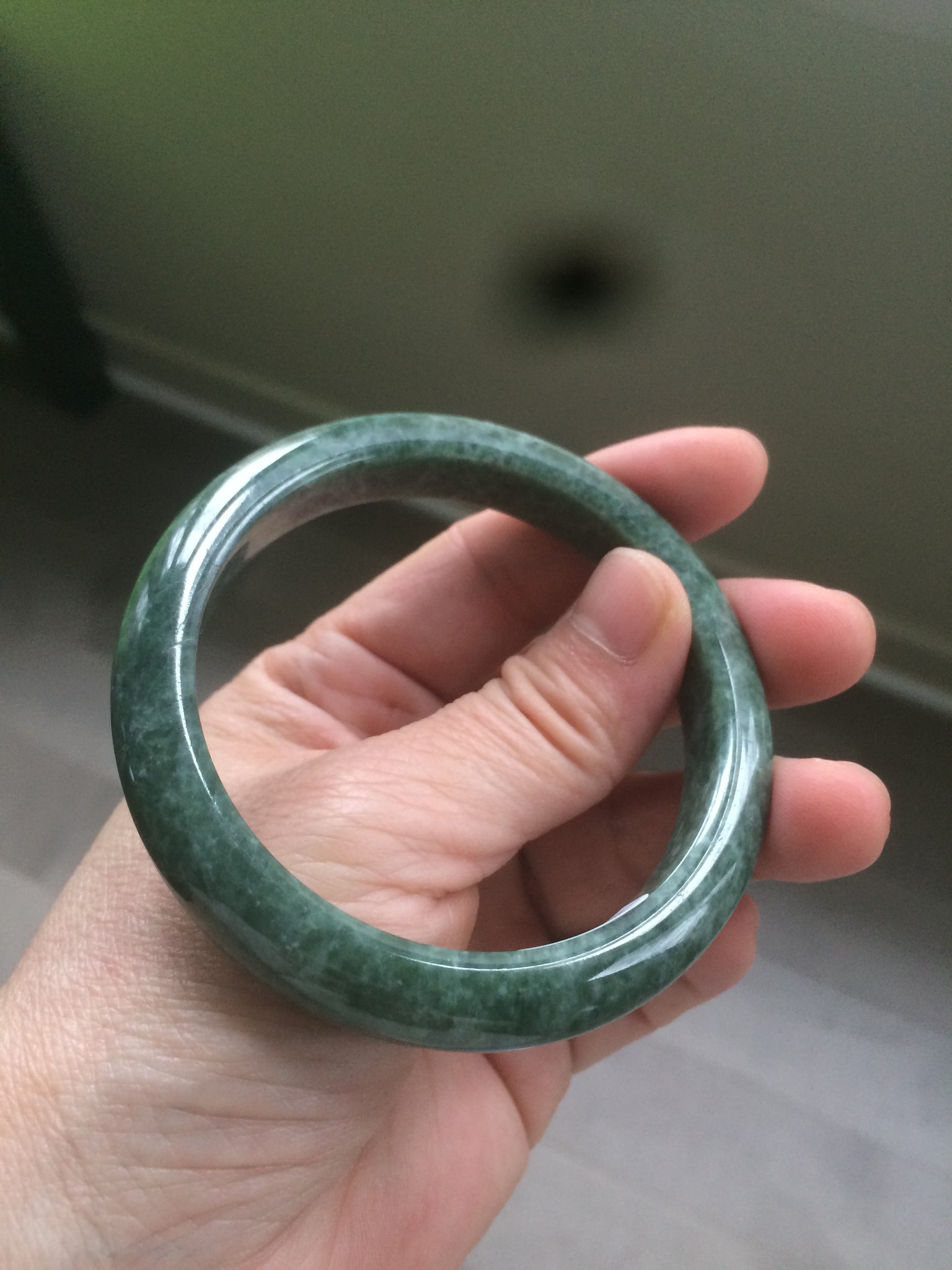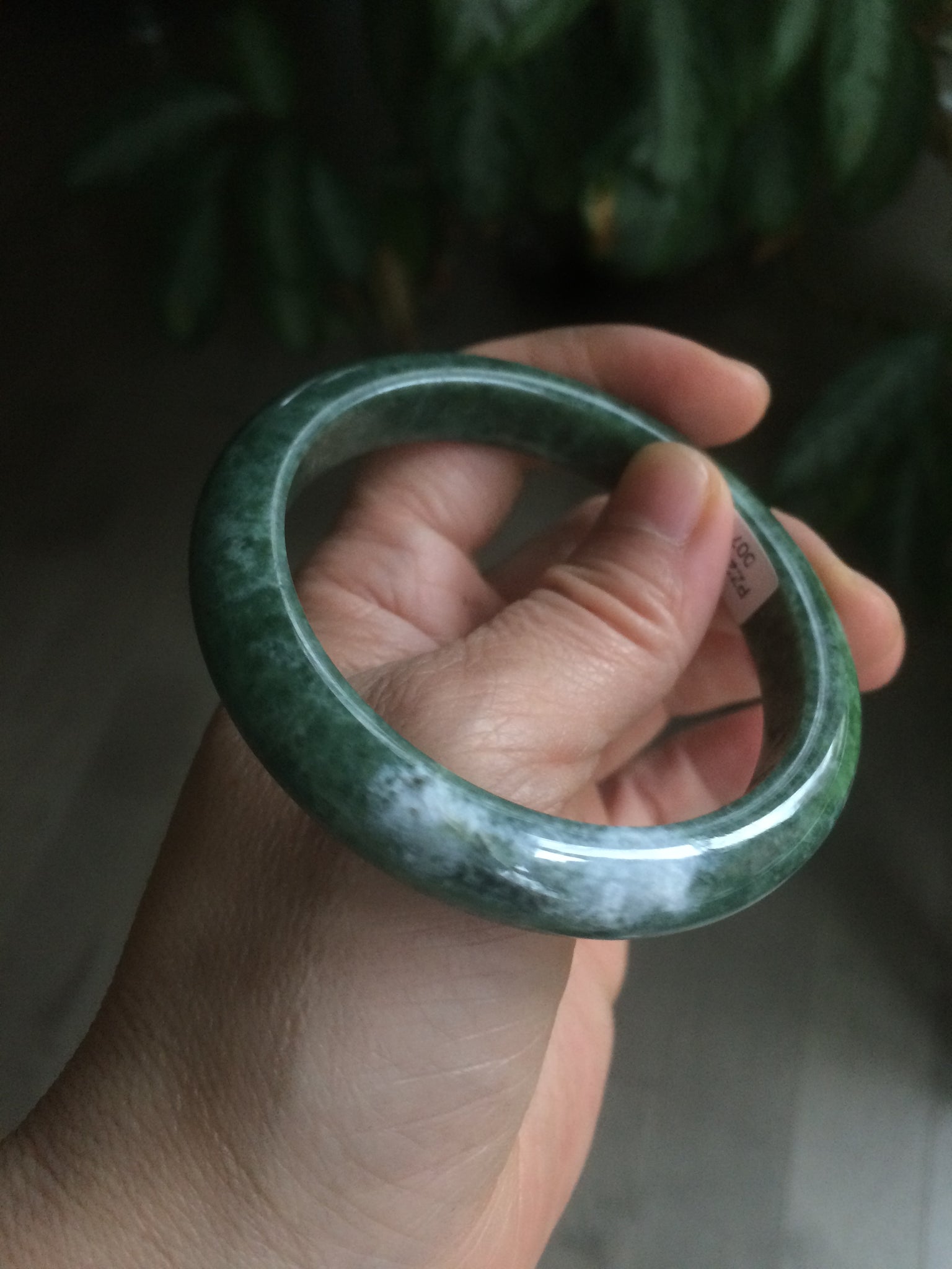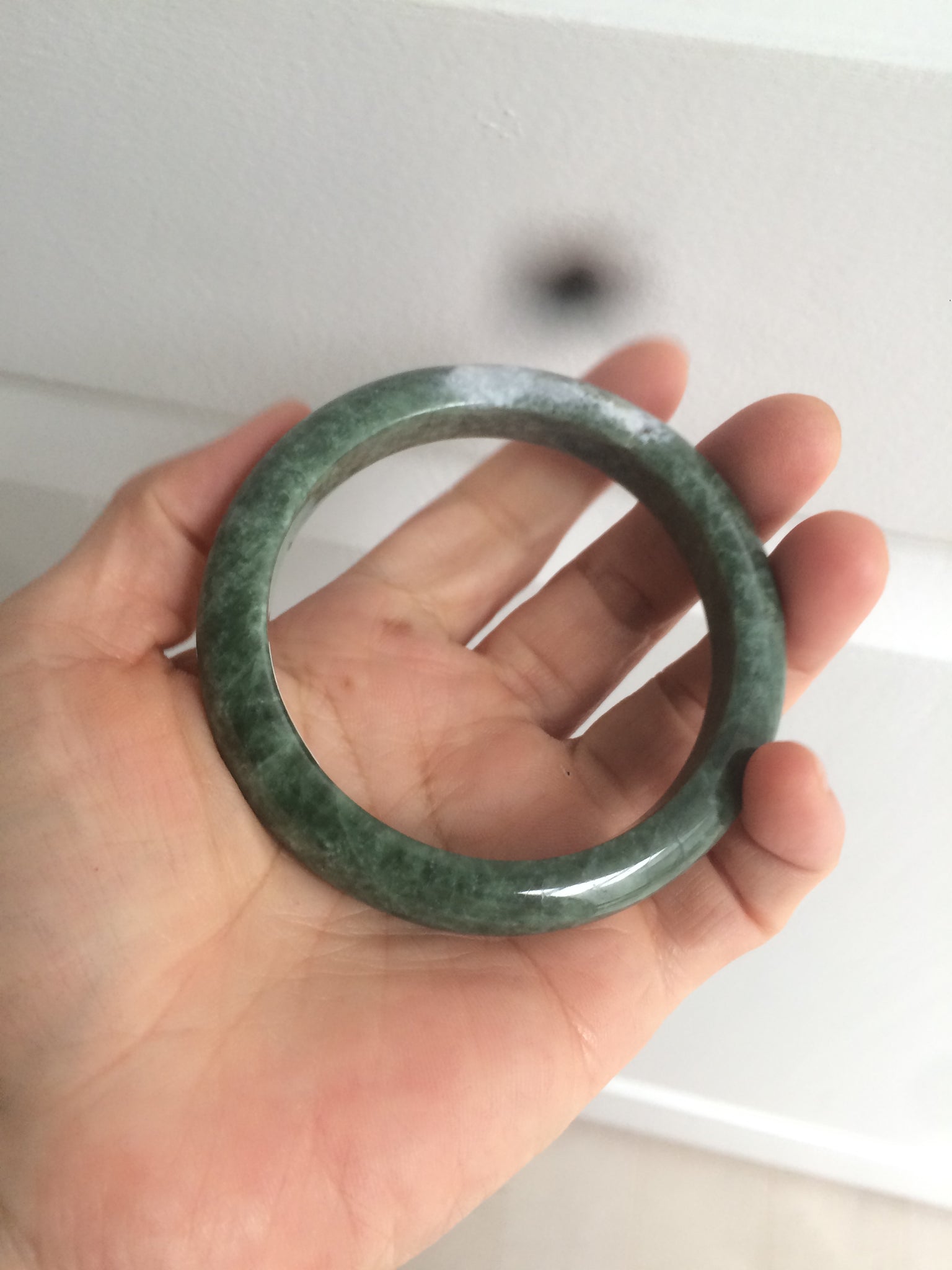 菠菜绿翡翠手镯,白根纹多,不影响牢固,敲击高清音。