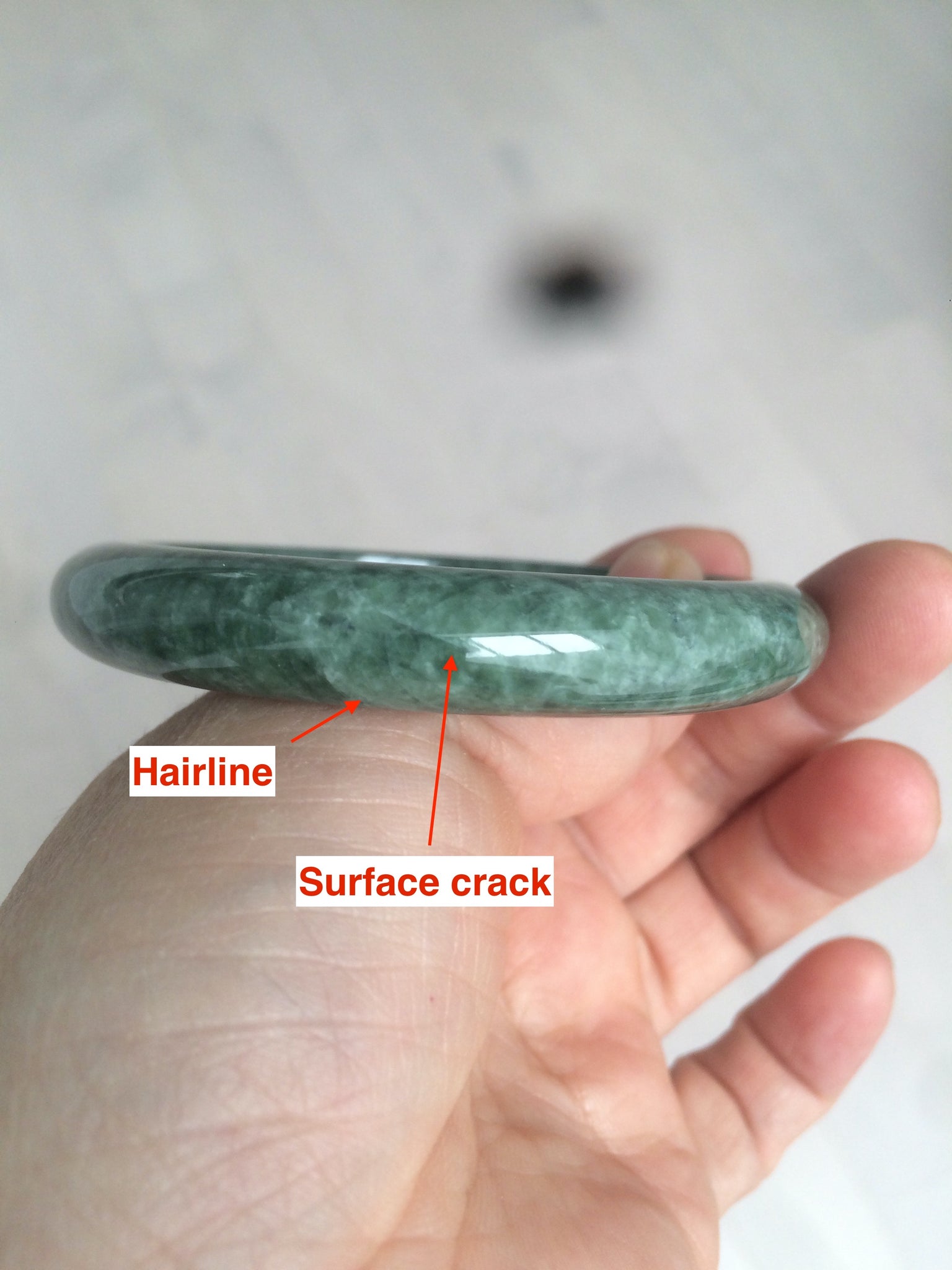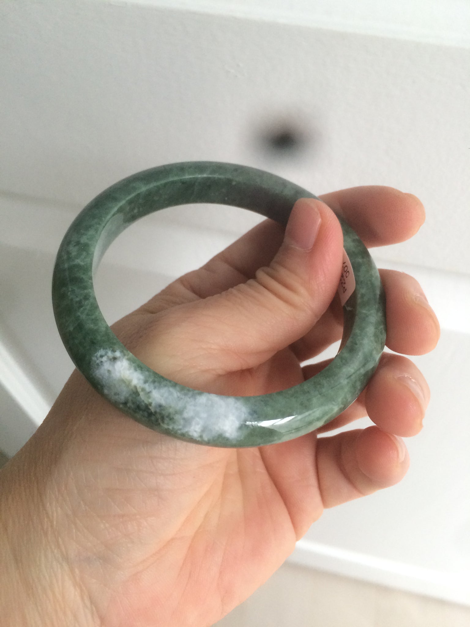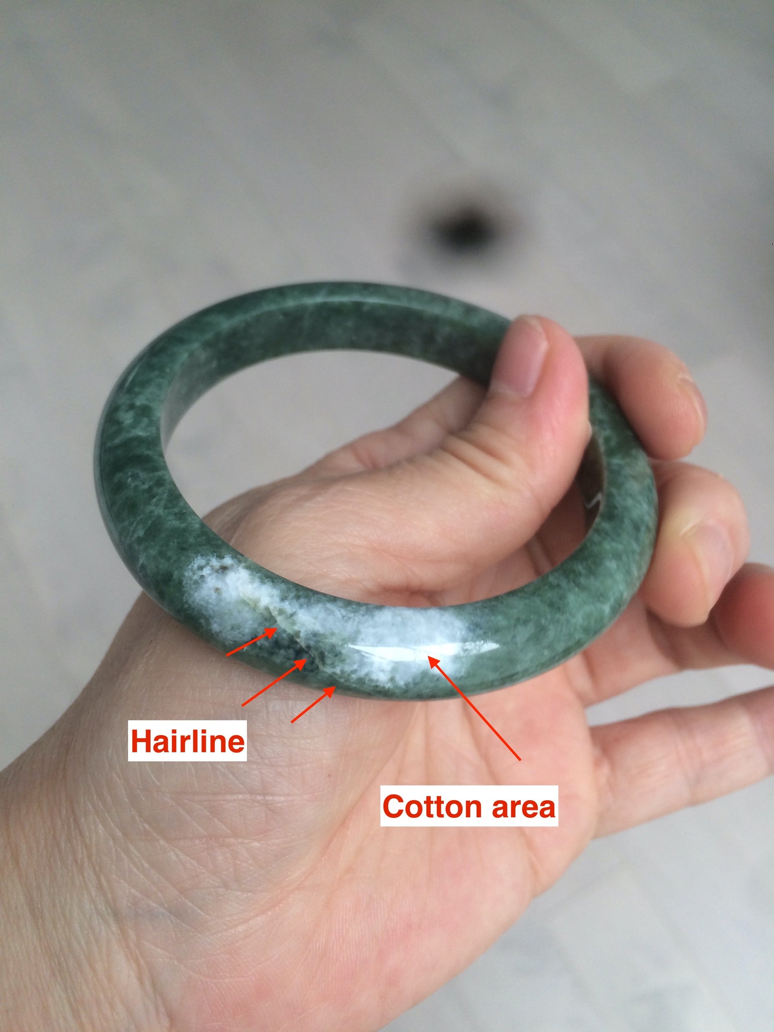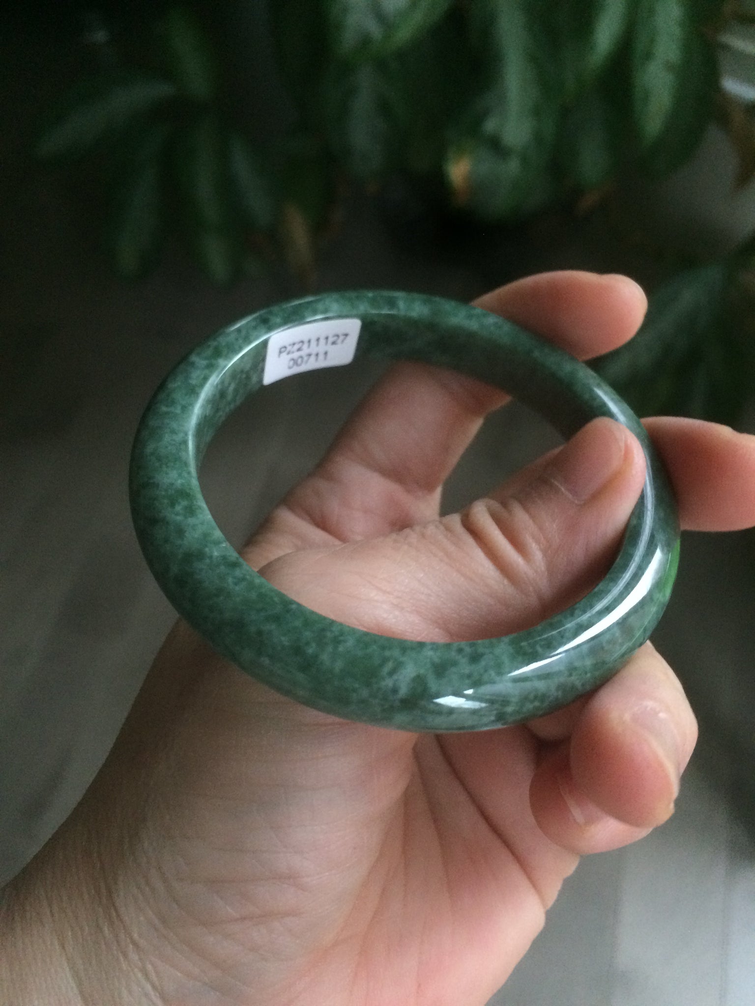 菠菜绿翡翠手镯,白根纹多,不影响牢固,敲击高清音。