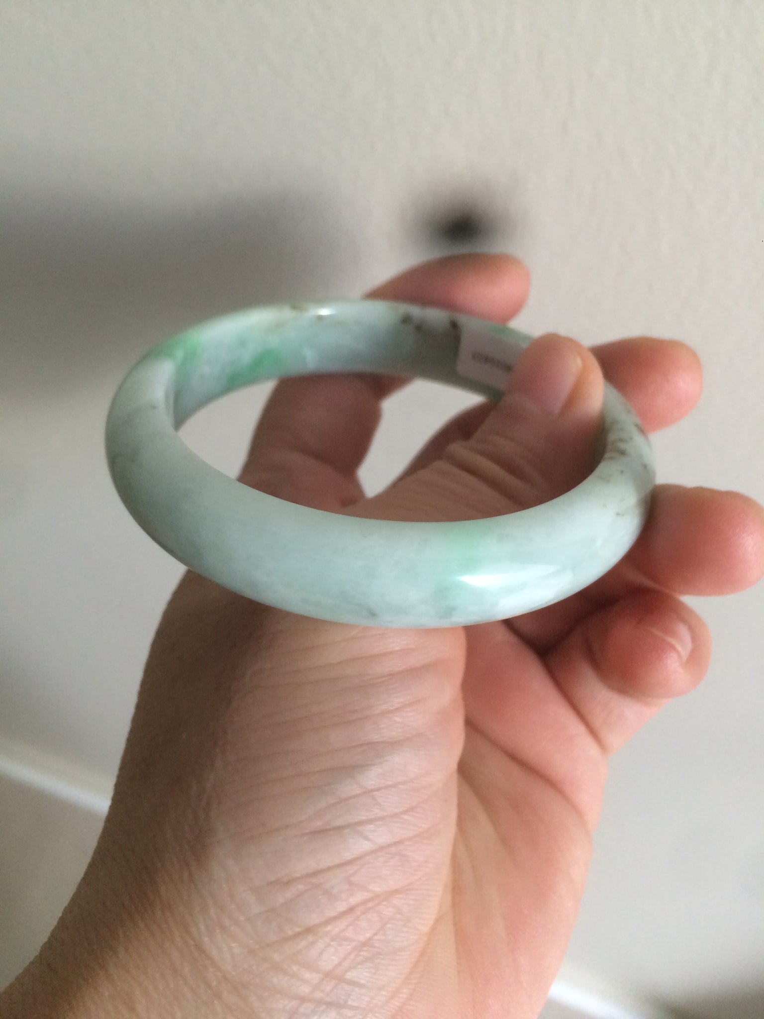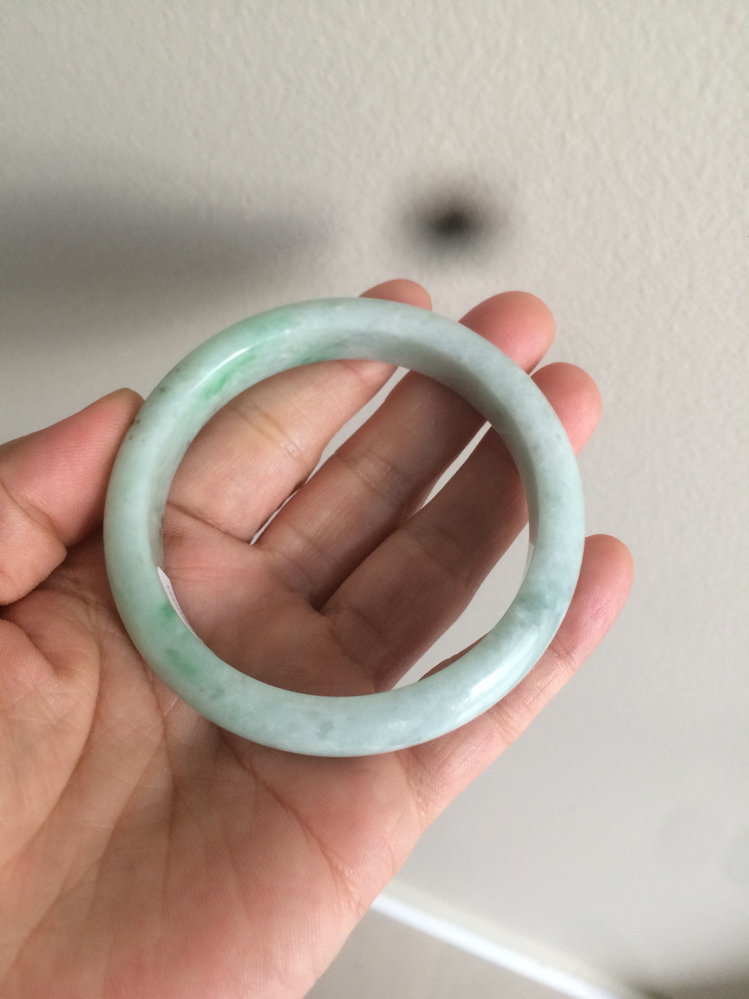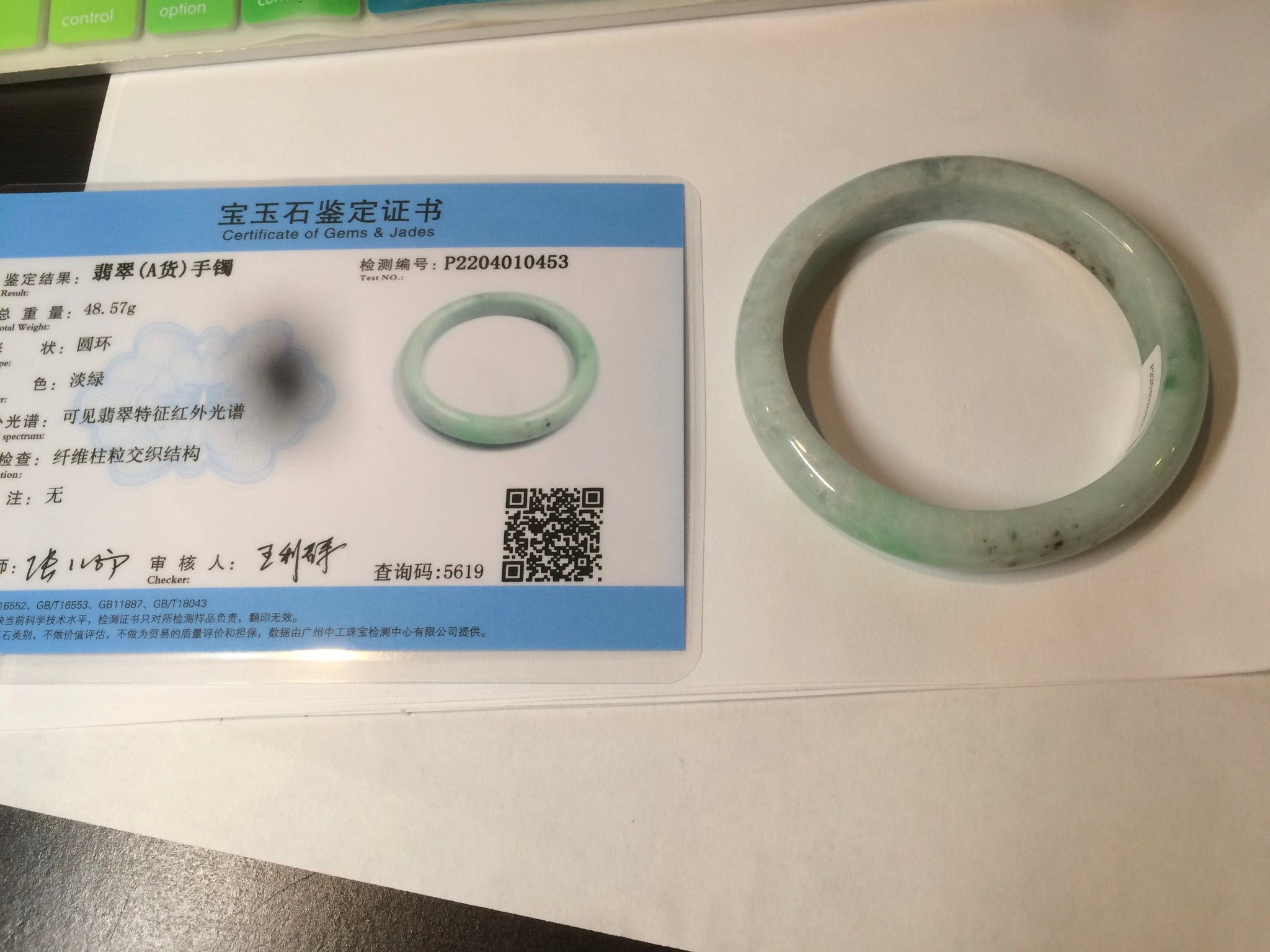 56.6mm Certified Type A 100% Natural sunny green Jadeite Jade bangle U97-0543