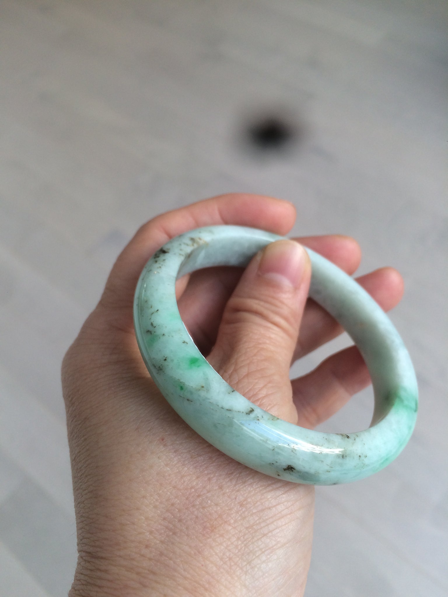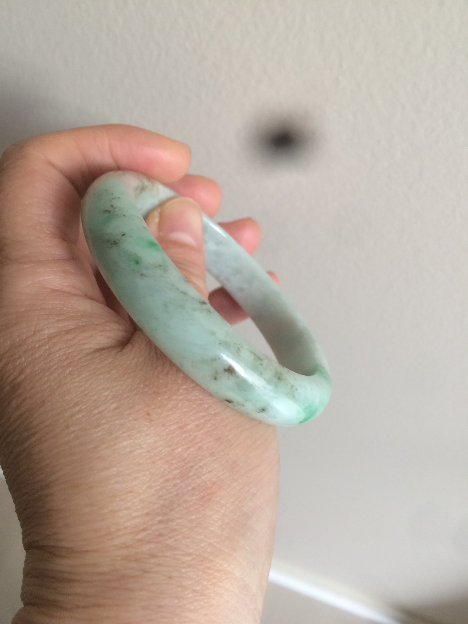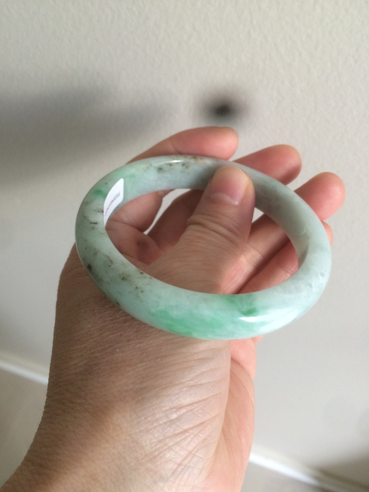 56.6mm Certified Type A 100% Natural sunny green Jadeite Jade bangle U97-0543
