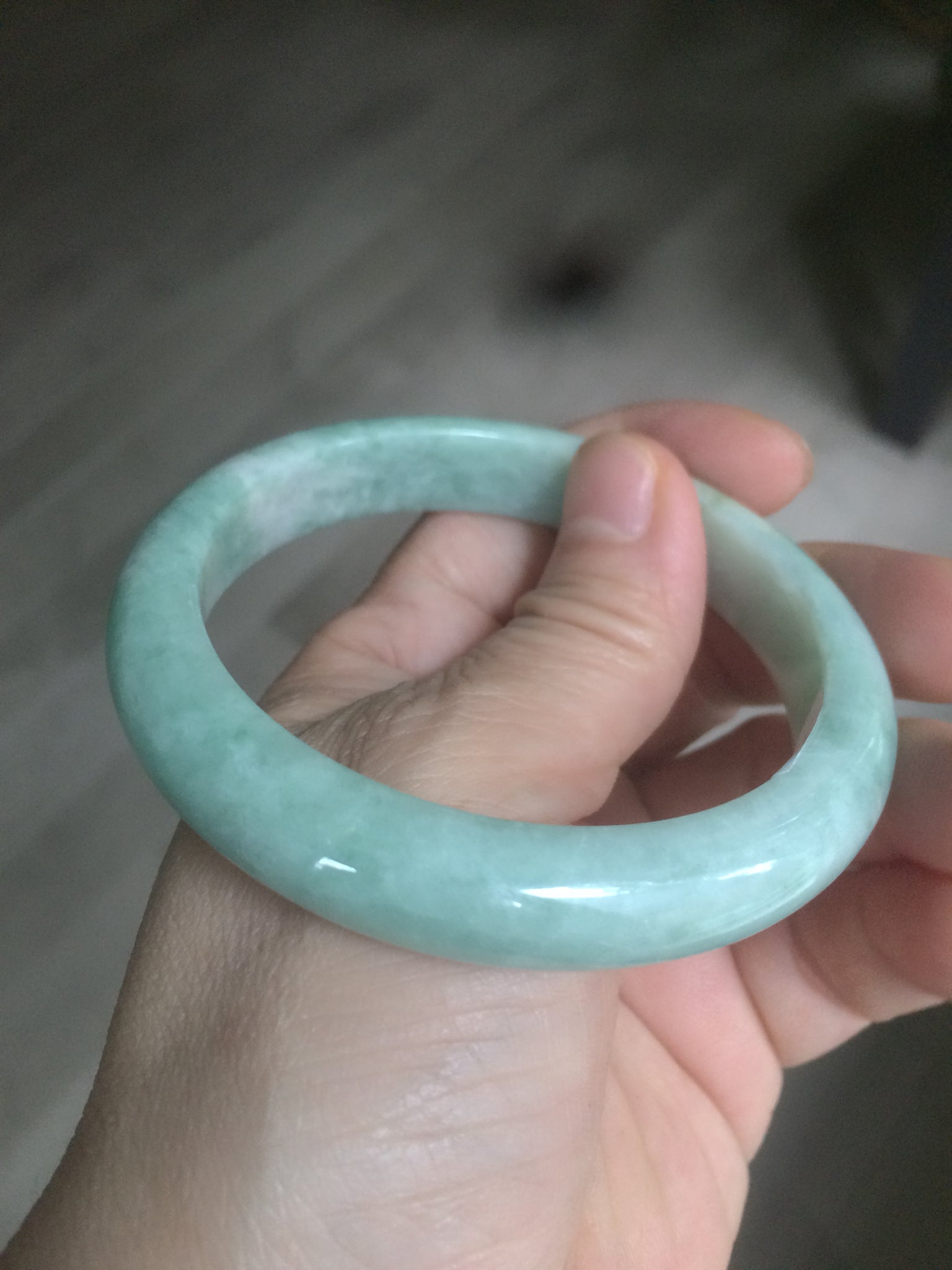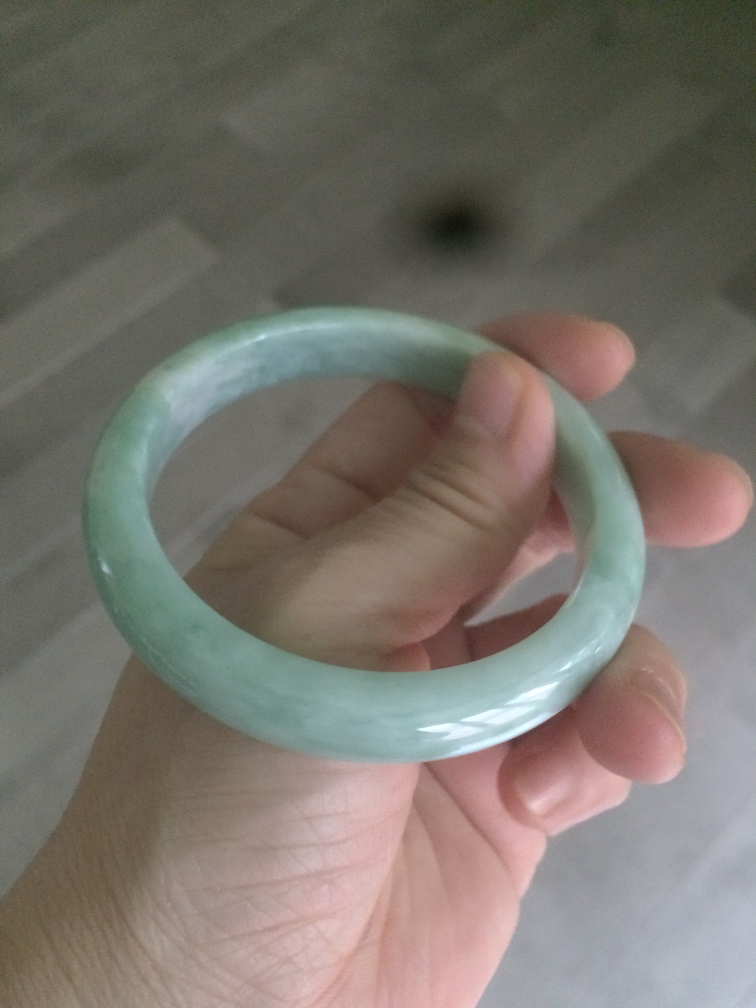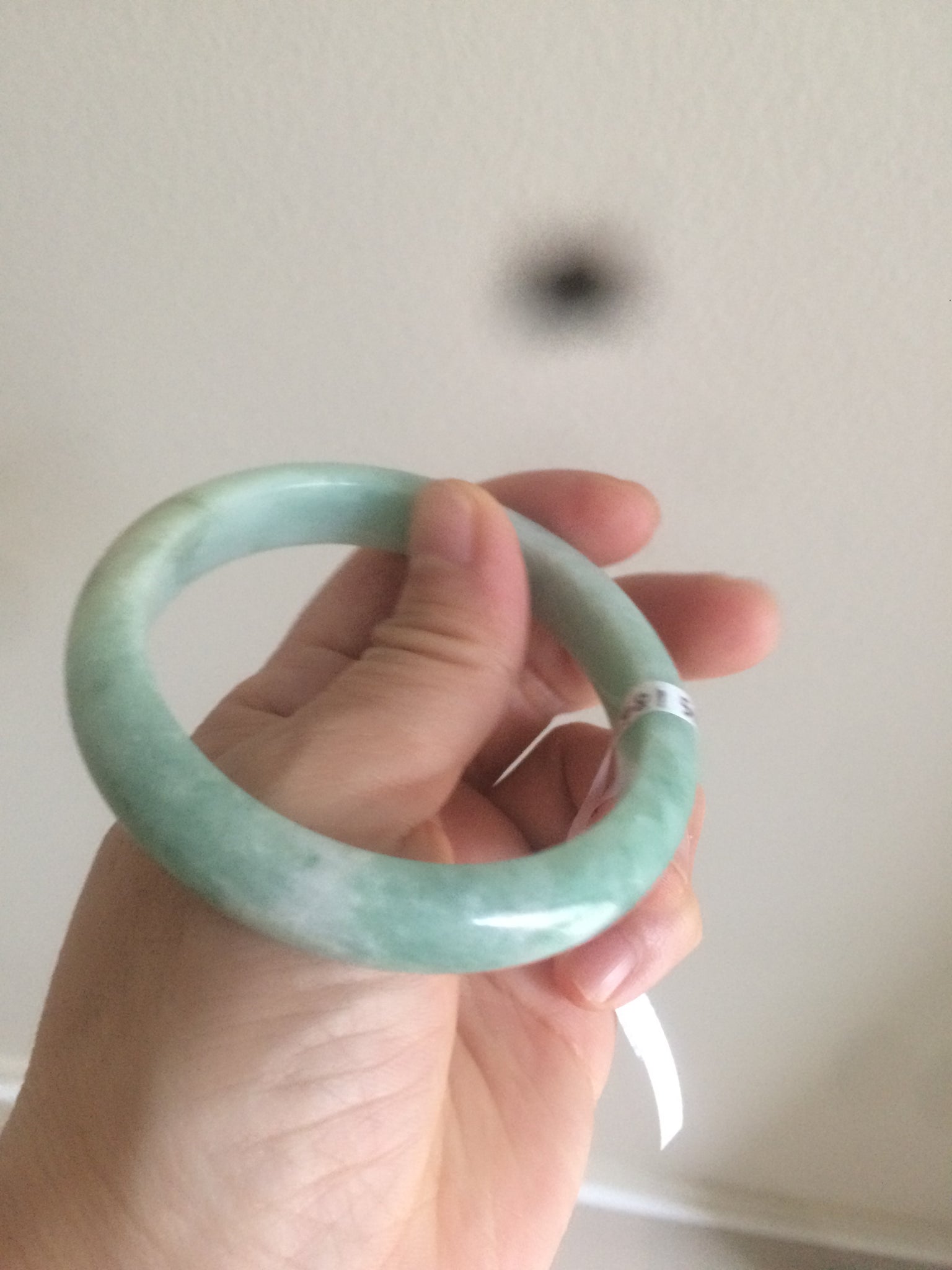 Some cracks. Most of them are tiny. One is almost around the bangle. Some rough surfaces. Some cotton spots and cotton areas.