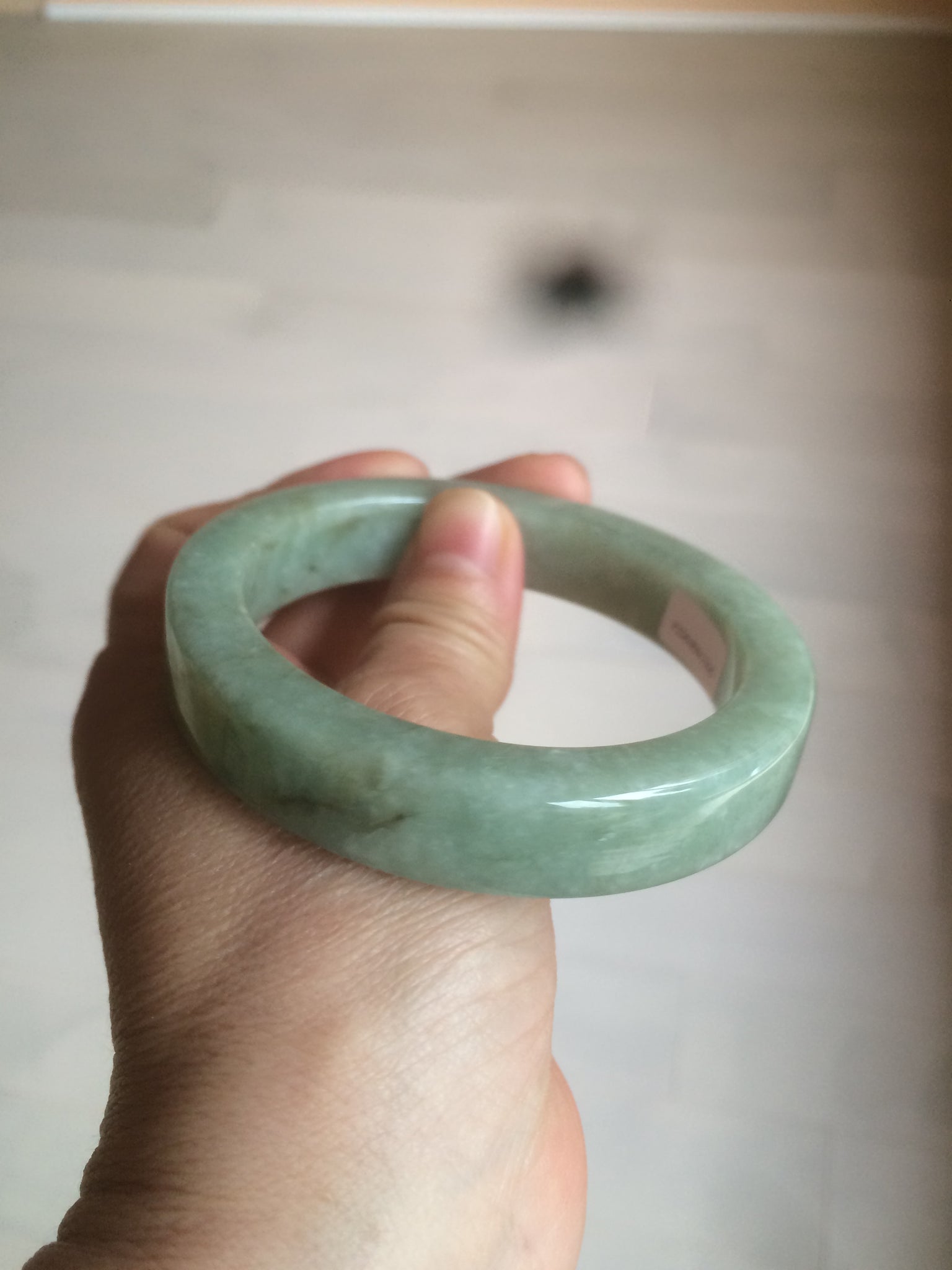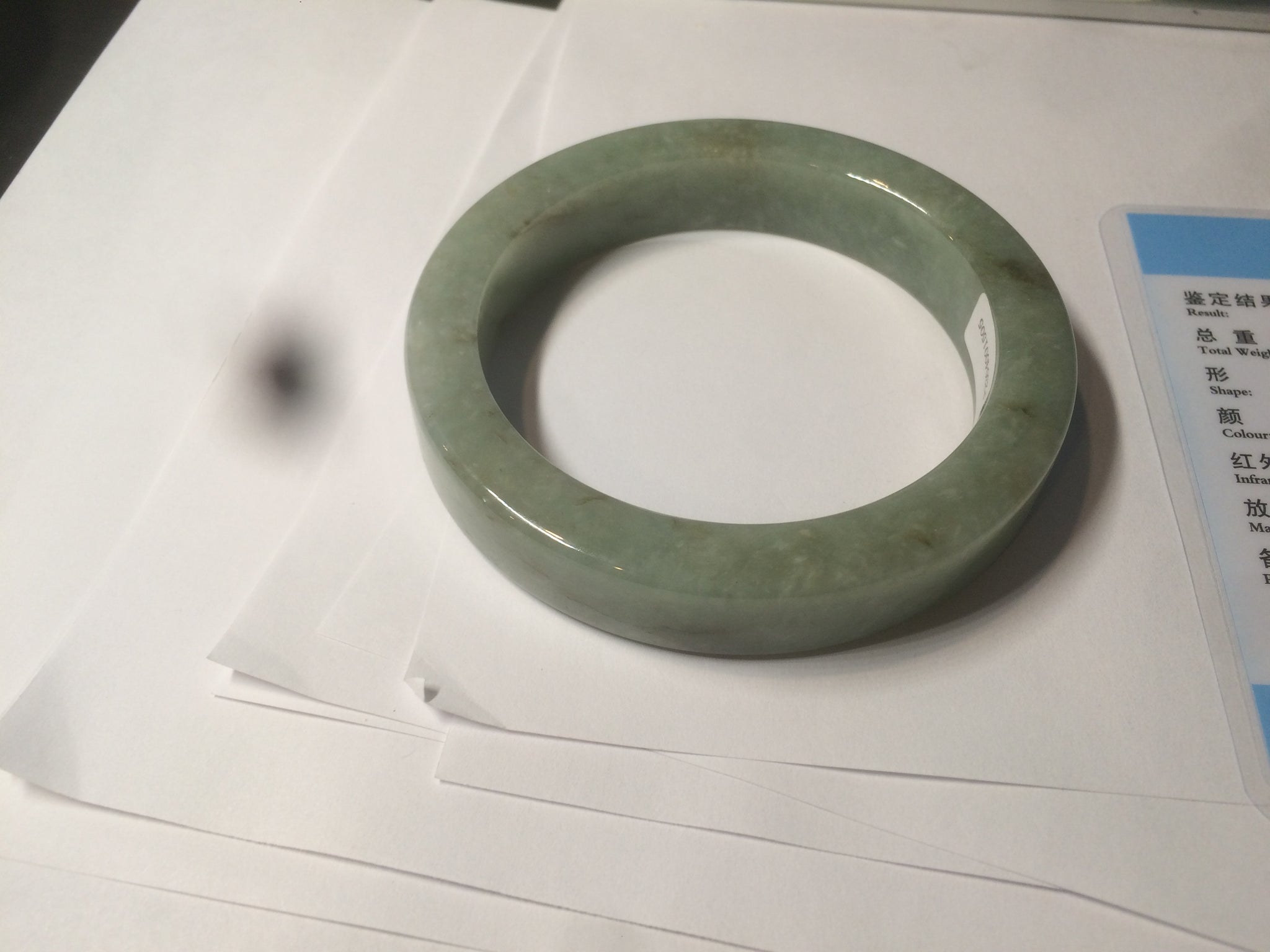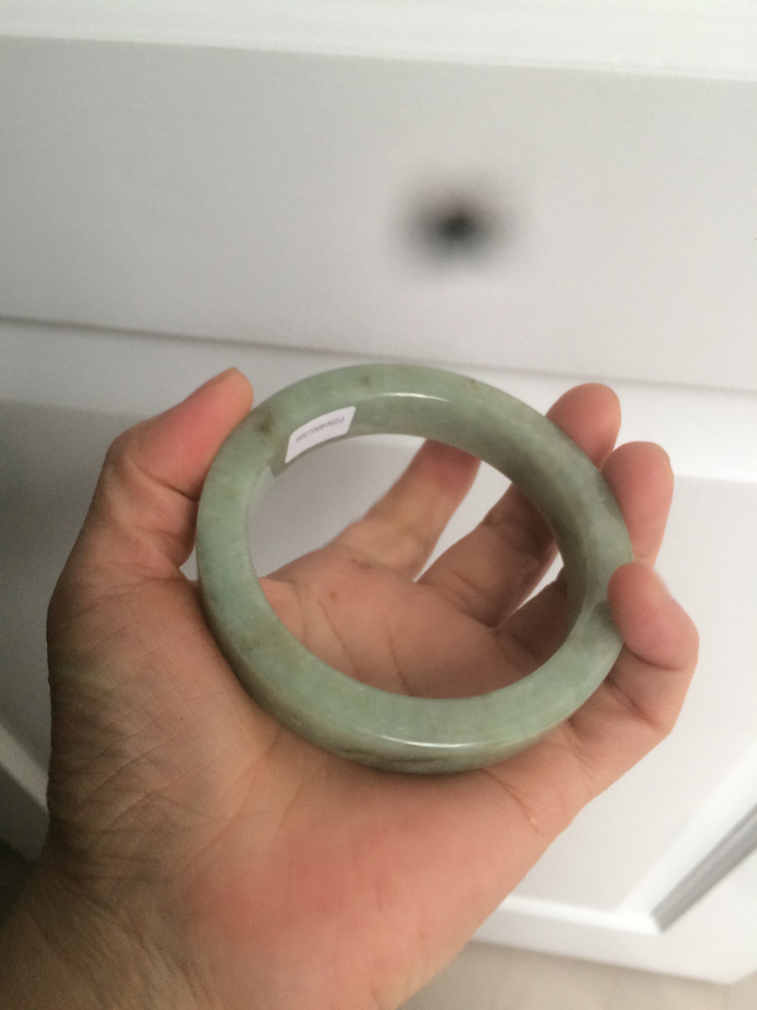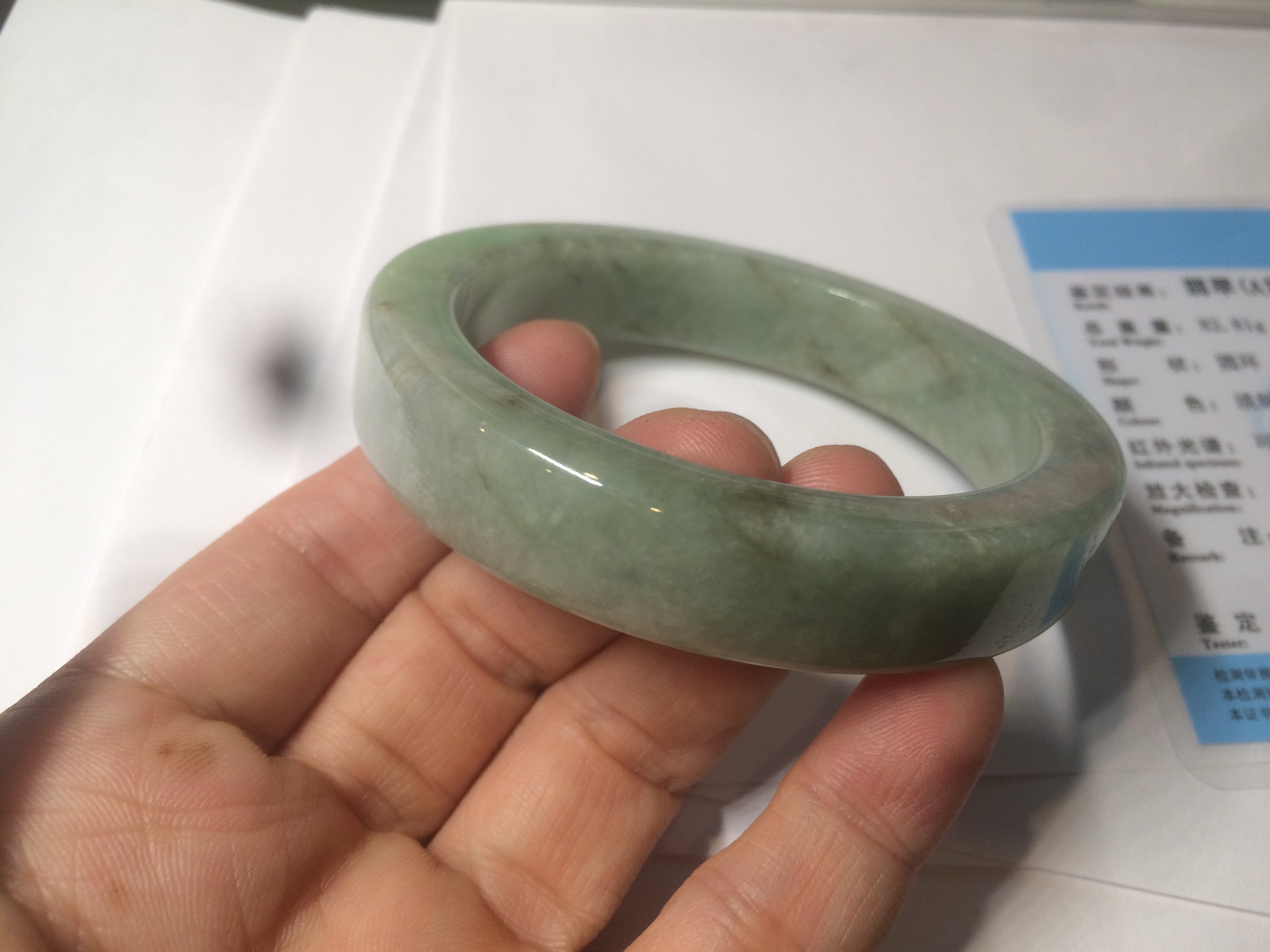 Some color root cracks. The bangle is solid(Guaranteed). Black spots. One brown area. Cotton lines and spots.