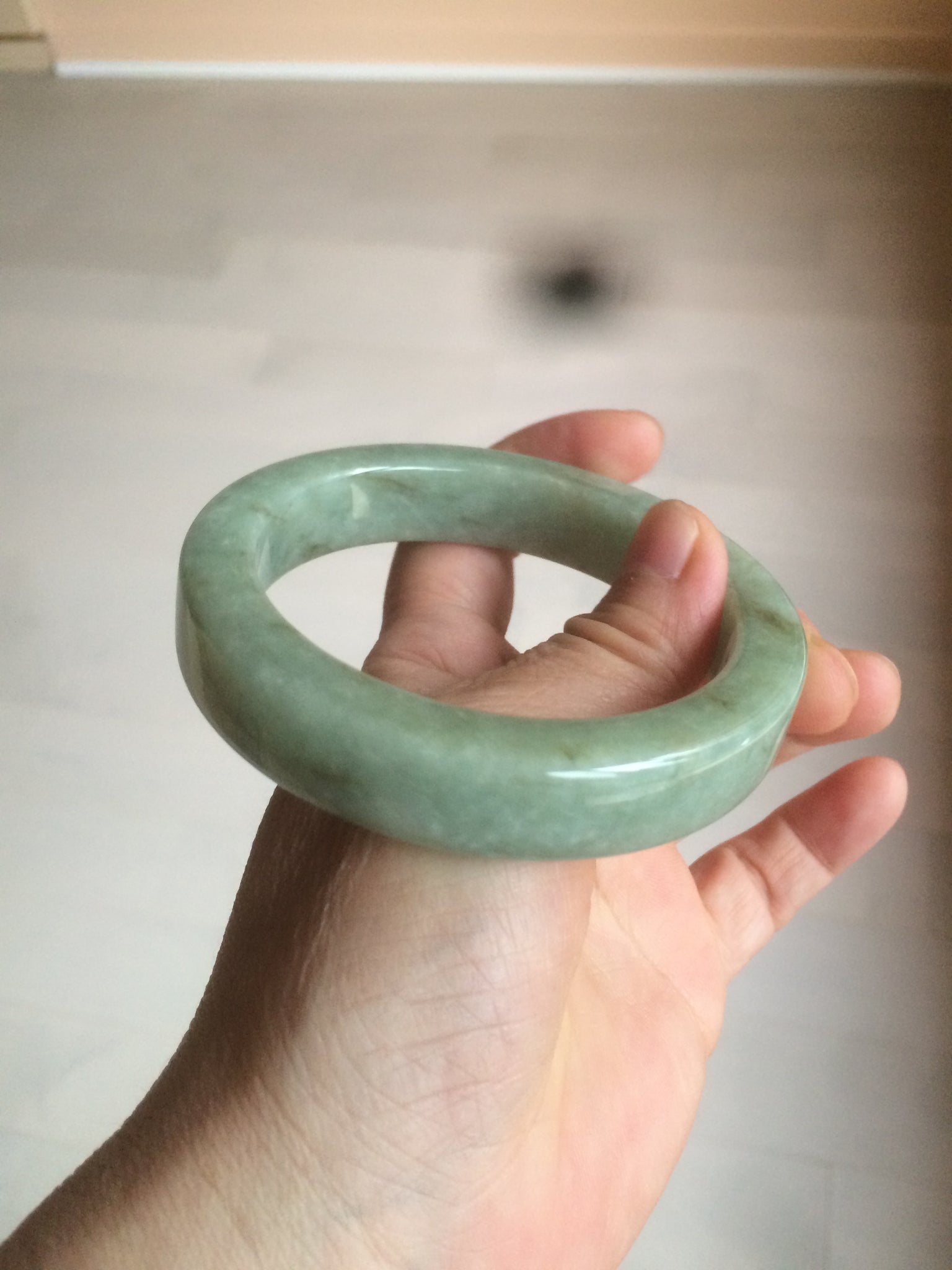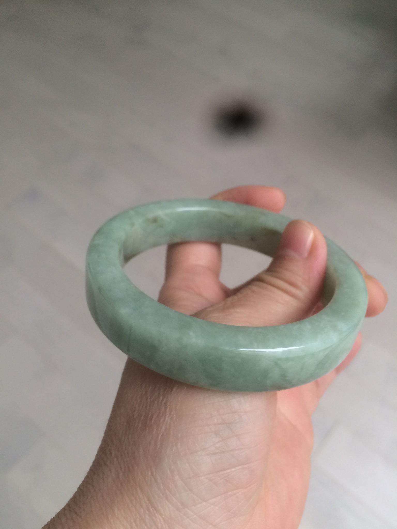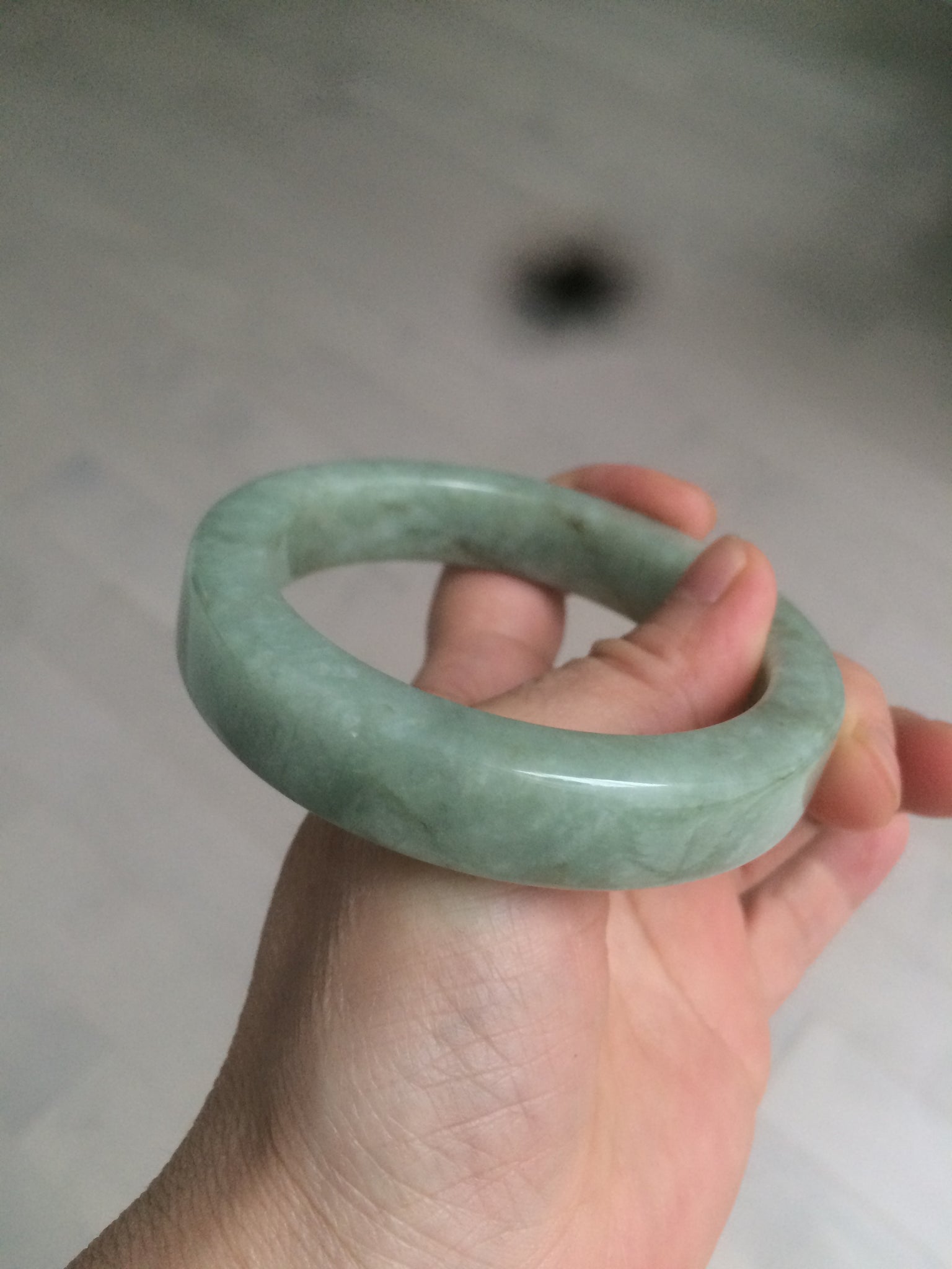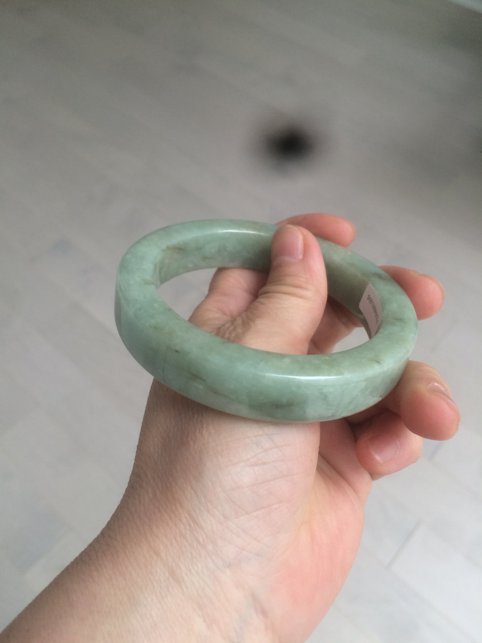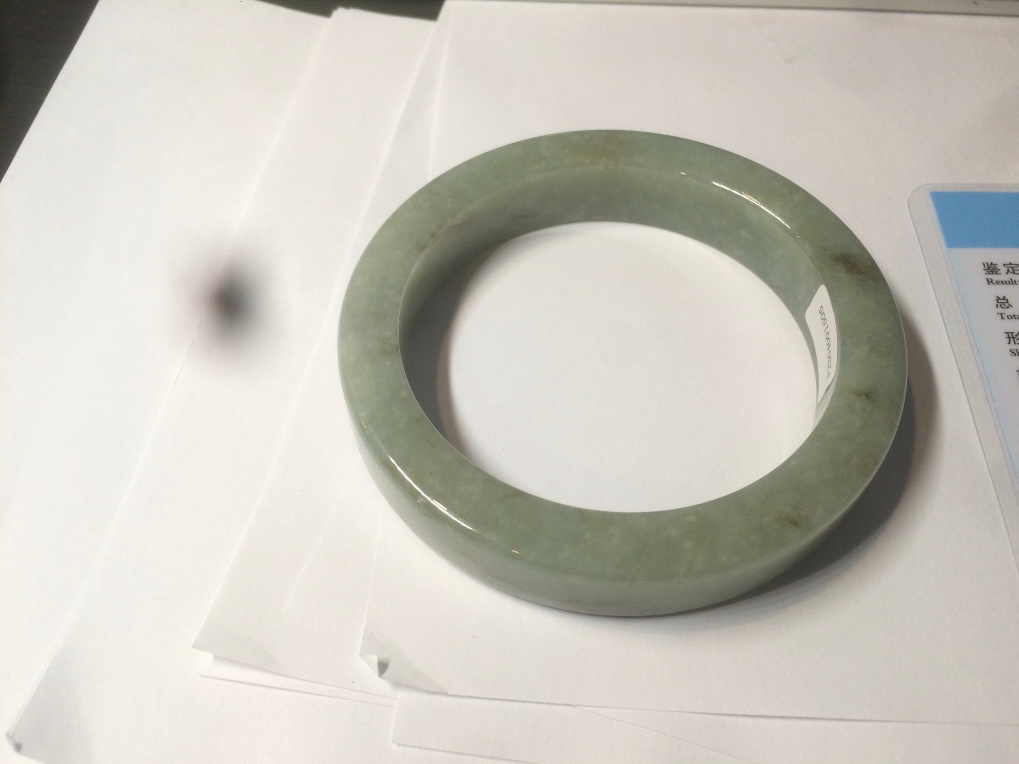 Some color root cracks. The bangle is solid(Guaranteed). Black spots. One brown area. Cotton lines and spots.