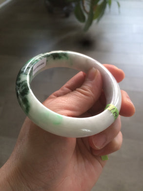 50mm Type A 100% Natural green/white with green floating flowers Jadeite Jade bangle AJ49-0102