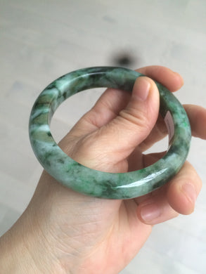54.5mm Type A 100% Natural dark green and white Jadeite Jade bangle AR67-4812