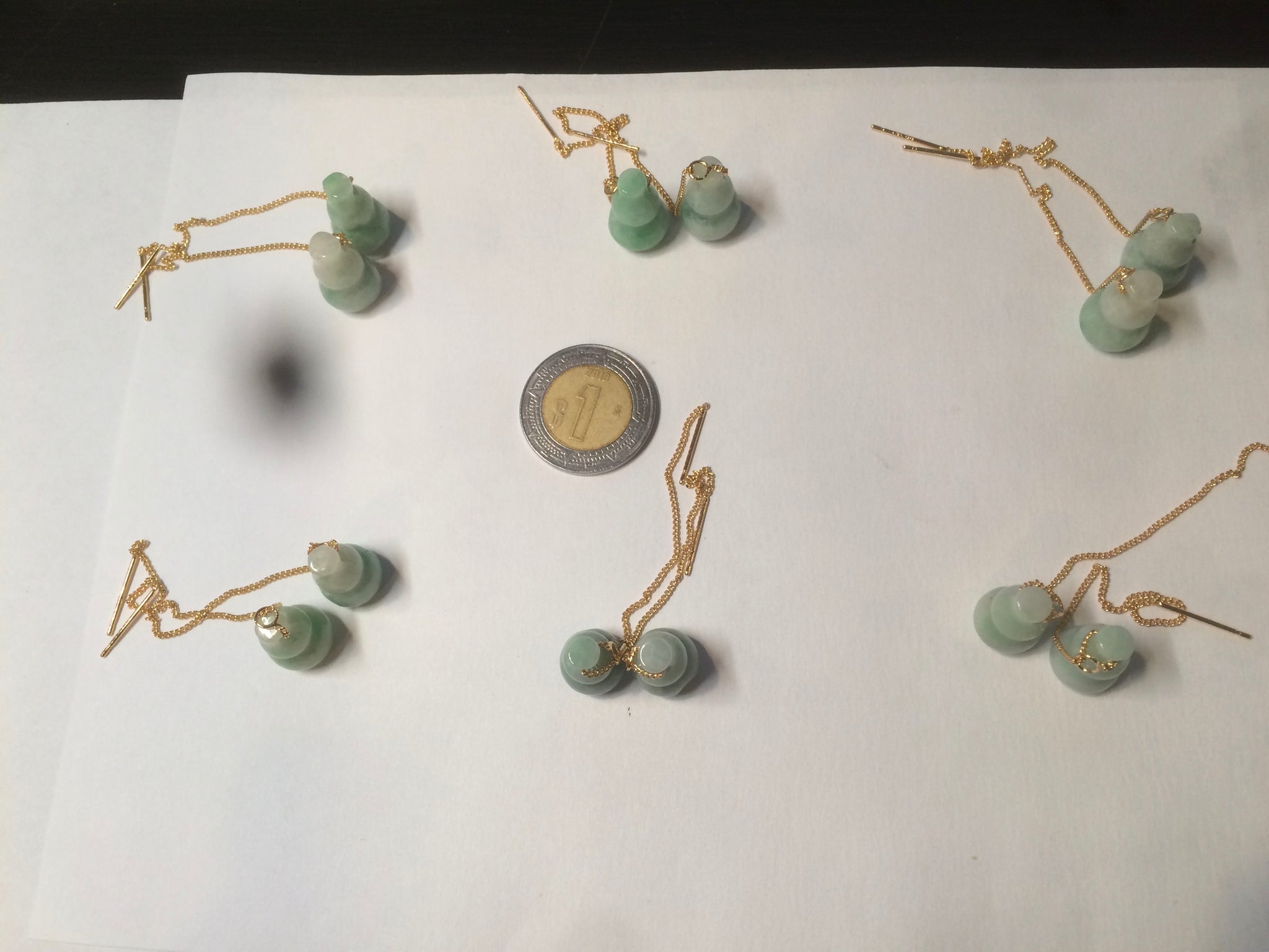 Handmade beads are all unique. The two jade beads are similar in a pair of earrings but not precisely the same size and shape.