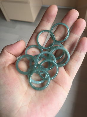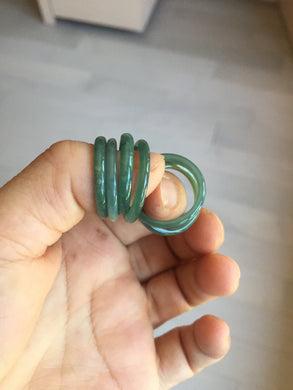 14.7mm/size 3 3/4 100% natural type A icy watery green/blue/gray Guatemala jadeite jade band ring group AF50