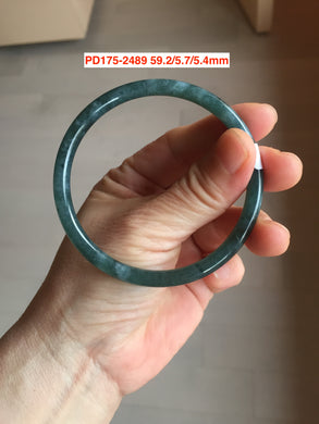 63.6mm Certified Type A 100% Natural deep sea dark green/blue/gray slim round cut Guatemala Jadeite bangle PB5-7036