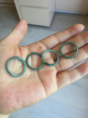 Size 4-7 3/4 100% natural type A icy watery dark green/black/gray jadeite jade band ring group PA133