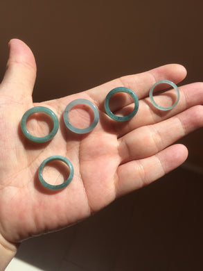 18.3mm size 8 1/4 100% natural type A icy watery green/blue/gray Guatemala jadeite jade band ring group BP74