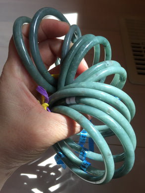 Sale! Certified type A 100% Natural dark green/blue/black/gray slim round cut guatemala Jadeite bangle(different size with defects) group GL30