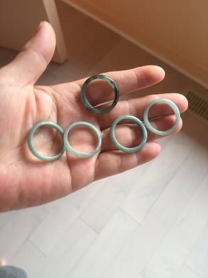 Size 7 1/2 100% natural type A icy watery light green/blue/yellow/gray skinny Guatemala jadeite jade slim band ring AR103