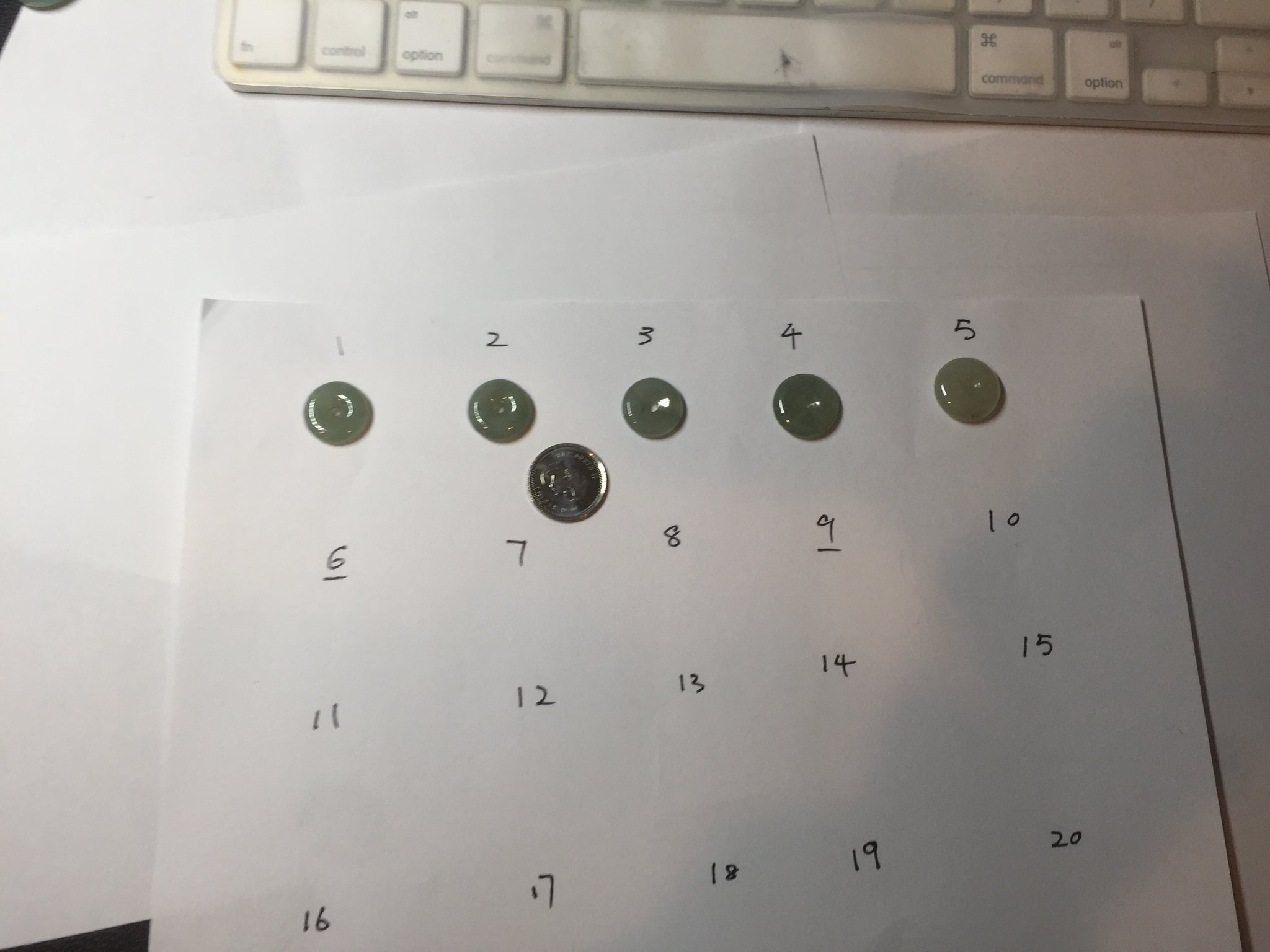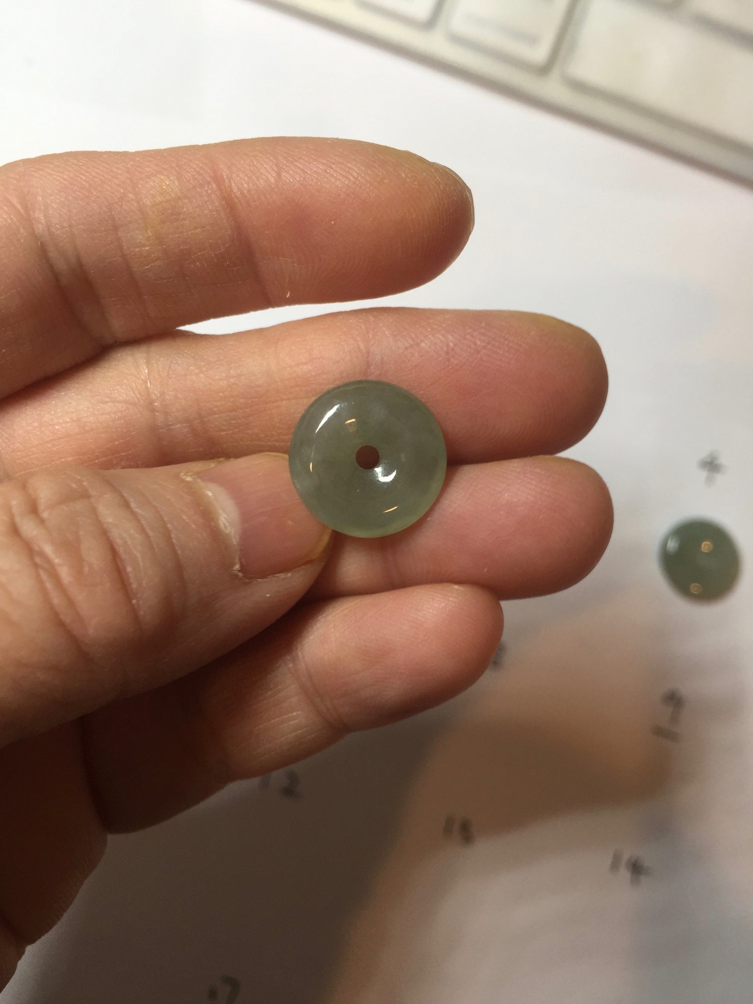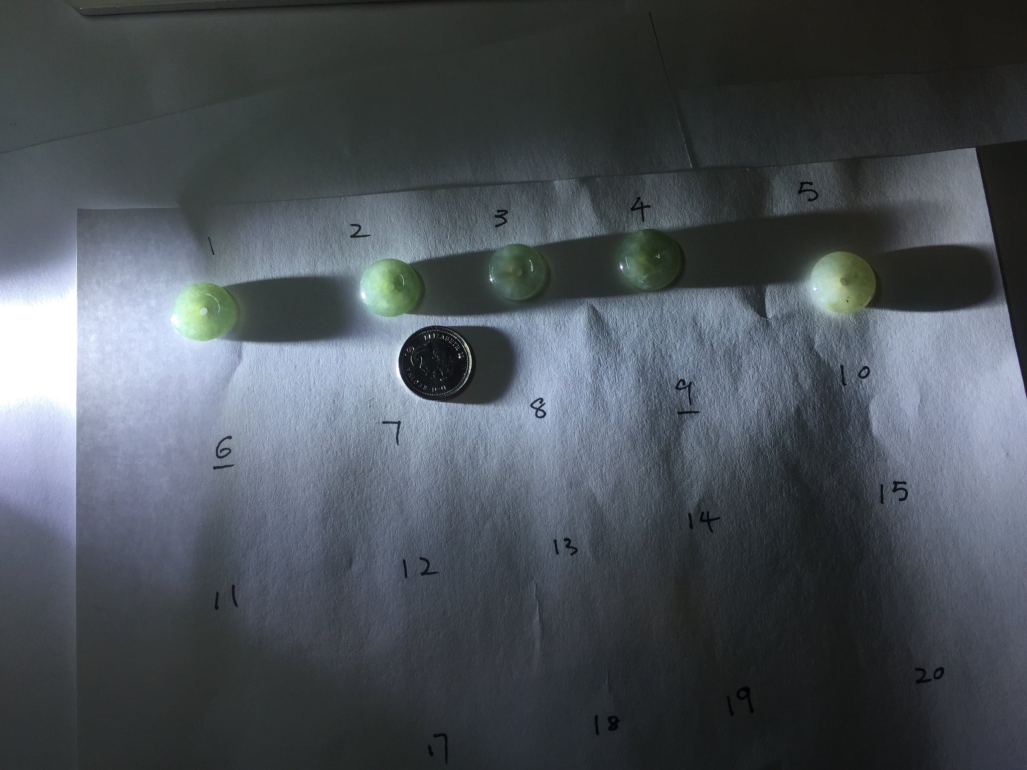 No crack. No hairline. Number 5 has a brown/black spots. Some cotton spots and cotton areas. Has some gray/black color.