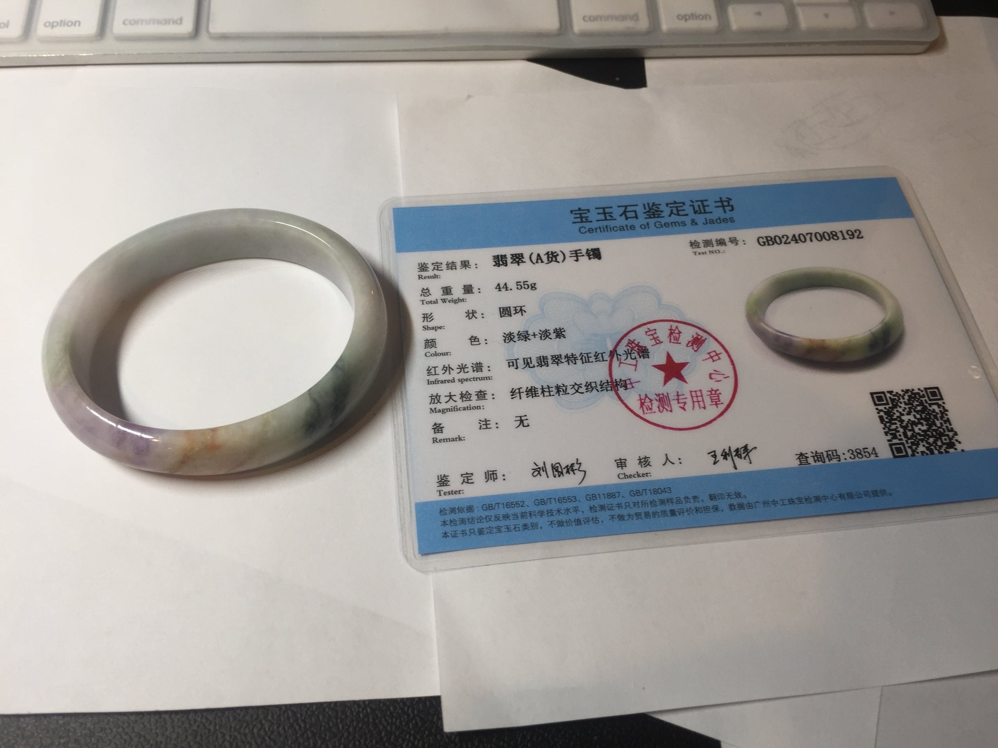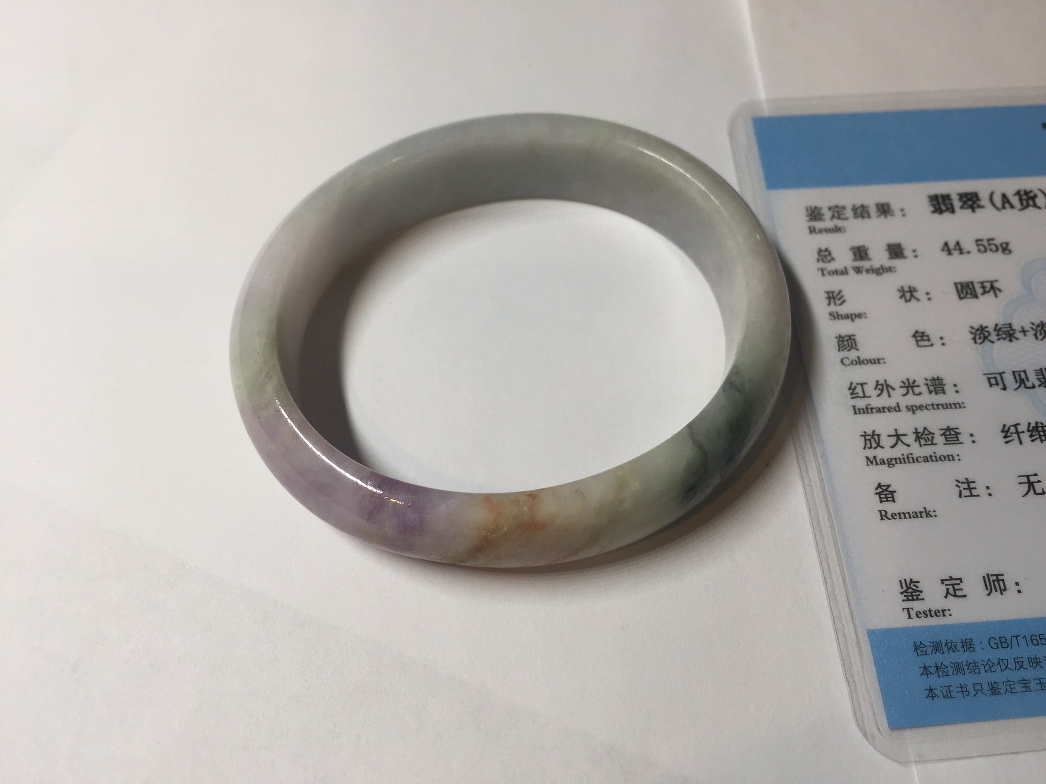 When a bangle has green, yellow, and purple, it means "Fu Lu Shou", Blessing, good fortune, and happy long life. It is very rare.