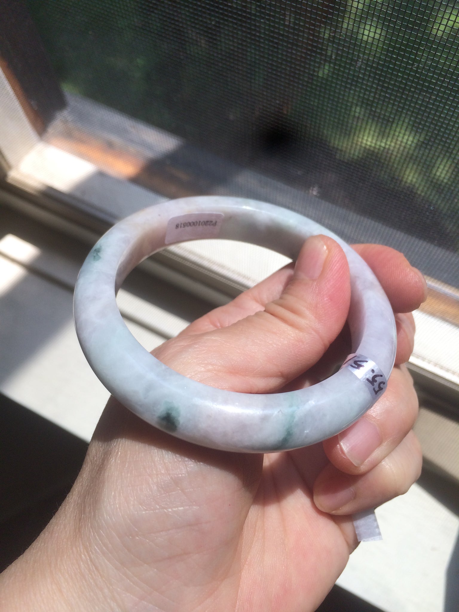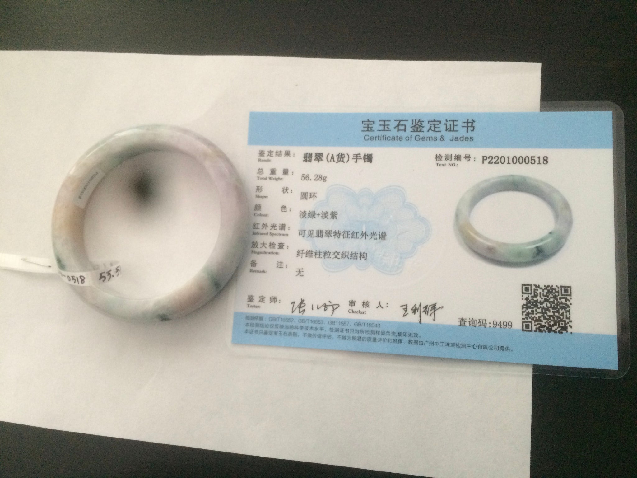 55.5mm Certified 100% natural Type A green/purple/red (福禄寿)jadeite jade bangle U90-0518