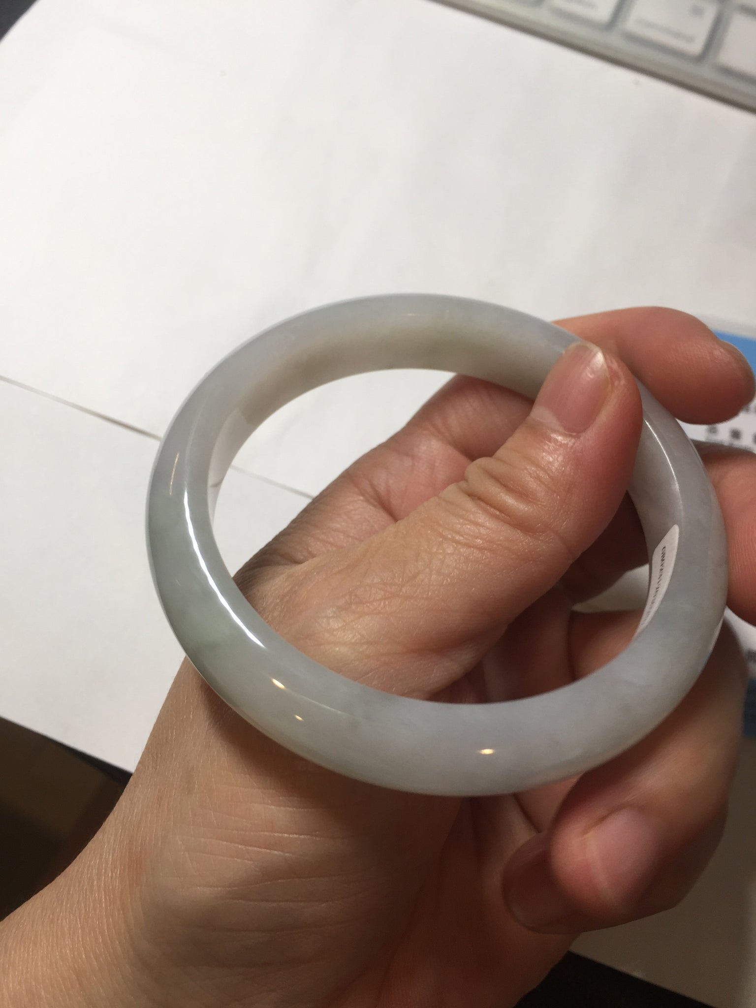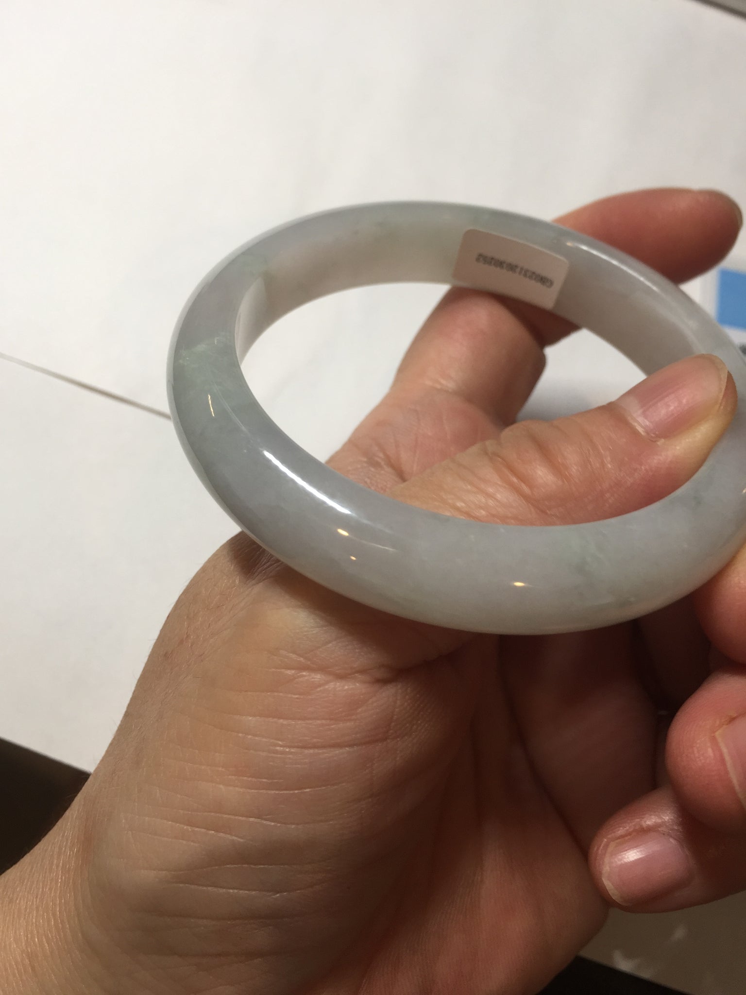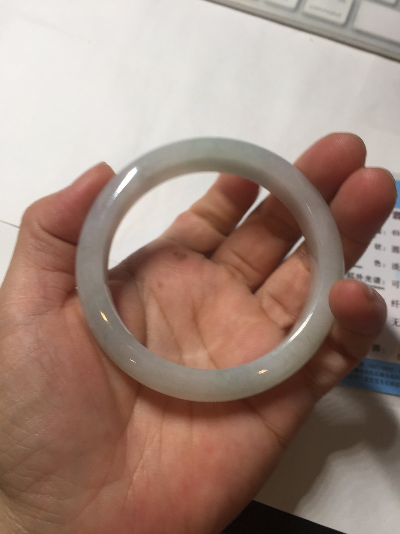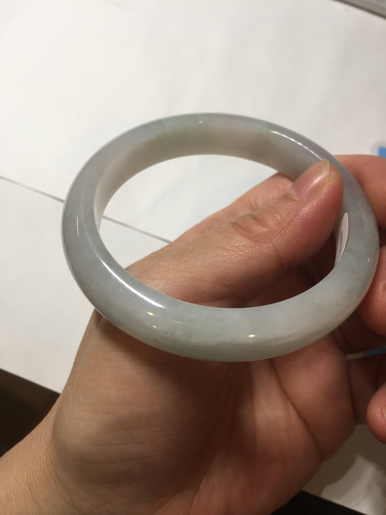 Some cracks. The bangle is sturdy (Guaranteed, refund if it breaks). Some cotton lines, areas, and cotton spots. The purple is lighter than in the photos due to the purple color always being more camera-friendly.