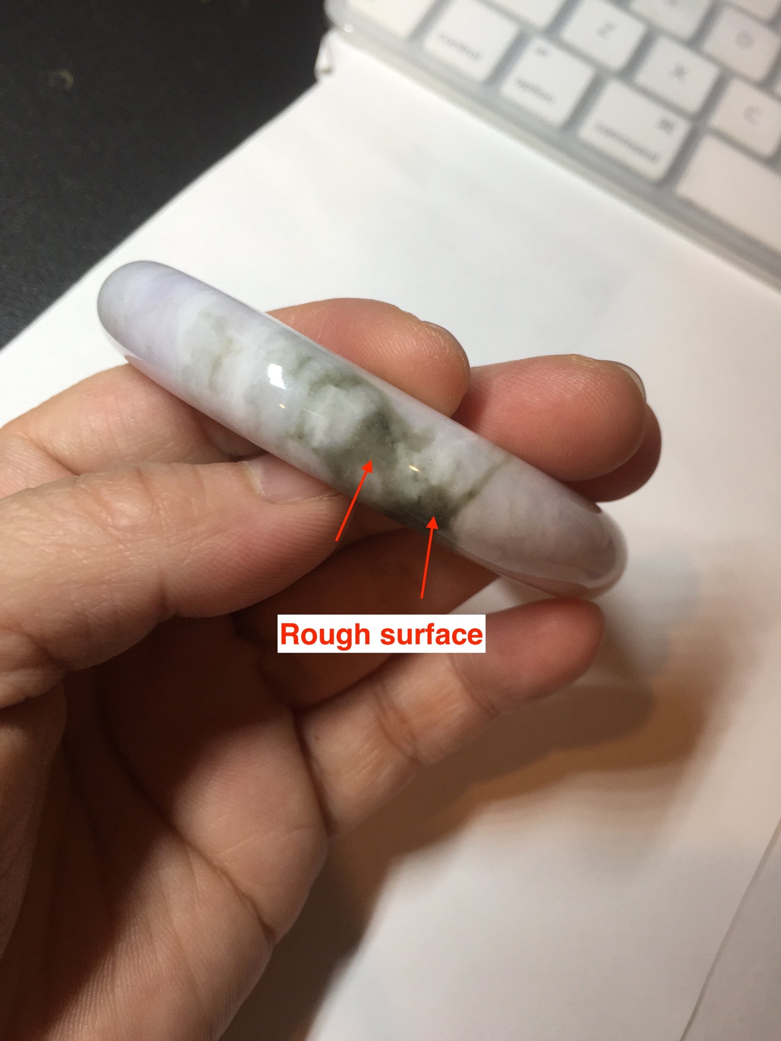 No crack. No hairline. Some cotton lines and cotton areas. One small rough surface. Not transparent. Not watery.