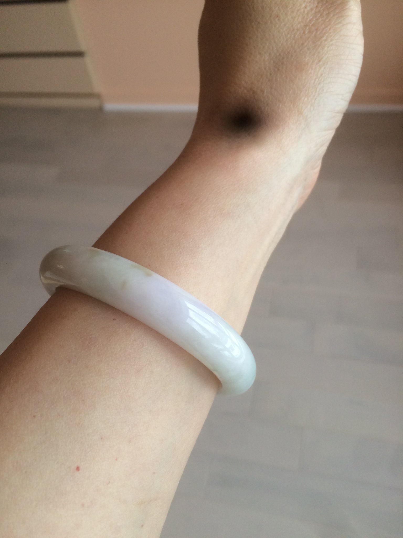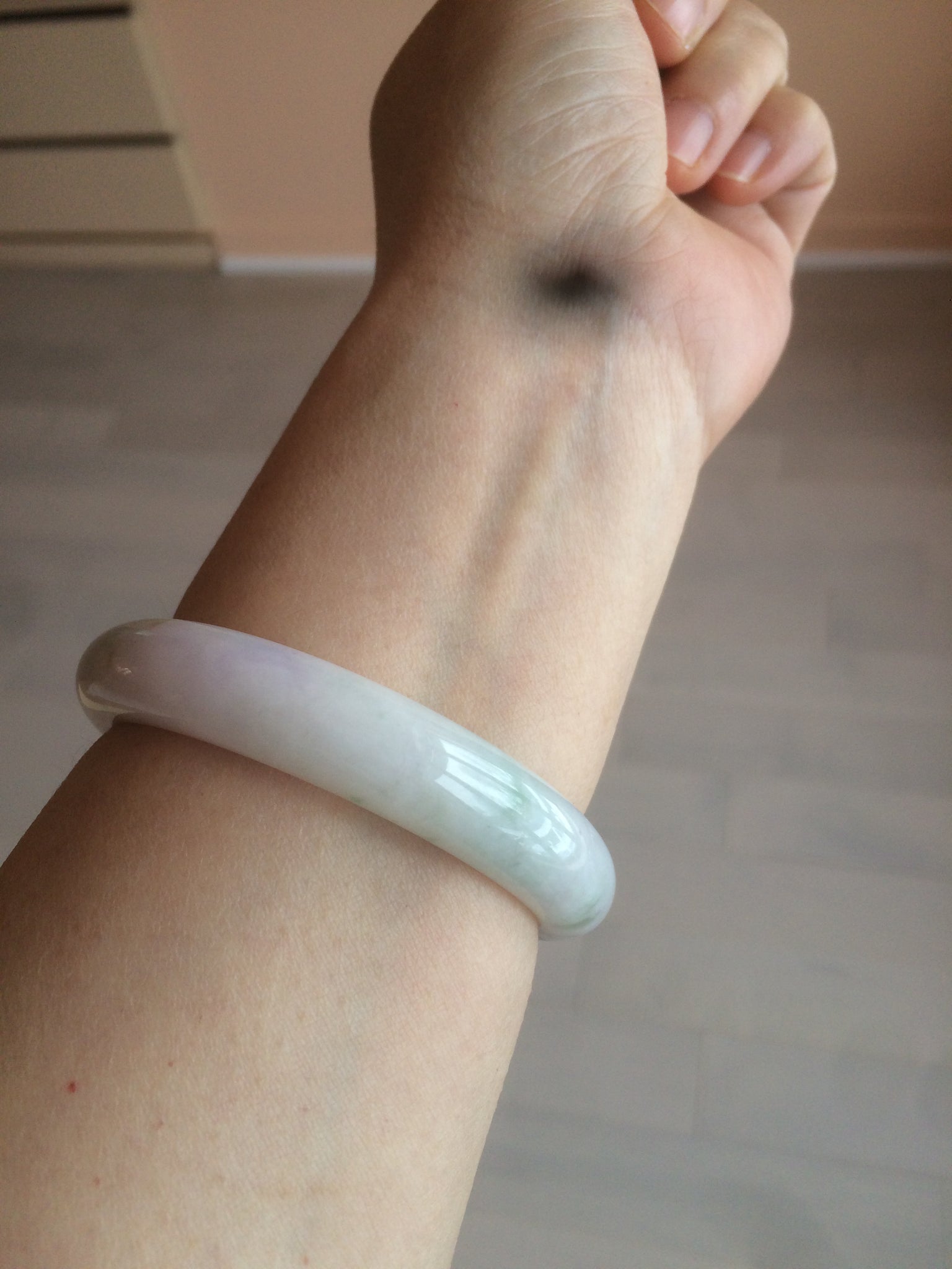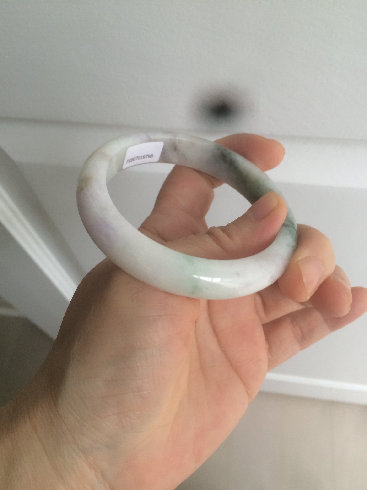 No crack. Some hairlines. Some cotton lines and spots. Some color roots. Dark areas. The purple is lighter than in the photos.