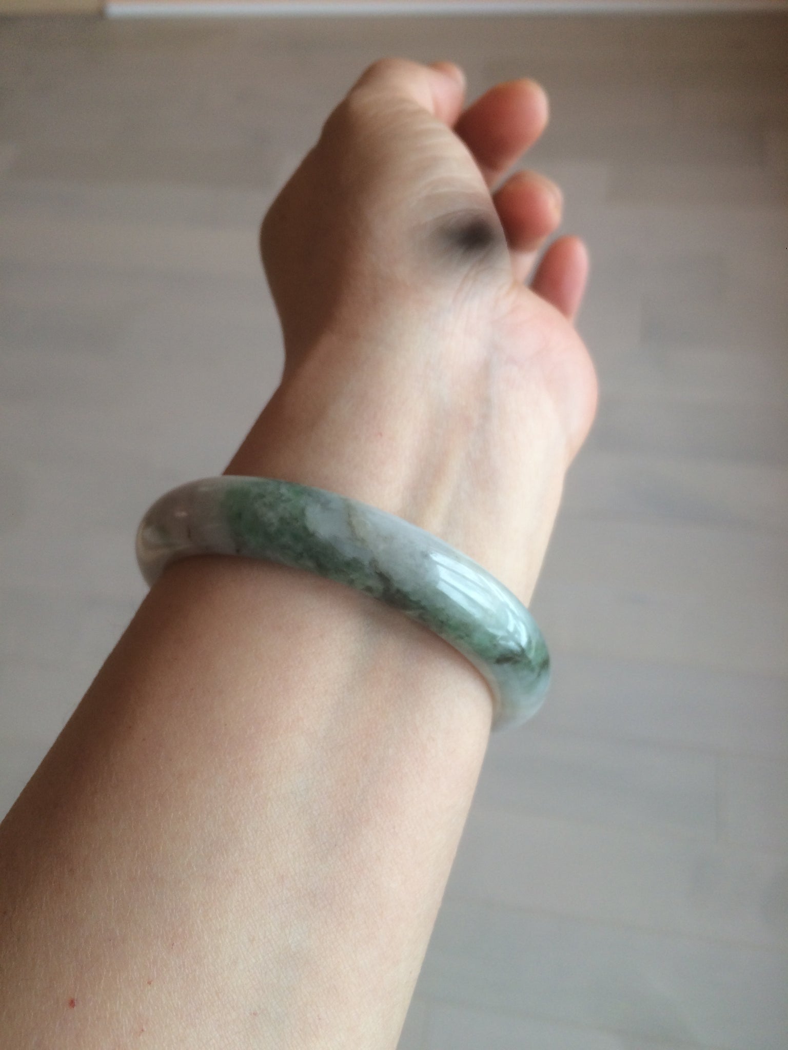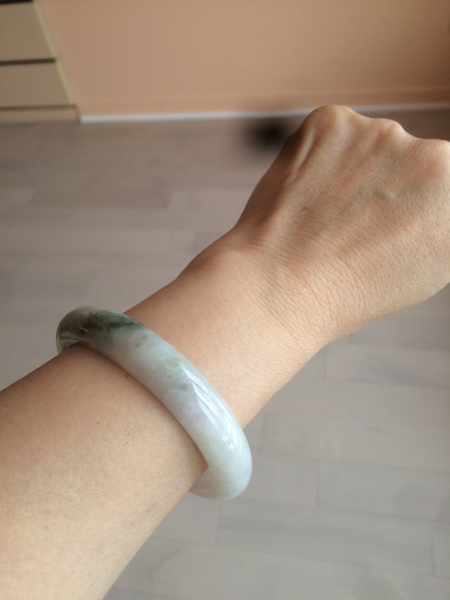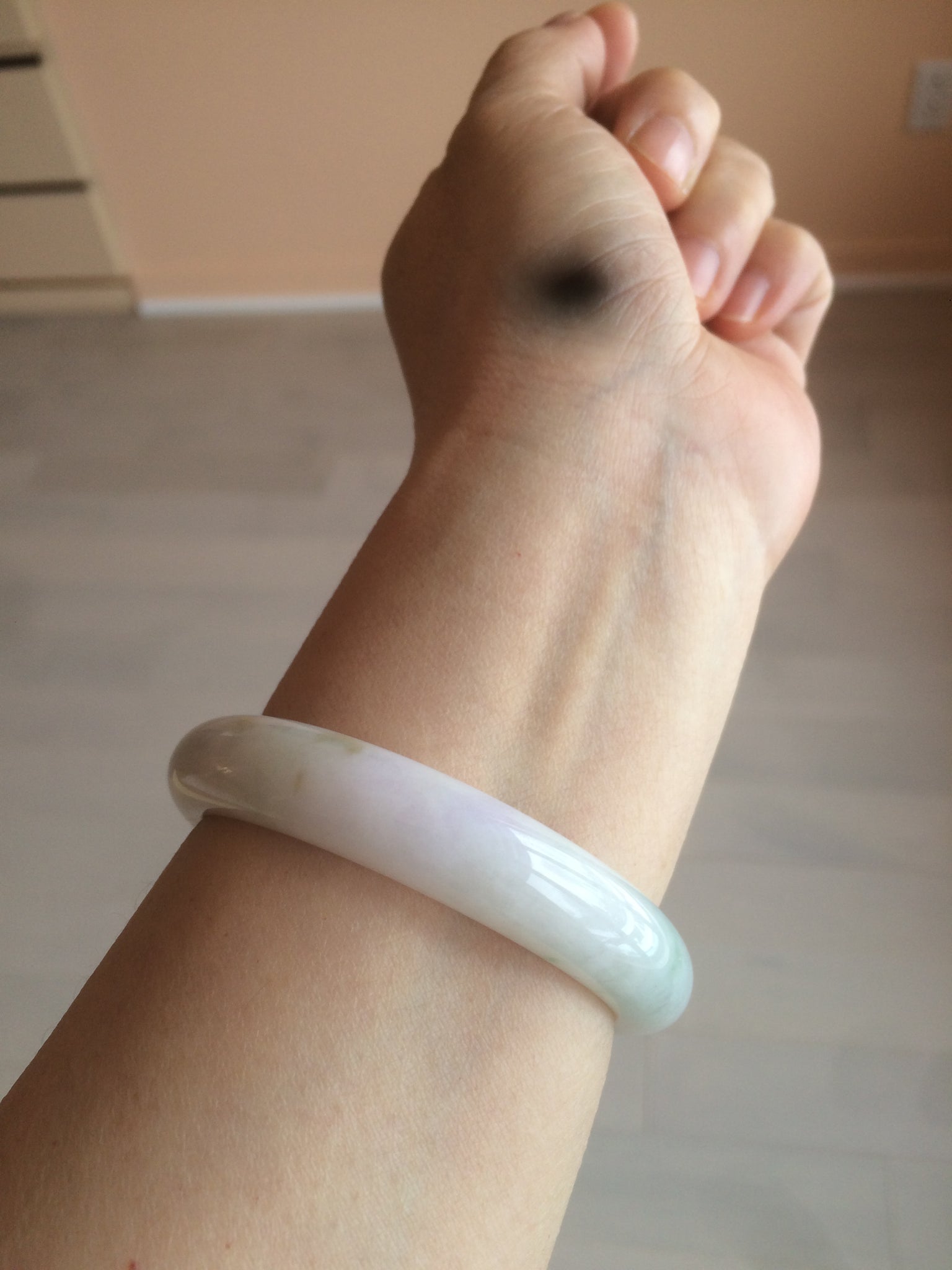 No crack. Some hairlines. Some cotton lines and spots. Some color roots. Dark areas. The purple is lighter than in the photos.
